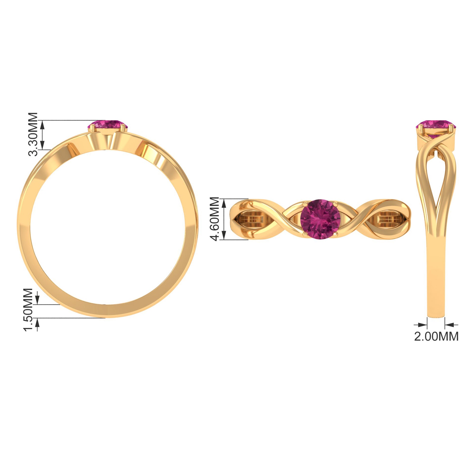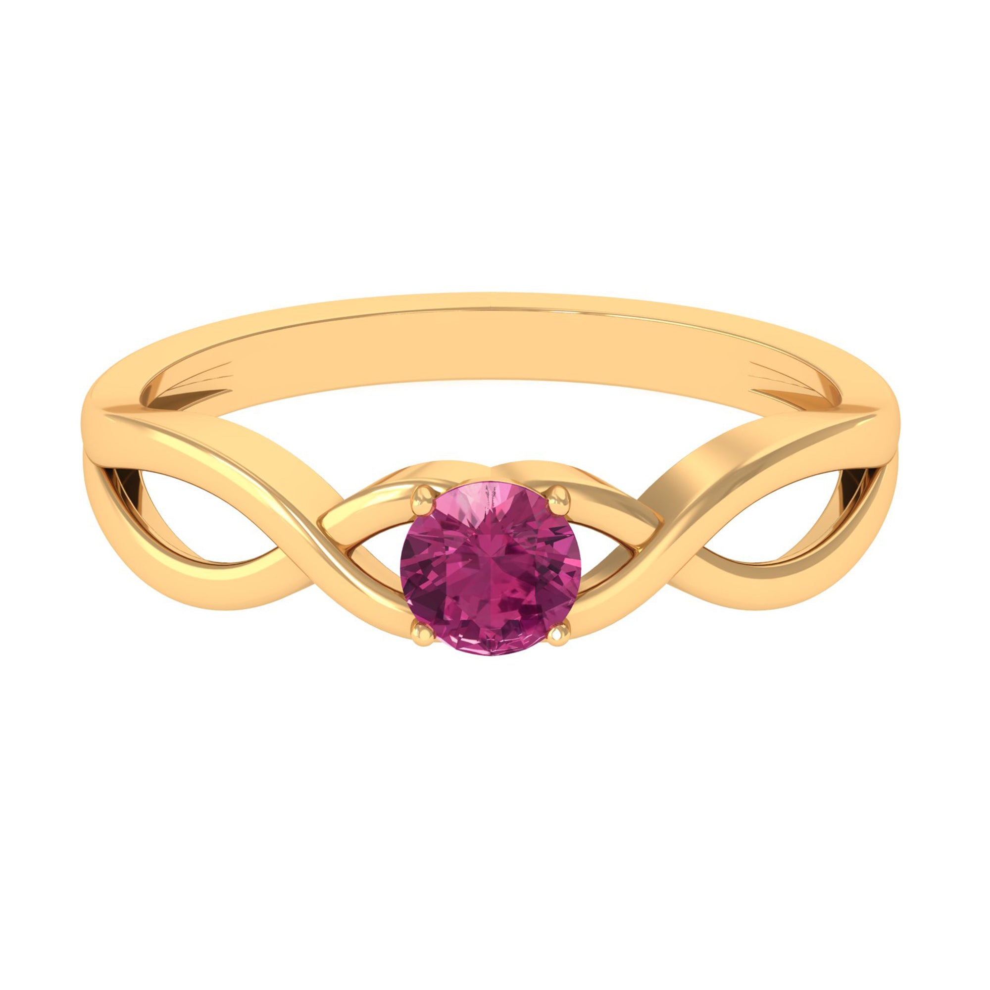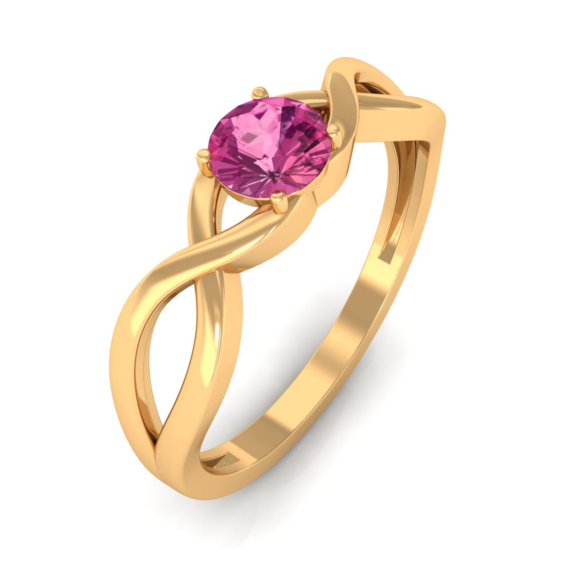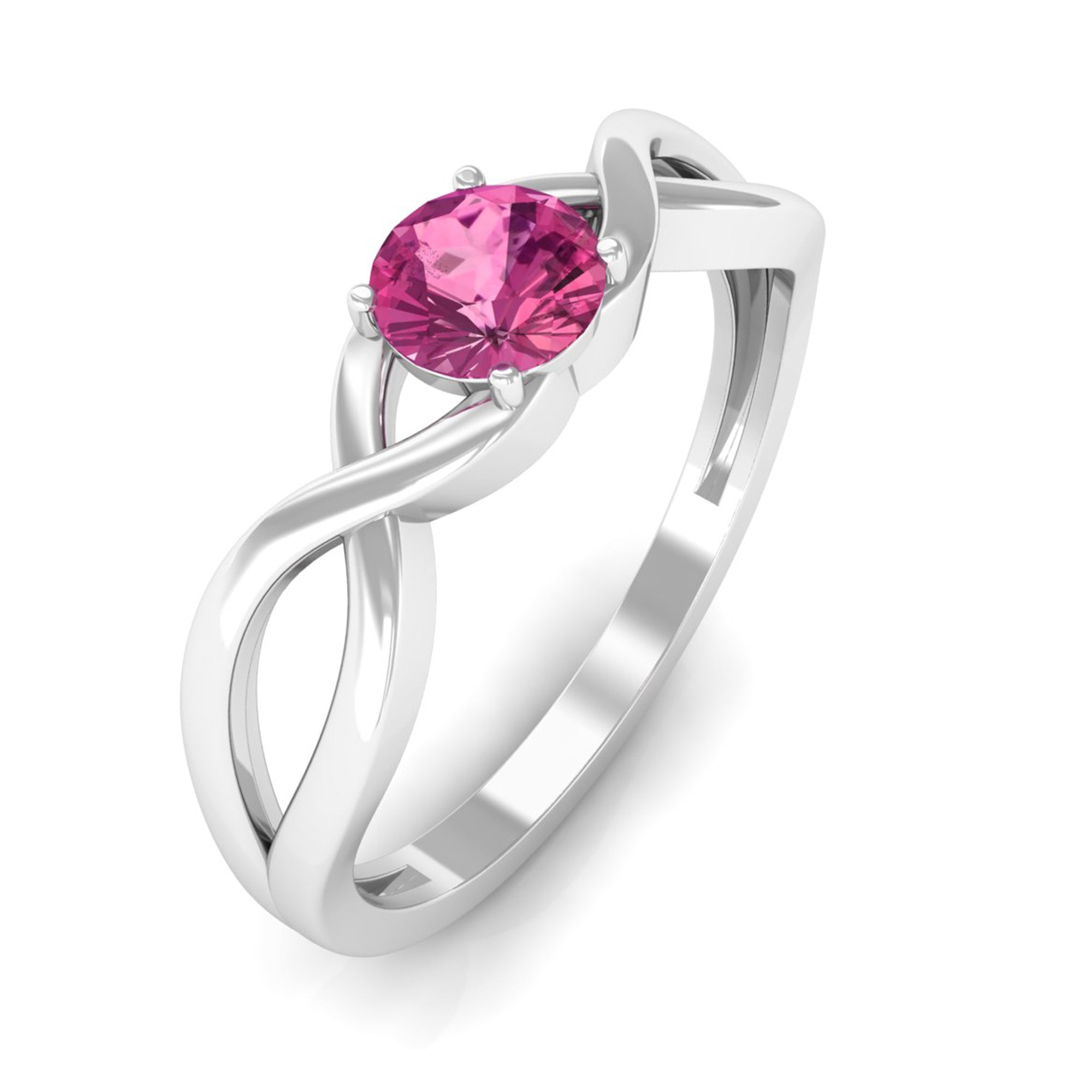 1/4 CT Real Pink Tourmaline Solitaire Ring with Crossover Shank