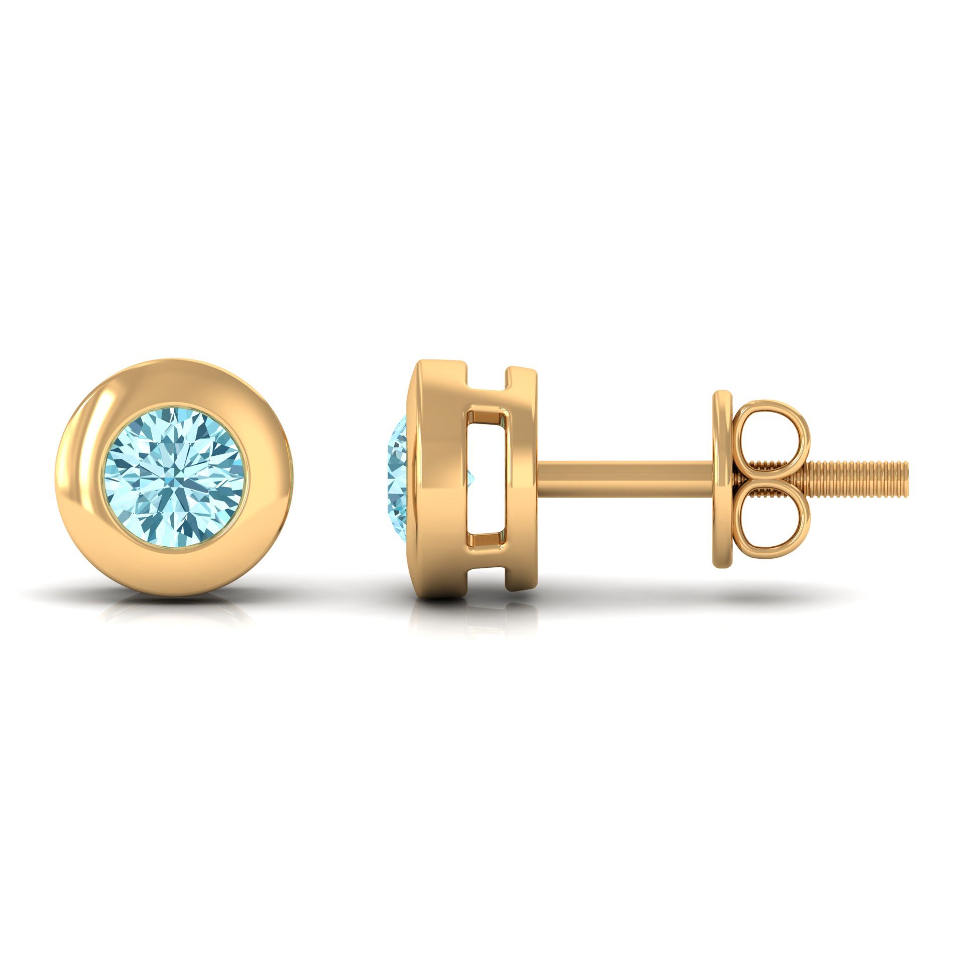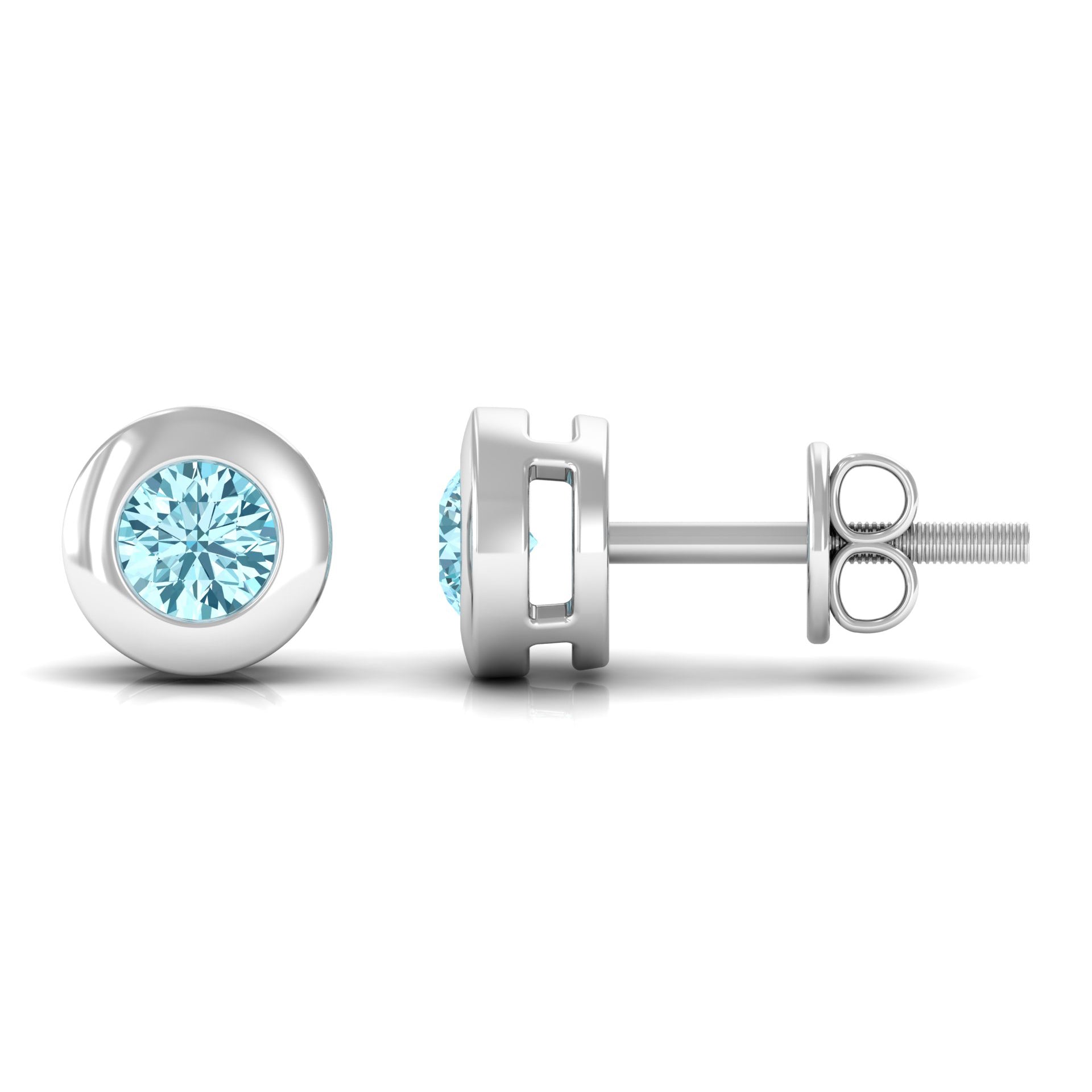 These delicate Aquamarine Earrings are perfect for celebrating any occasion. Featuring a Round Shape Aquamarine secured in Bezel Setting set as a Solitaire. The Screw Back Closure will keep these Simple Earrings secured in place. Shine all day in these Aquamarine Stud Earrings for Women as you pair them with your casual, formal, or evening attire.