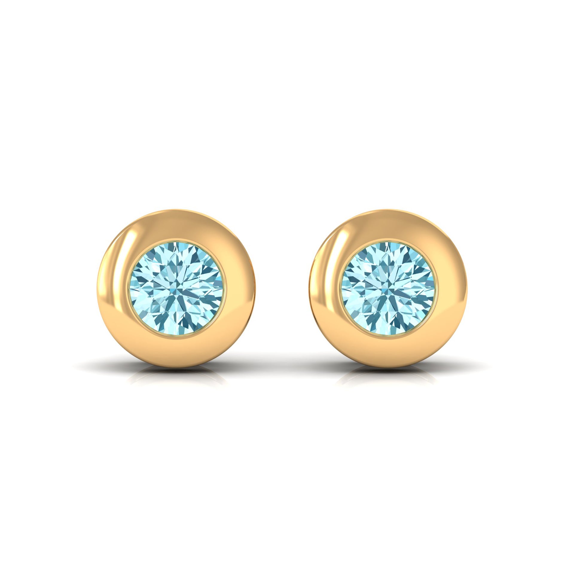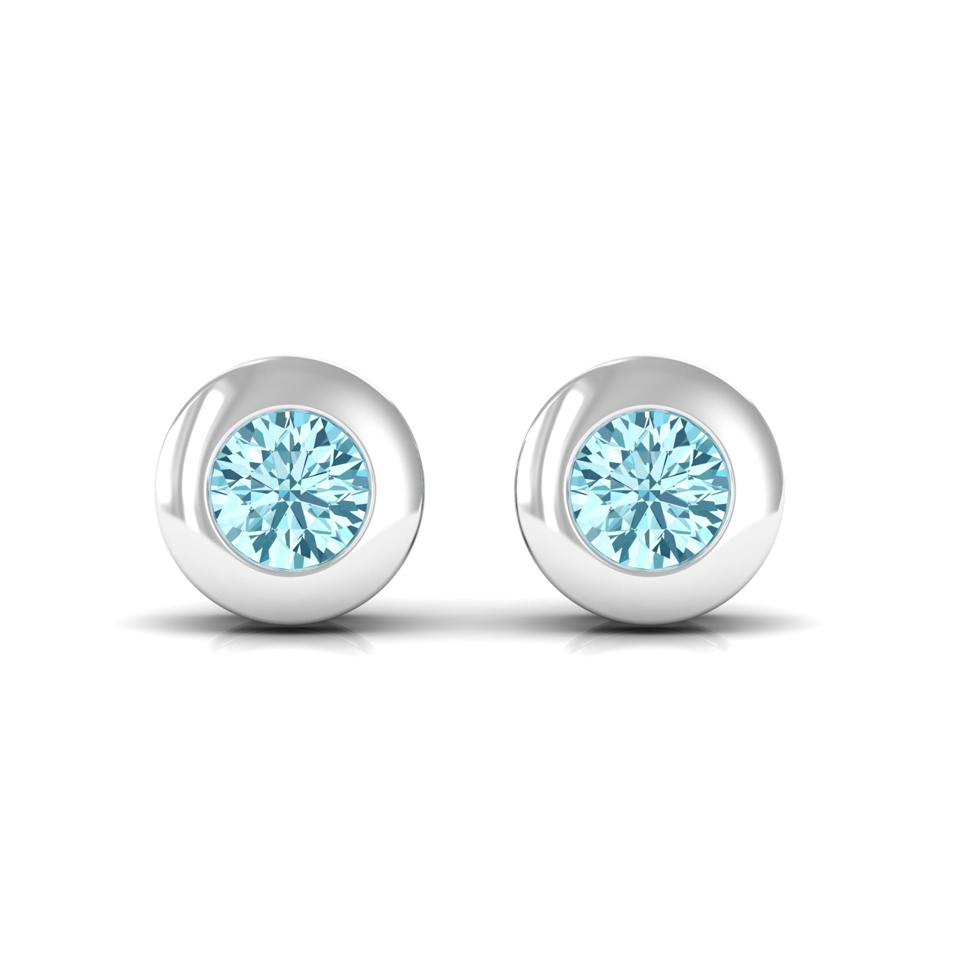 1/4 CT Round Aquamarine Solitaire Stud Earrings in Bezel Setting
