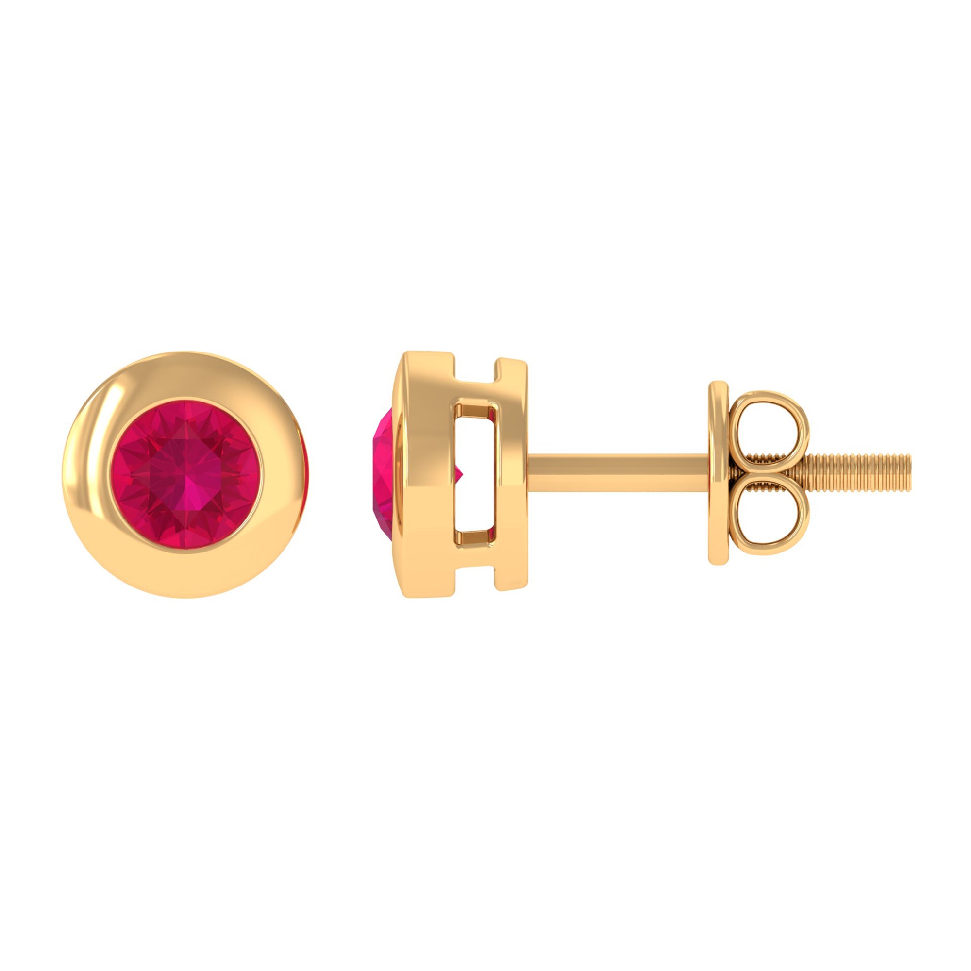 1/4 CT Round Cut Ruby Solitaire Stud Earrings in Bezel Setting