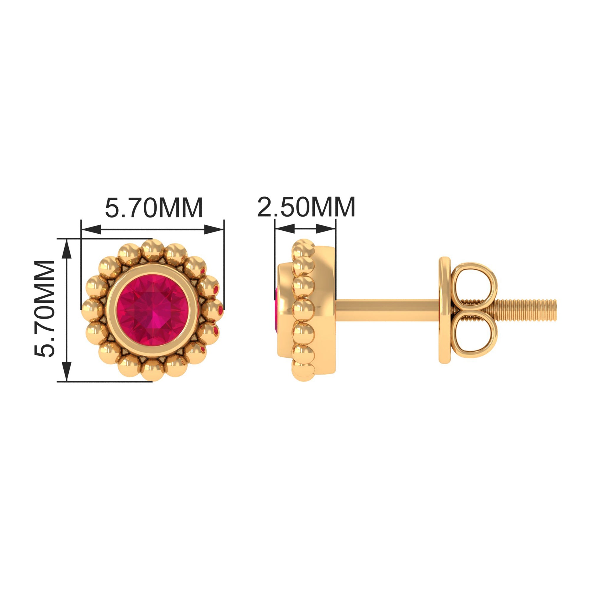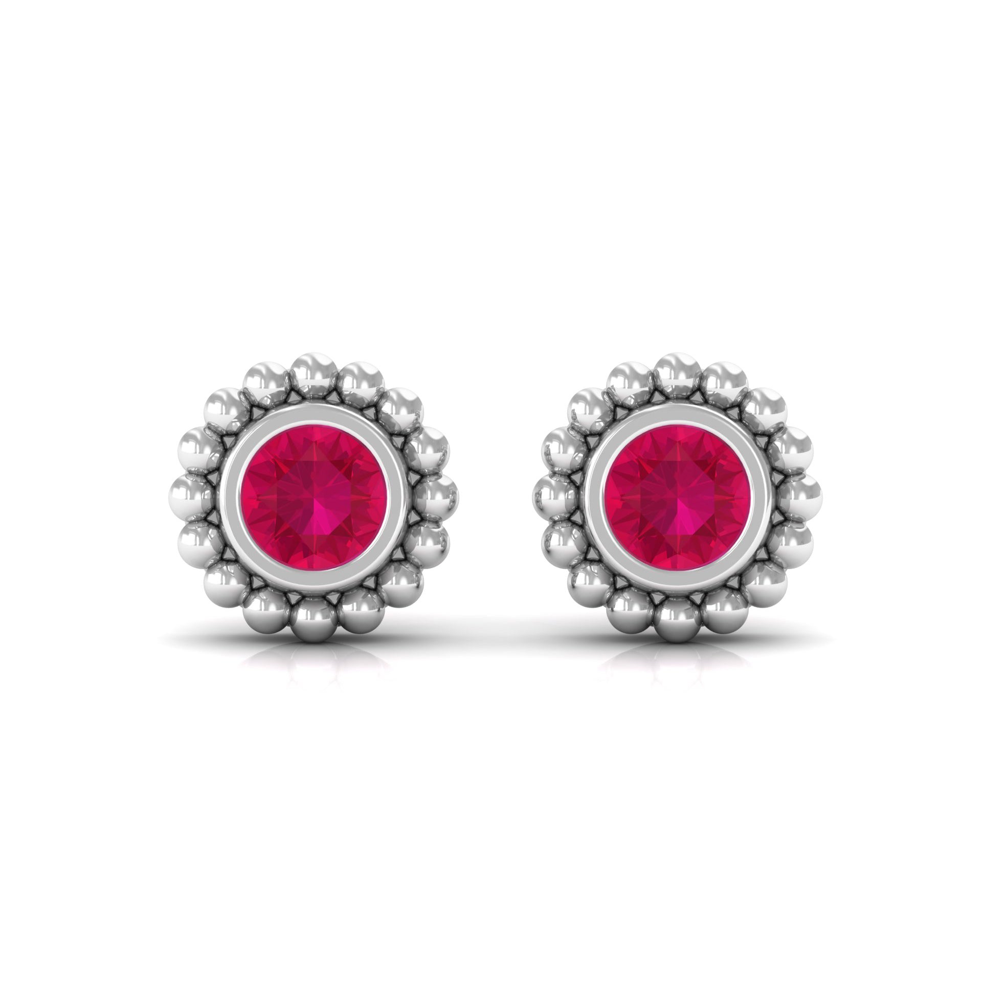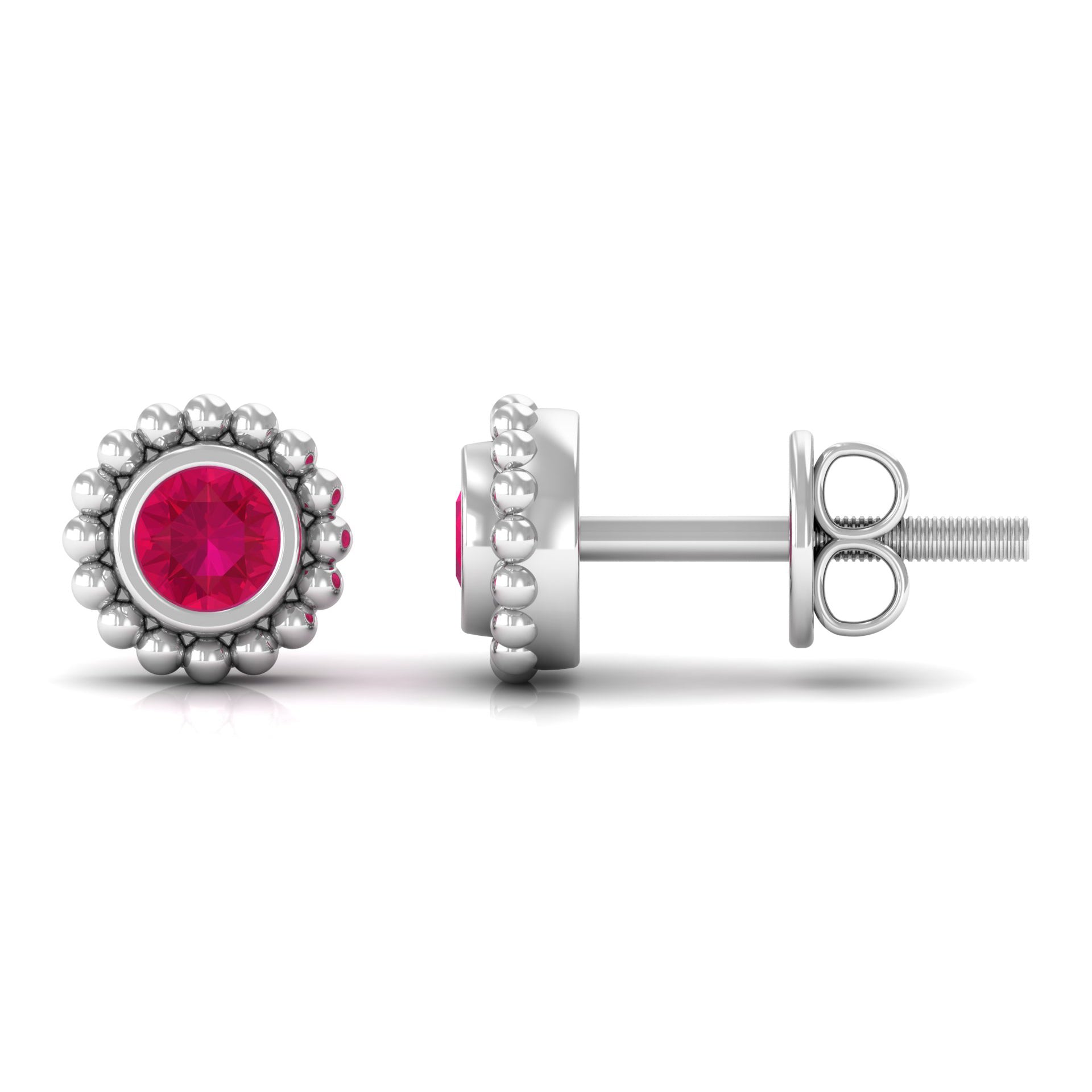 1/4 CT Ruby Solitaire Stud Earring in Beaded Bezel Setting for Women