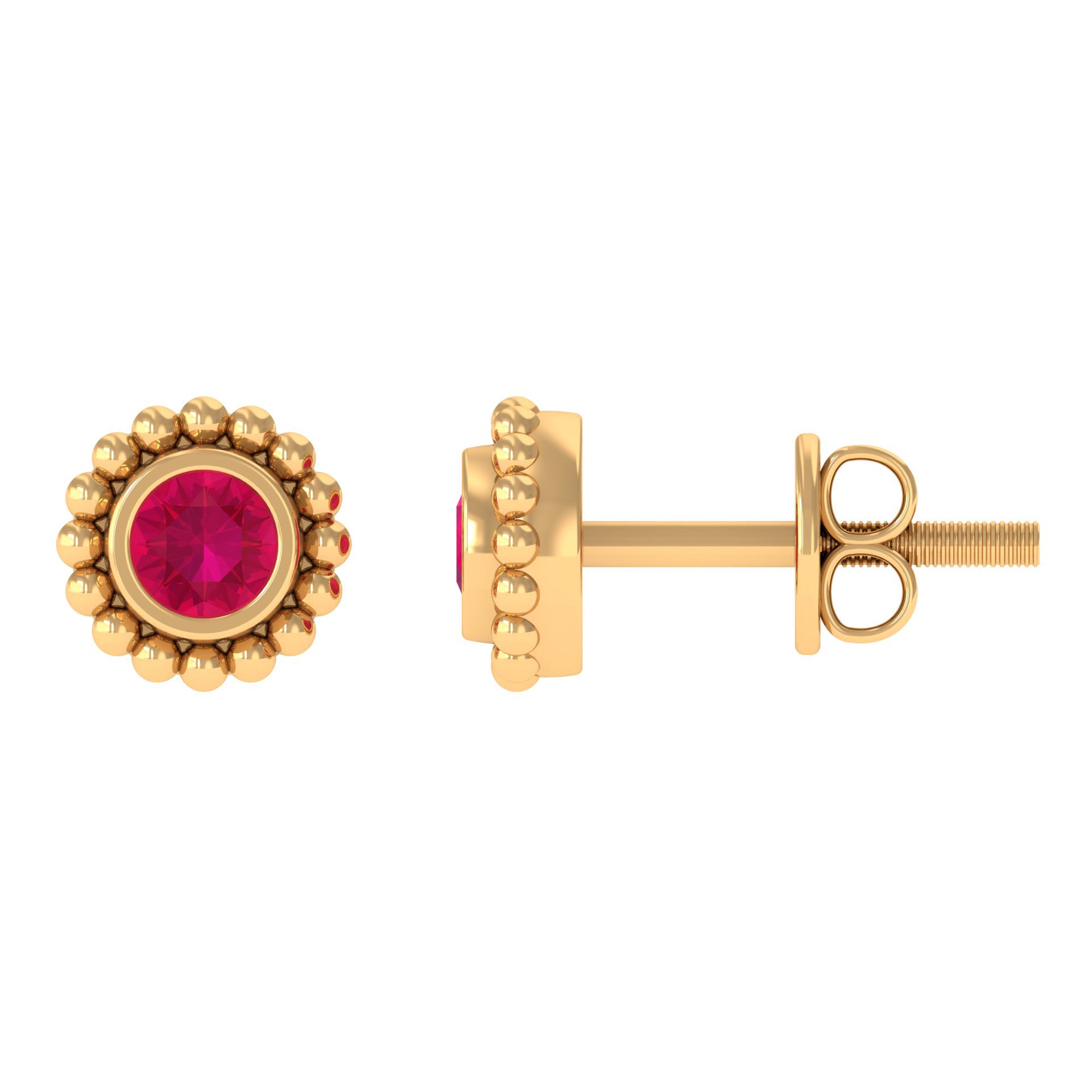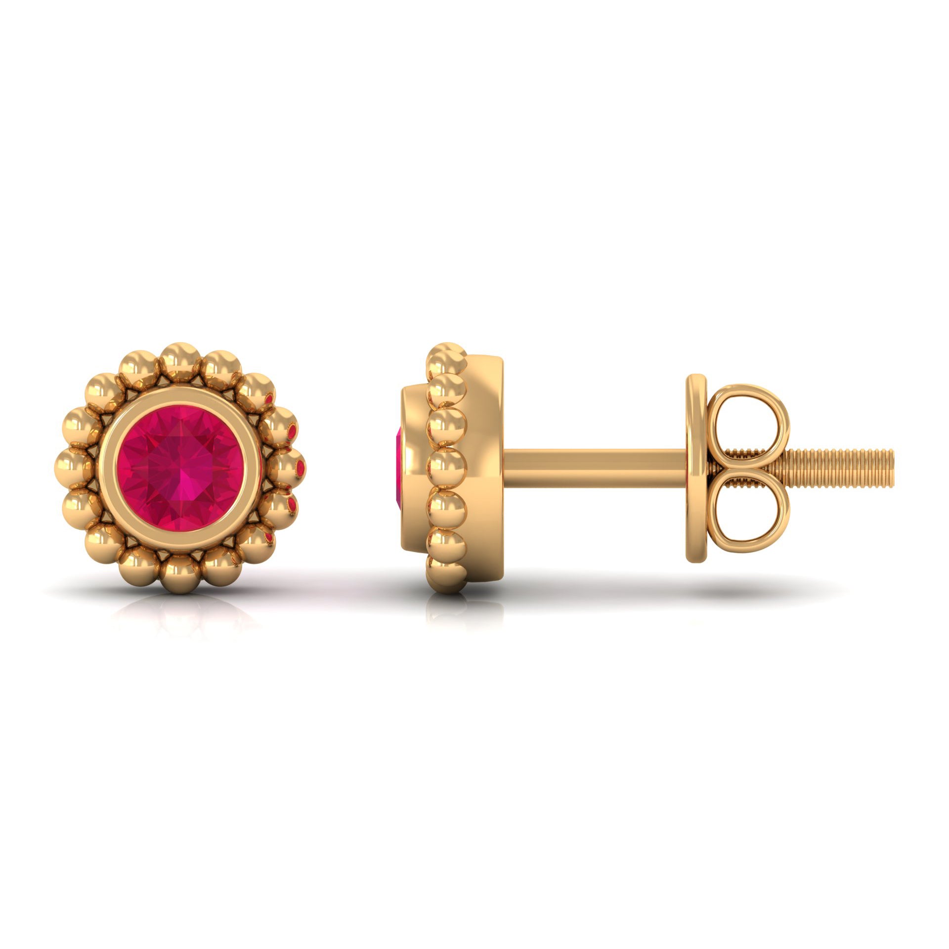 Explore beautiful Beaded Bezel Setting Stud Earring featuring Round Cut Ruby Gemstone Crafted in Solid Gold Metal. Gift Your mom this beautiful Stud Earrings on Mothers day.