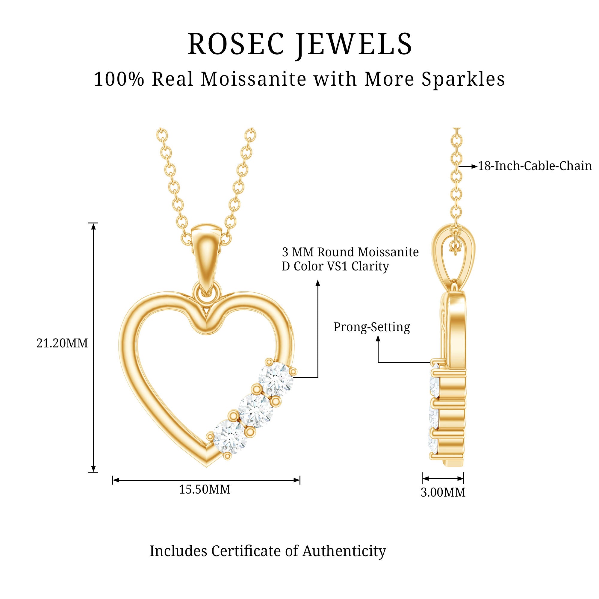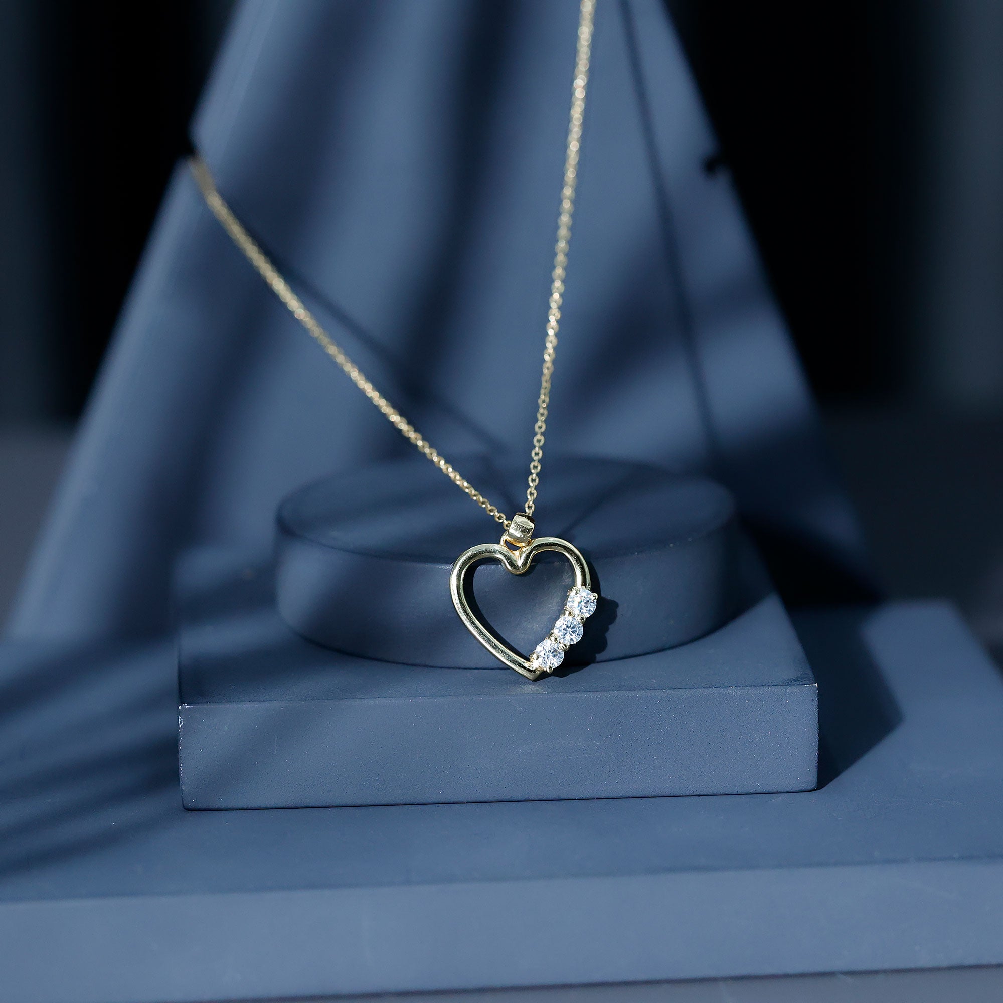 This Gorgeous Gold Heart Pendant is Embellished with Round Shape Moissanite set in Prong setting, This Simple Open Heart Pendant is Composed of Solid Gold, A Perfect Gift for Your Love