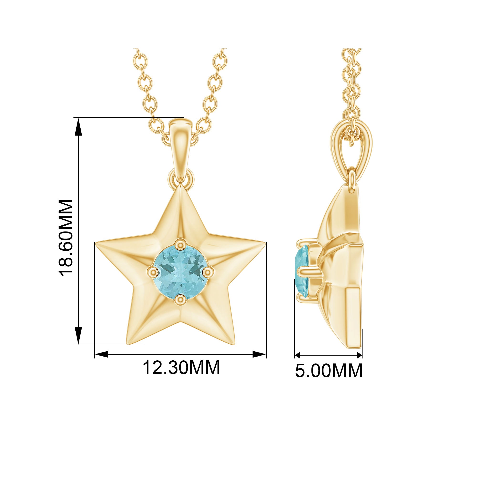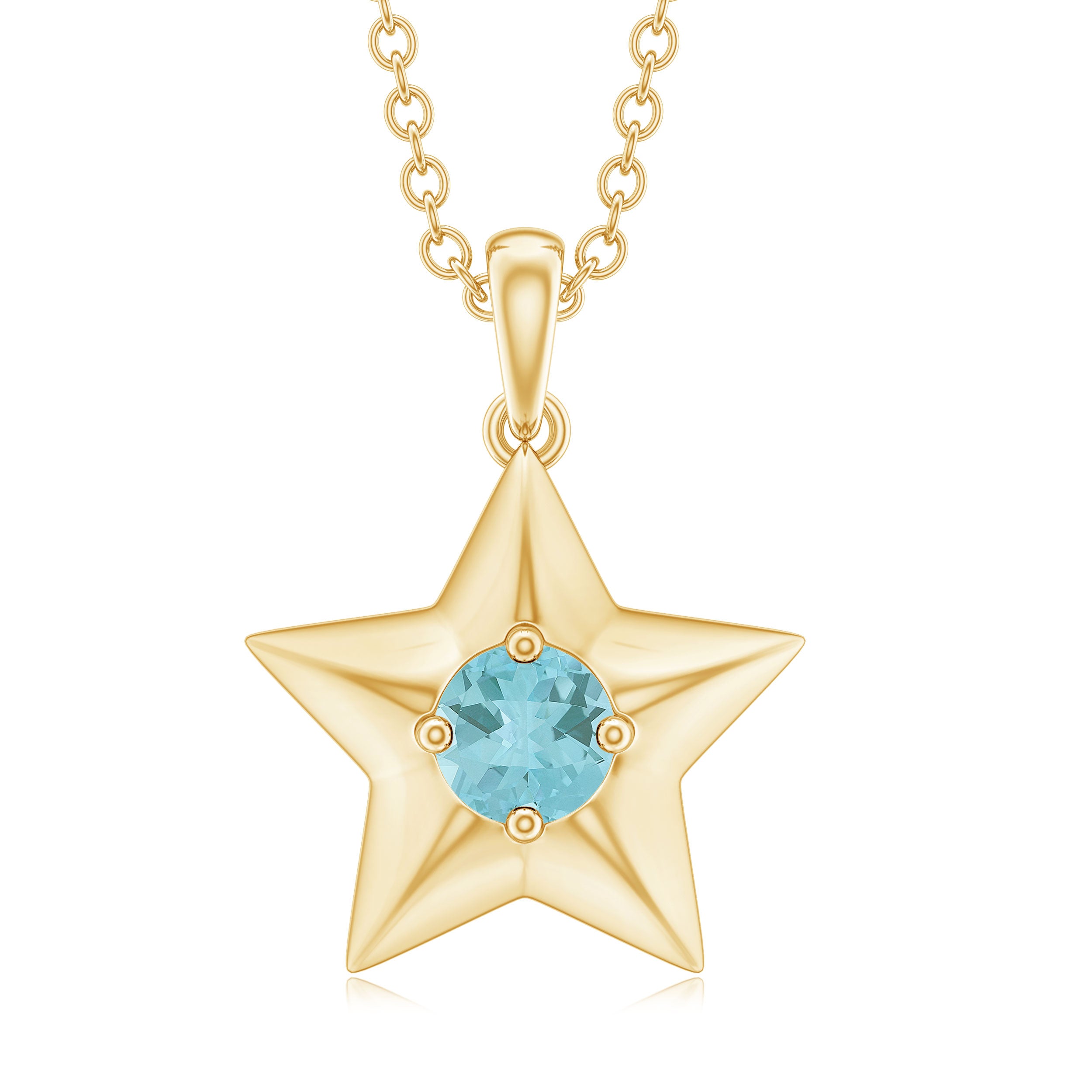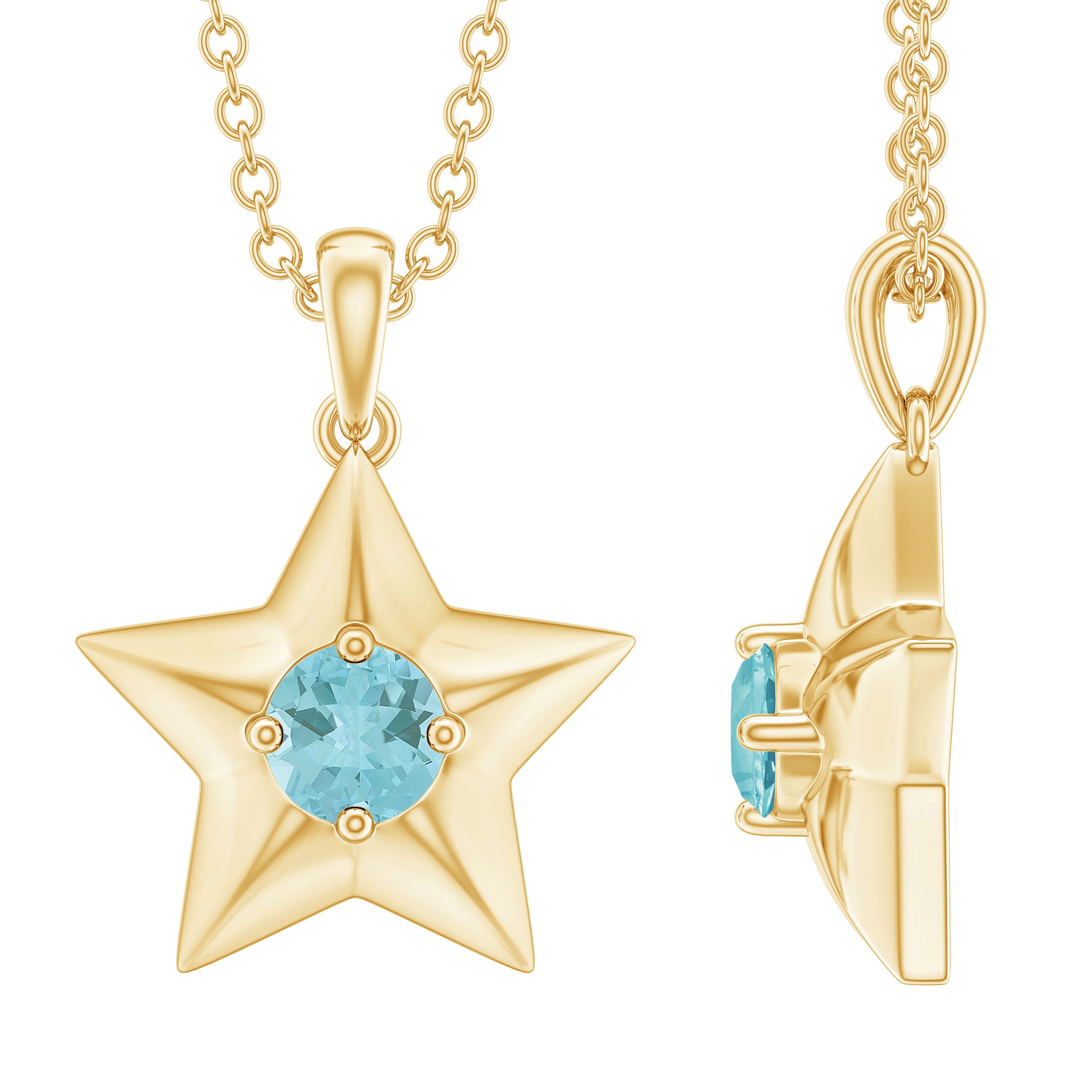 Upgrade your jewelry collection with this stunning Star Pendant featuring a Round Cut Sky Blue Topaz at its center, set in a Prong Setting. Expertly crafted in Solid Gold, it adds a celestial touch to your look.
