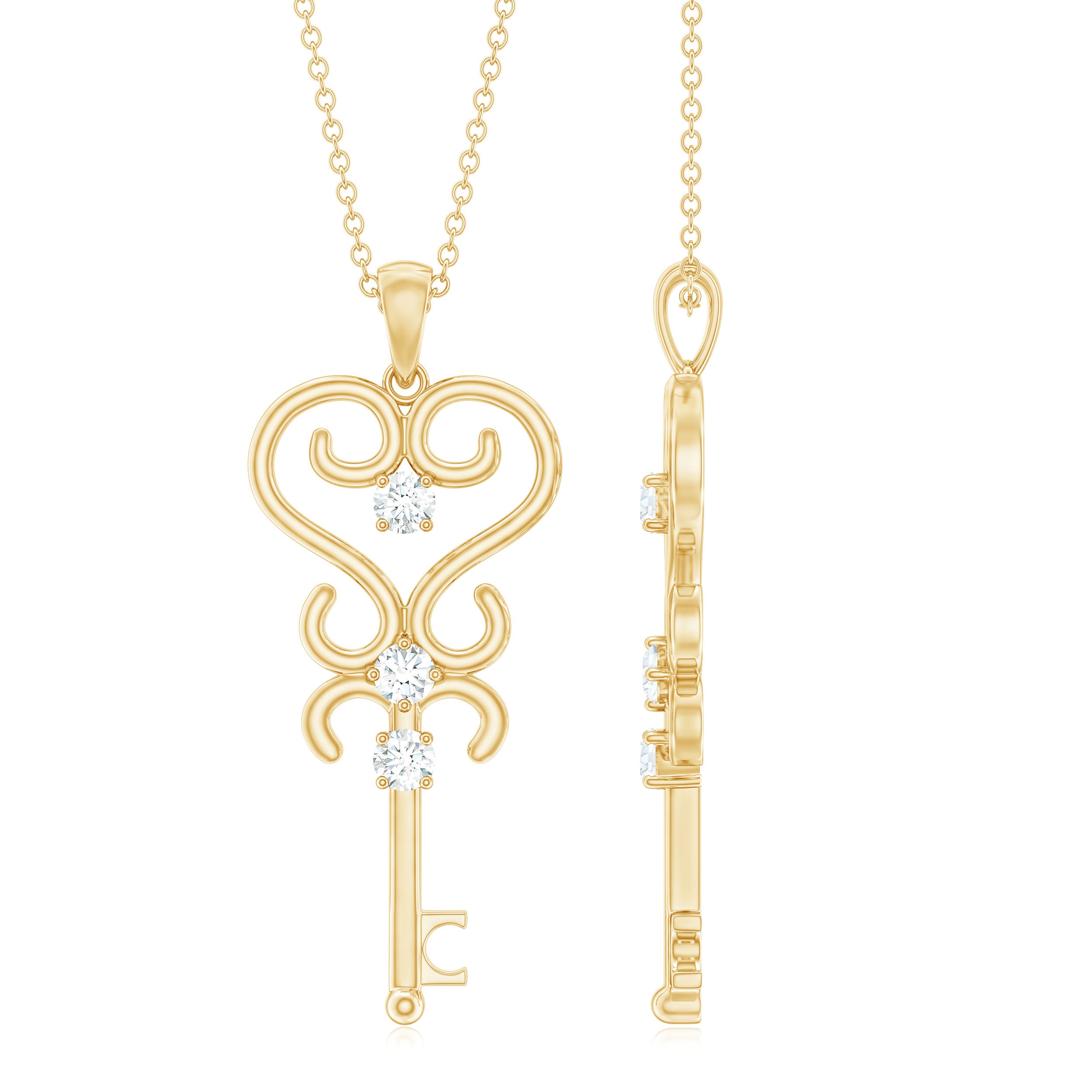 1/4 CT Vintage Zircon Key Pendant Necklace