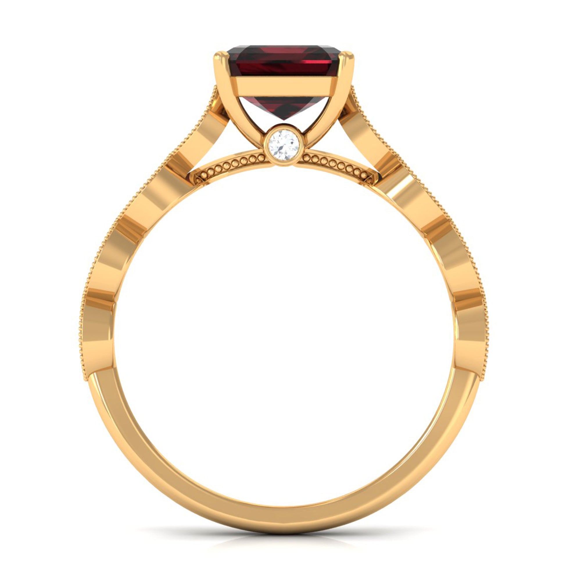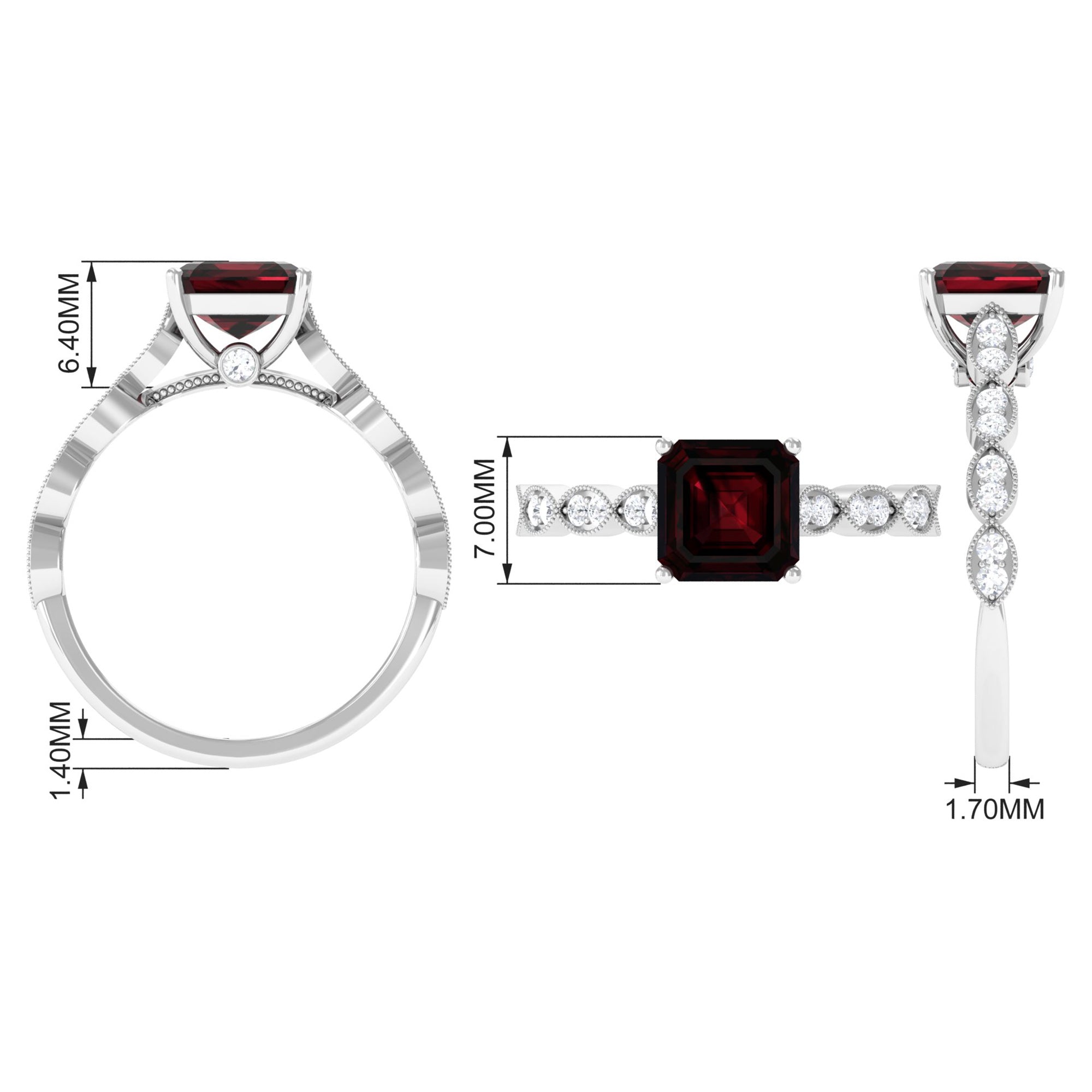Real 8mm Asscher Cut Garnet Engagement Ring with Diamond