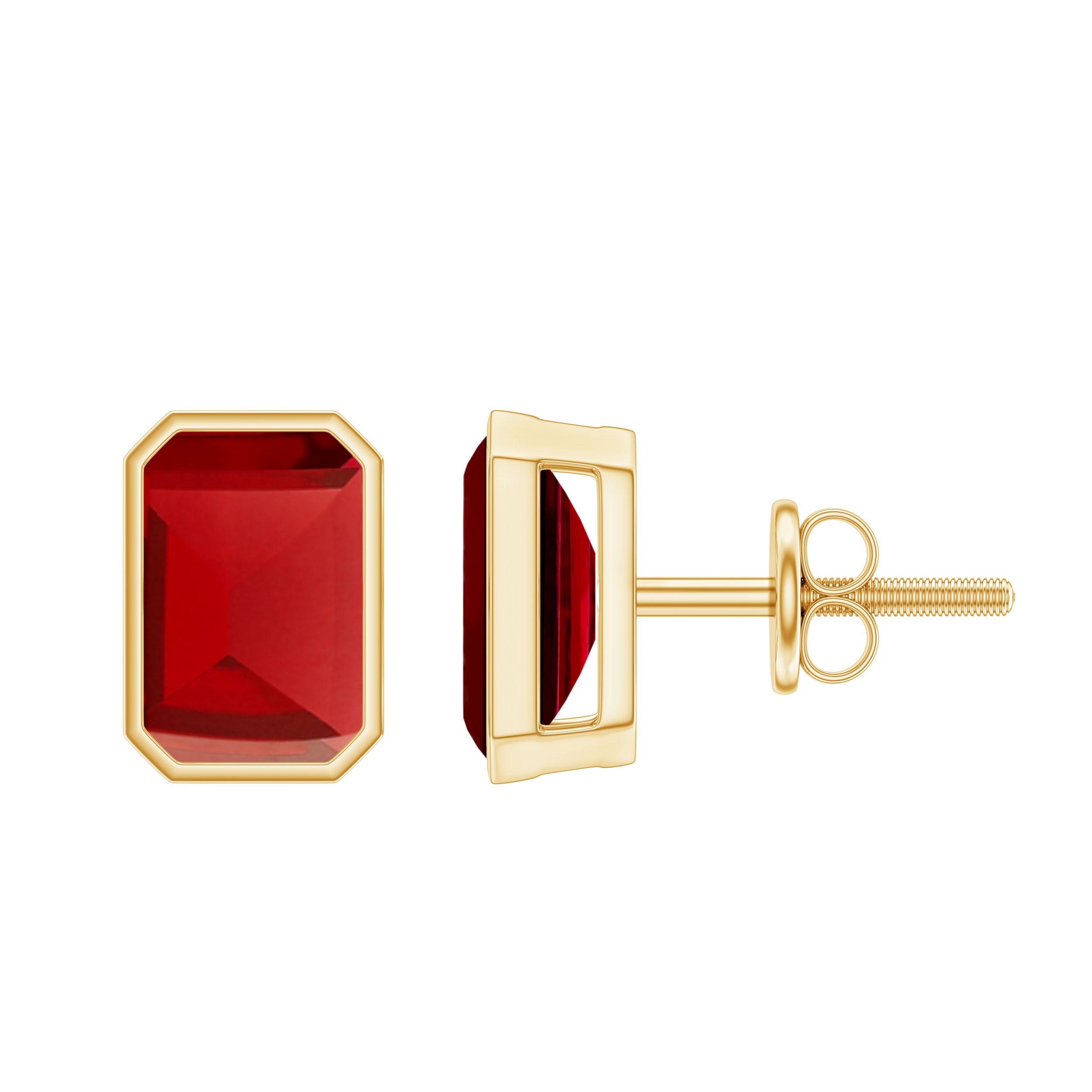 Make a statement with our Beautiful Stud Earrings, featuring a shimmering Octagon Cut Created Ruby in a secure Bezel Setting. This Solitaire Stud Earring is expertly crafted with Solid Gold, adding a touch of luxury and sophistication to your look. These earrings are the perfect accessory for any special occasion or as a stylish addition to your everyday wear.