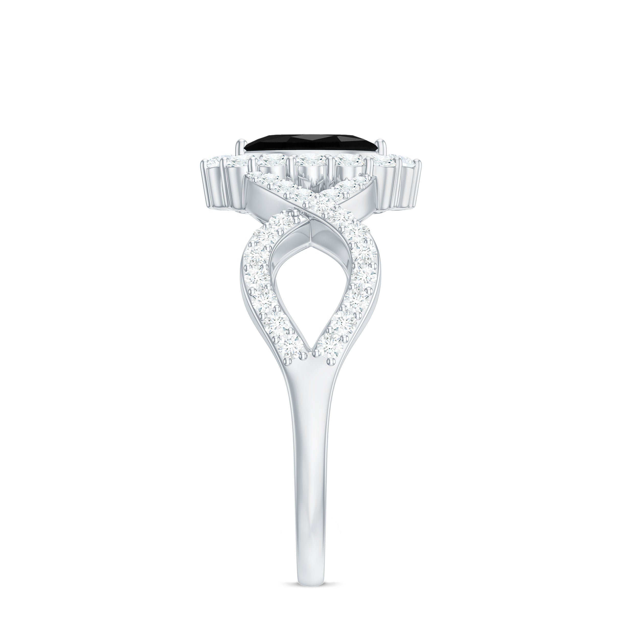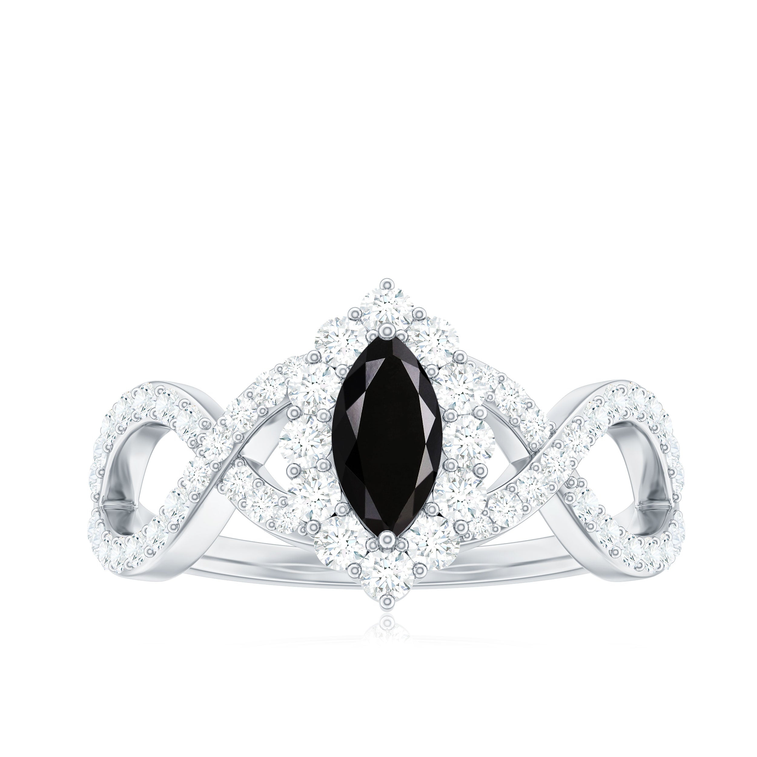 4x8mm Marquise Cut Black Onyx Statement Engagement Ring with Diamond Halo