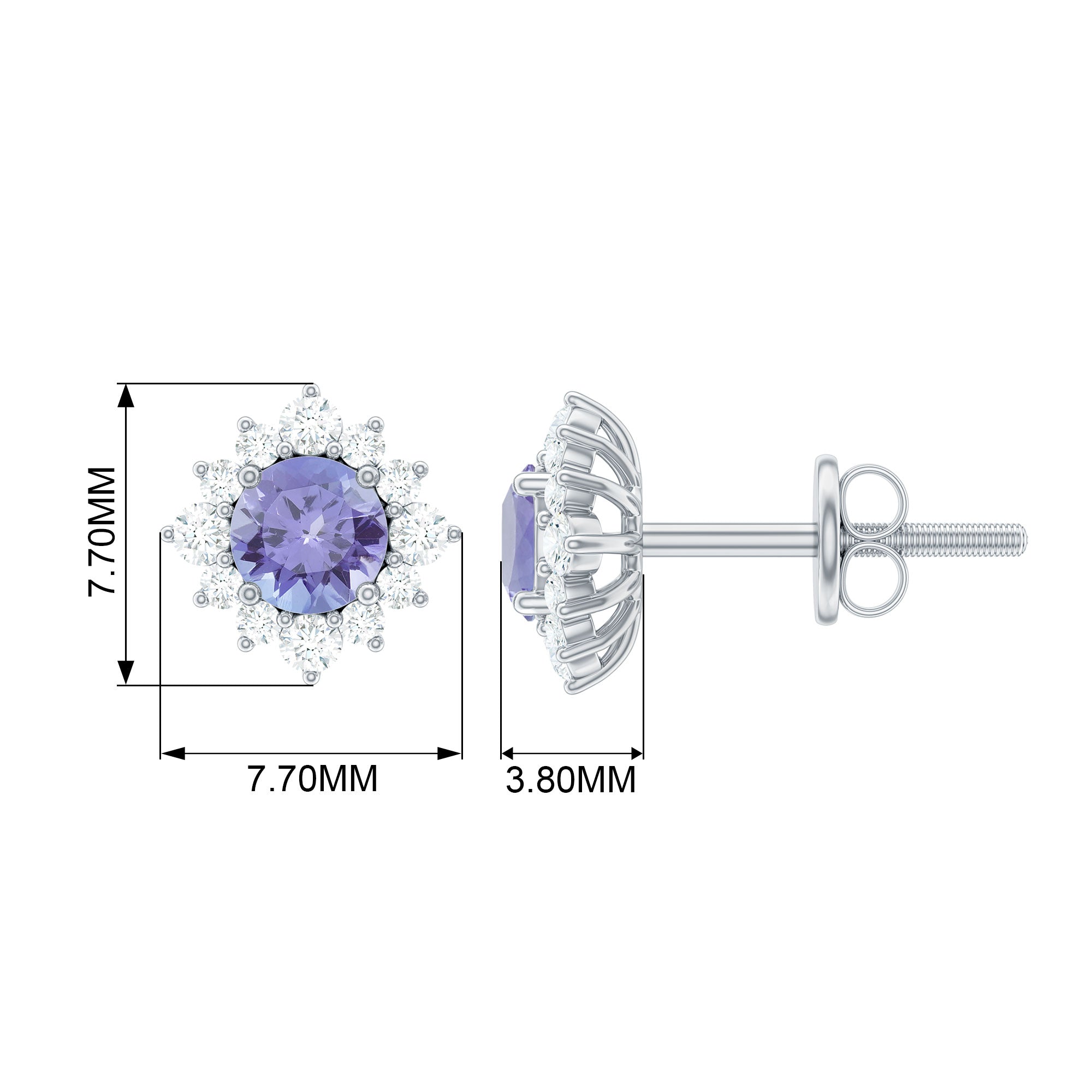 1.5 CT Classic Tanzanite Stud Earrings with Diamond Halo