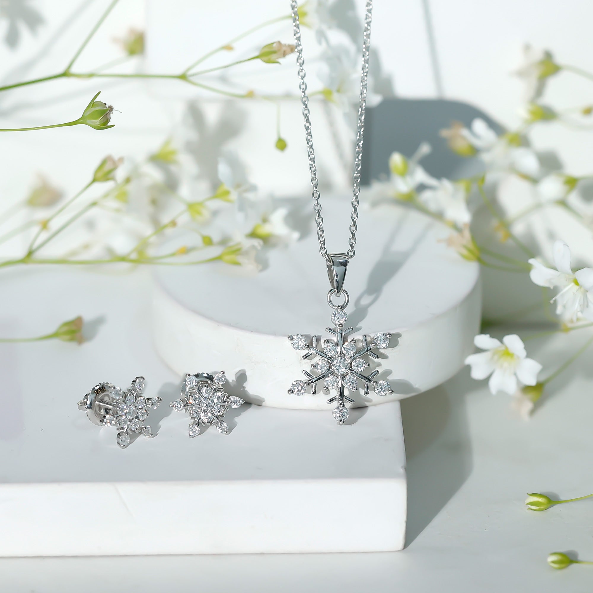 Certified Moissanite Snowflake Jewelry Set For Christmas