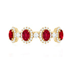 The Wedding Band is a magnificent jewelry encased with Oval Shape Lab Created Ruby in a Prong Setting and small Round Shape Diamond gemstones in the Halo. This gorgeous Diamond Halo Band is mounted in Solid Gold.