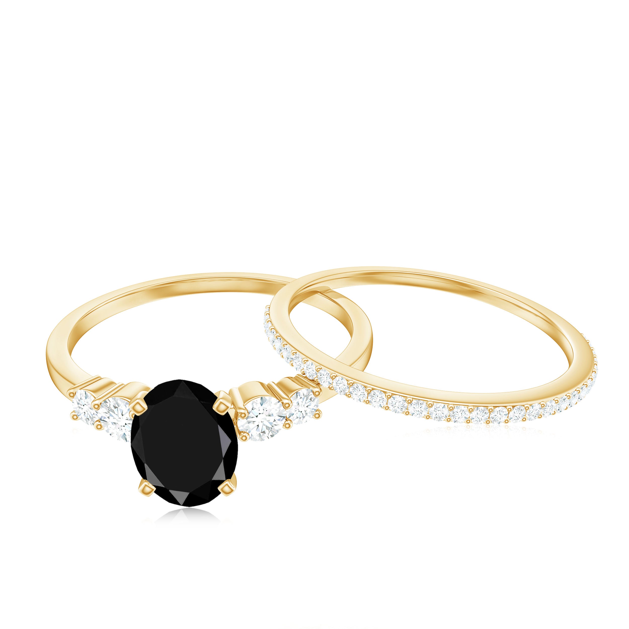 1.5 CT Oval Created Black Diamond Solitaire Ring Set with Diamond