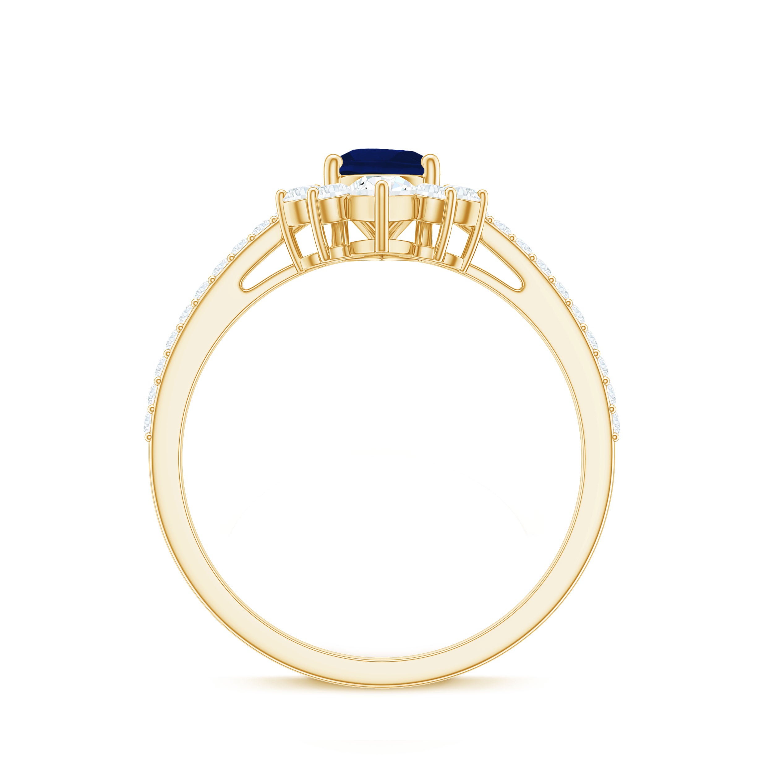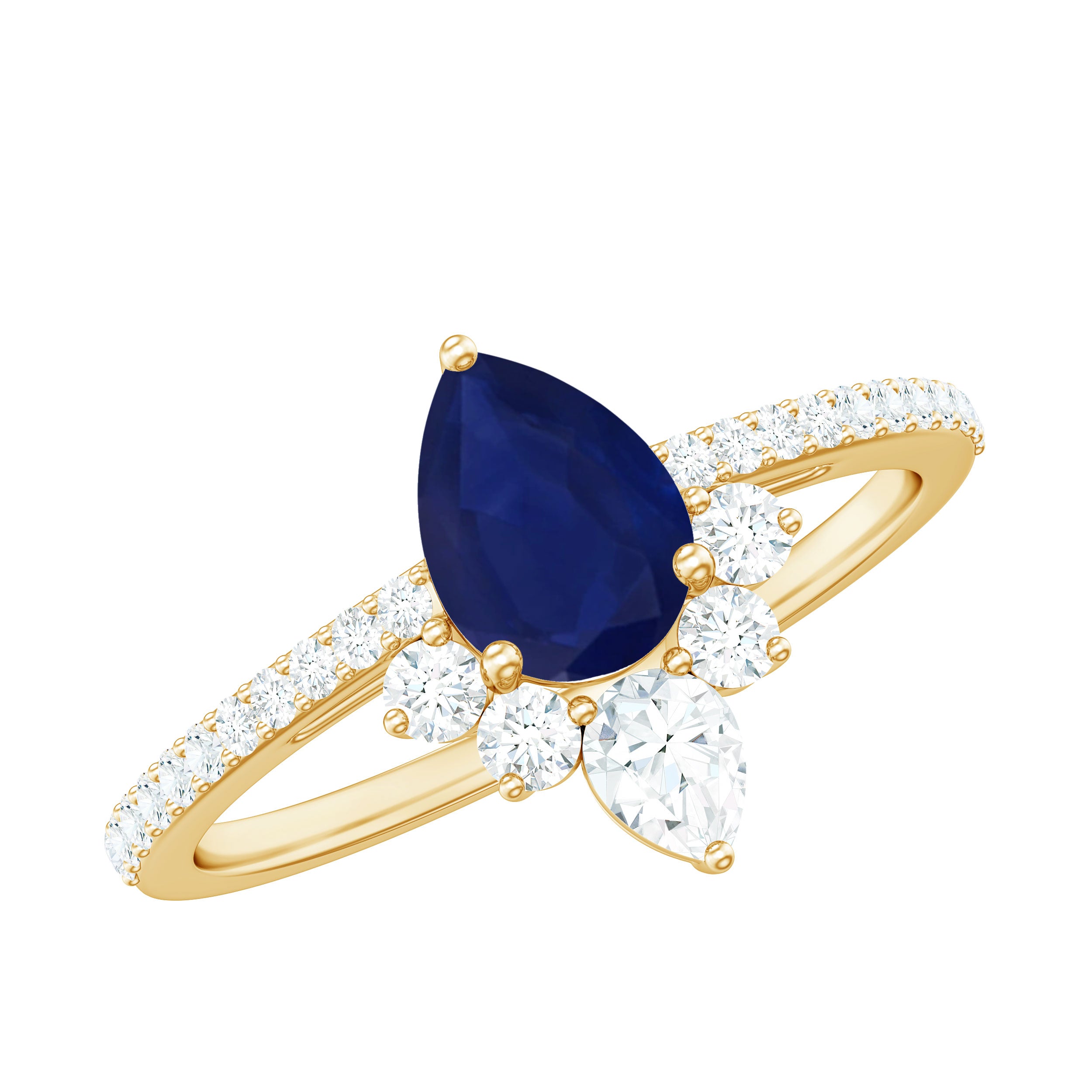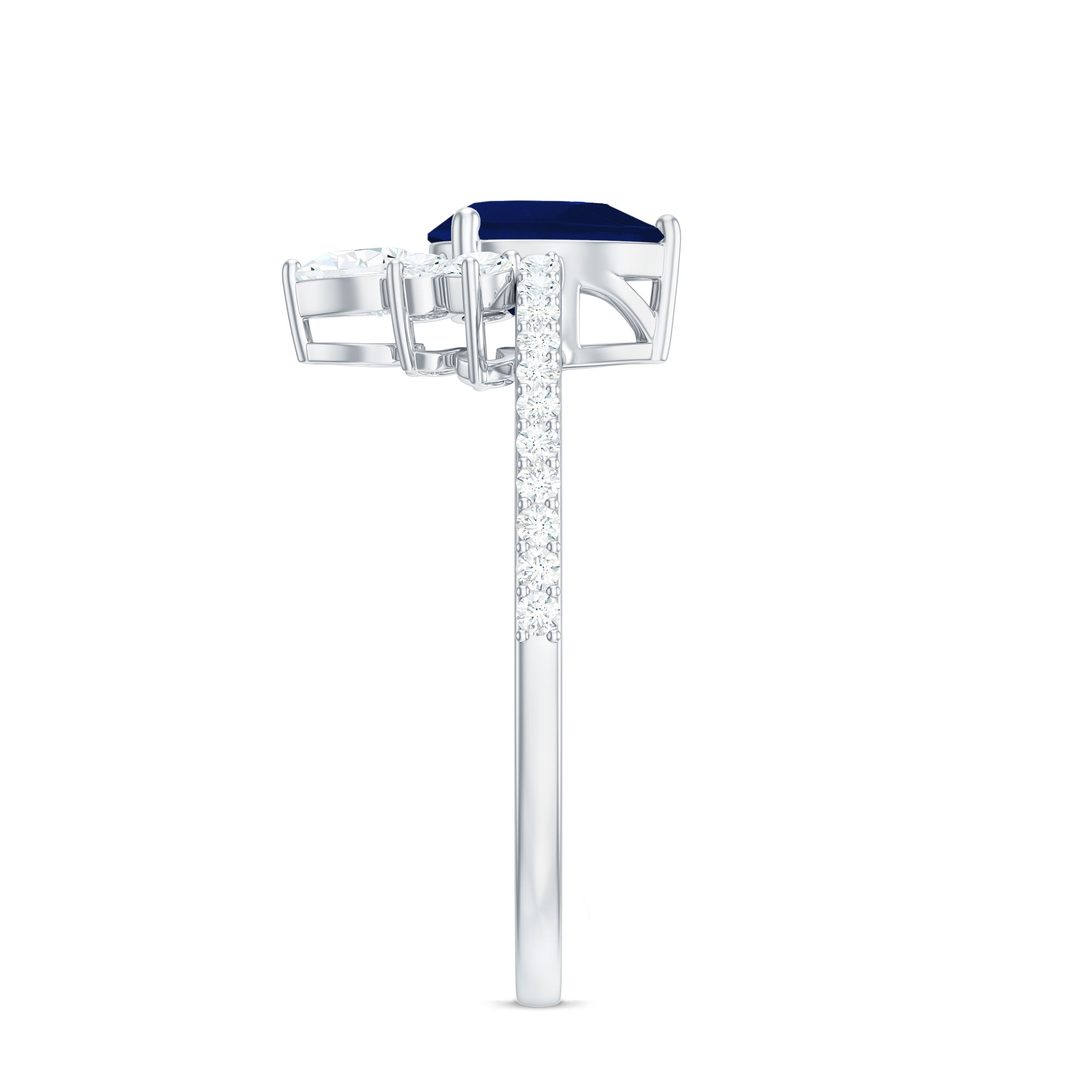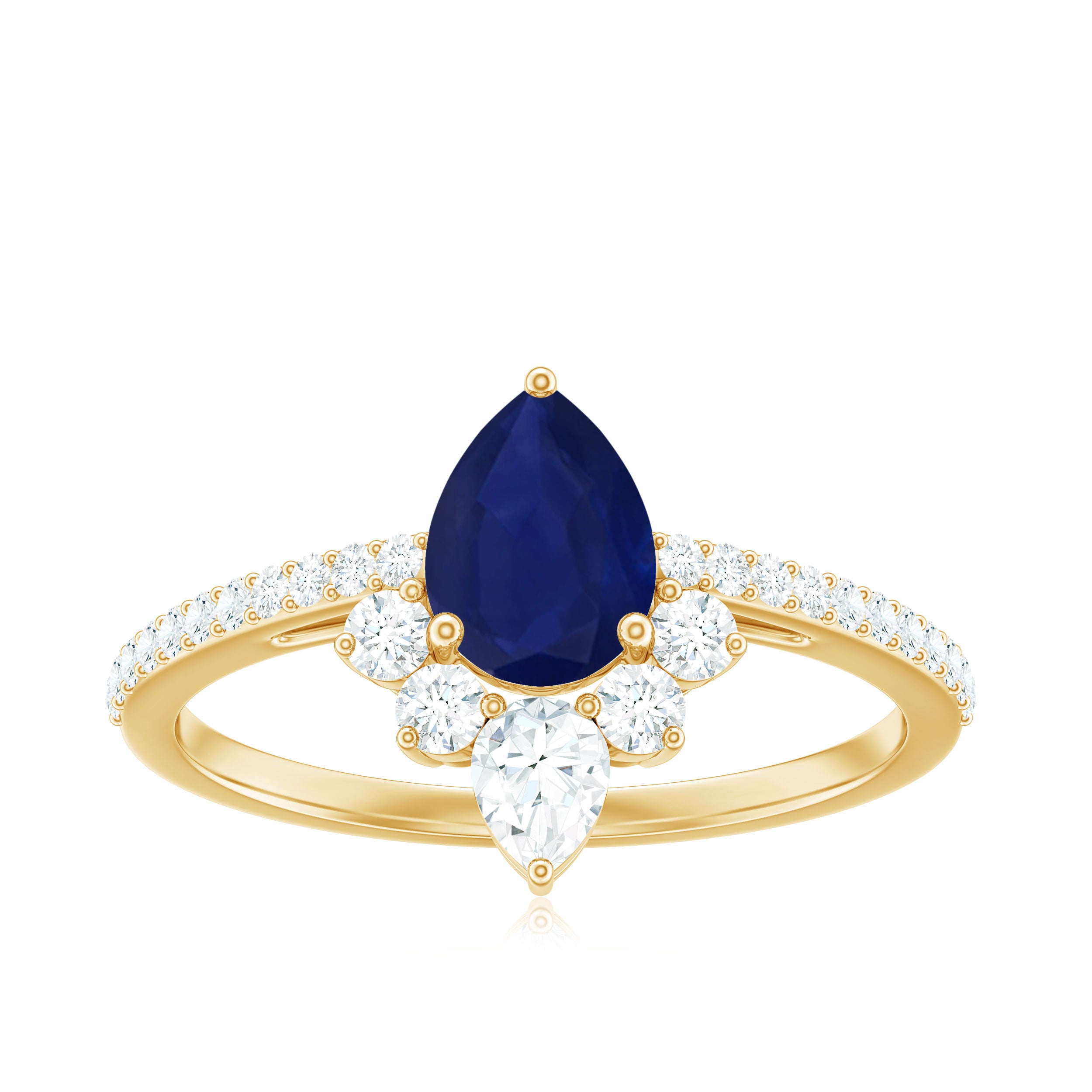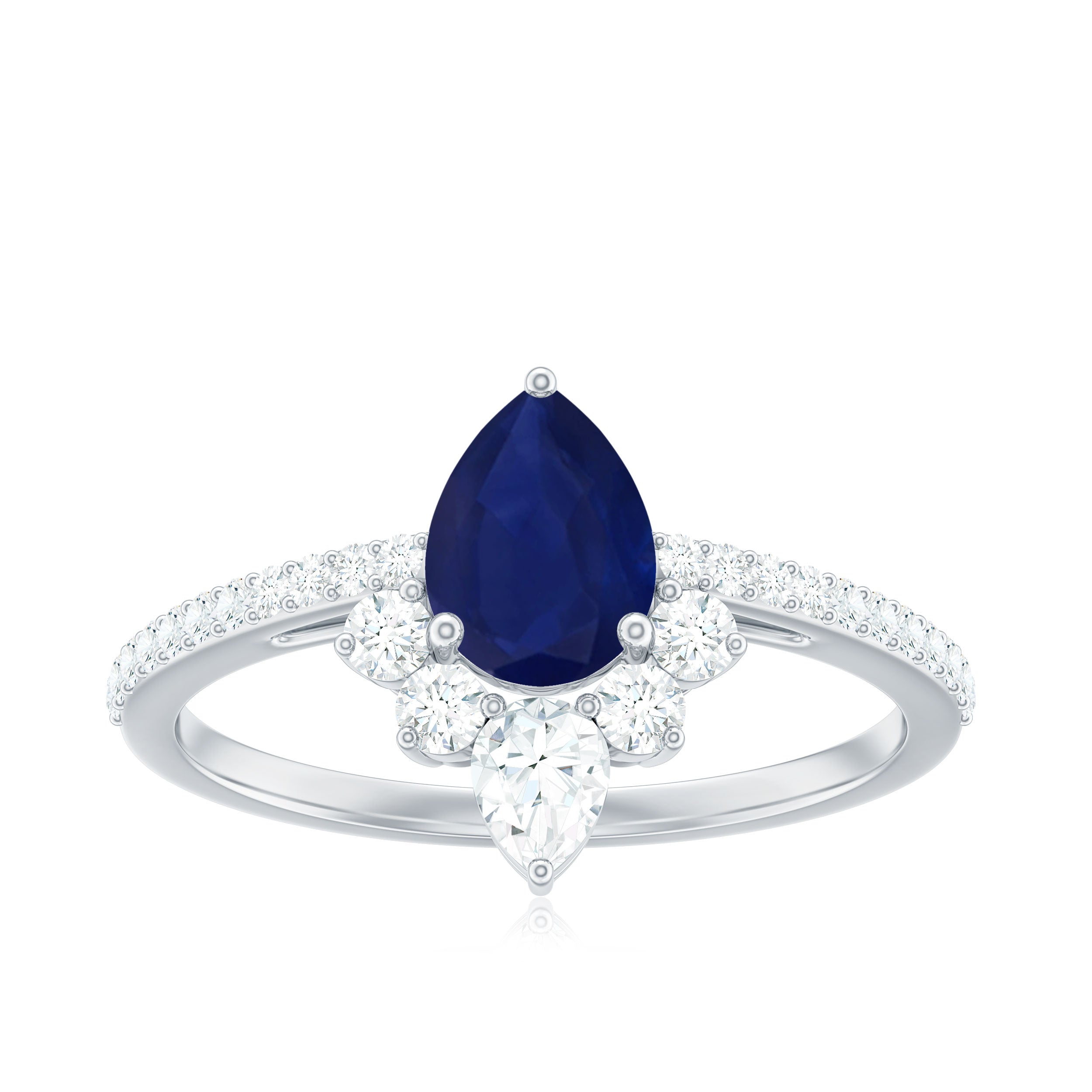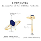 Pear Cut Blue Sapphire Crown Solitaire Ring with Diamond
