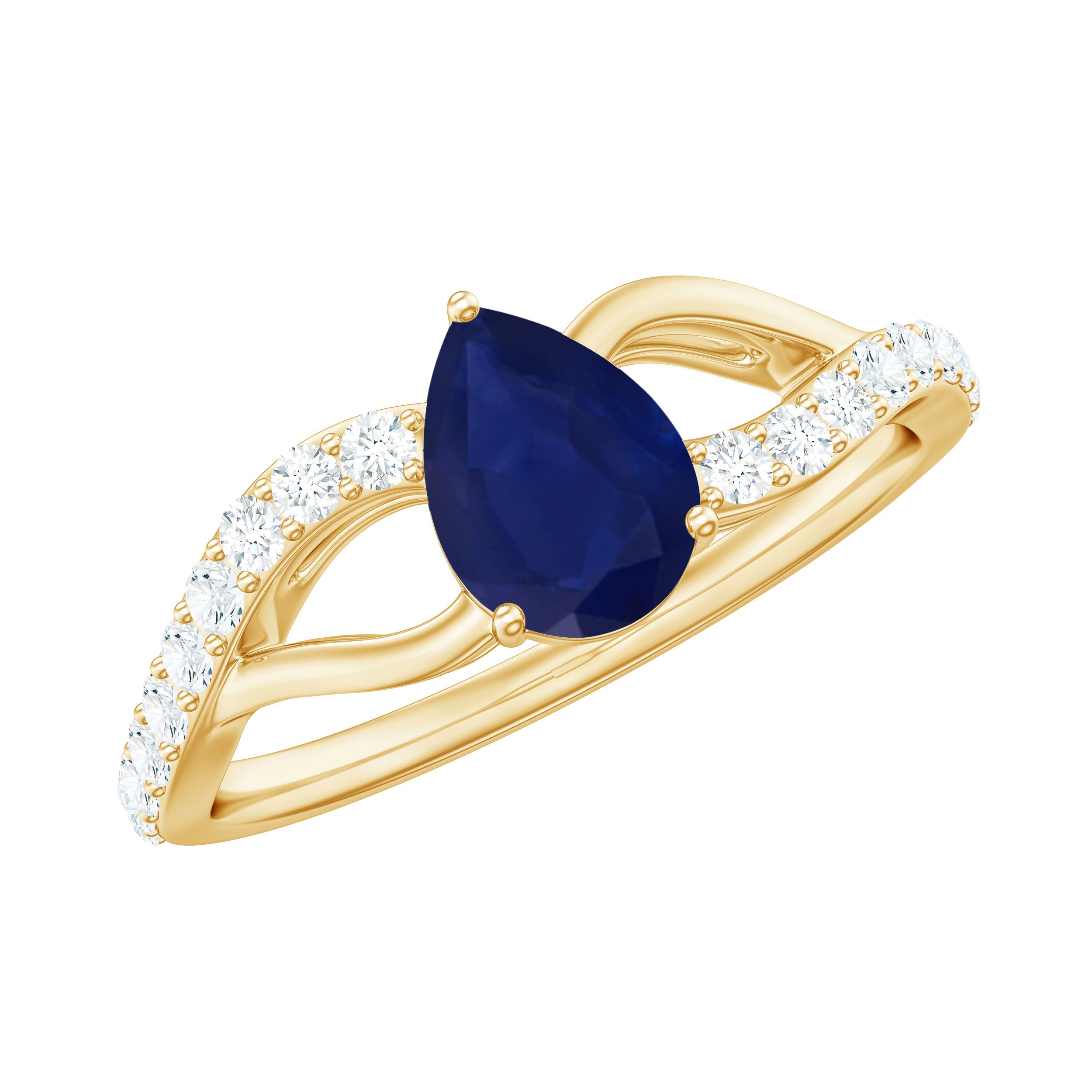 Pear Cut Blue Sapphire Solitaire Split Shank Ring with Diamond