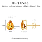 Natural Pear Shape Citrine November Birthstone Stud Earrings