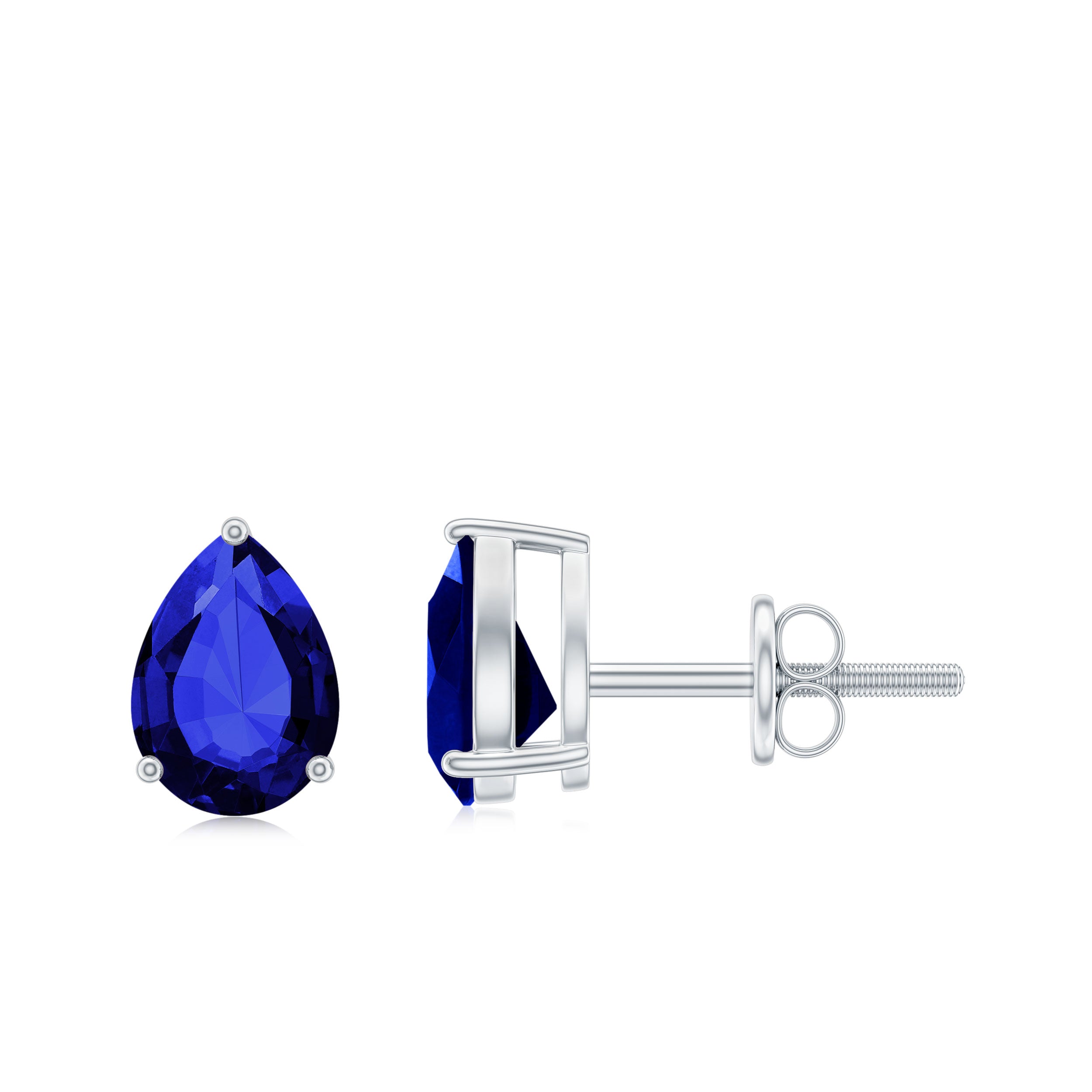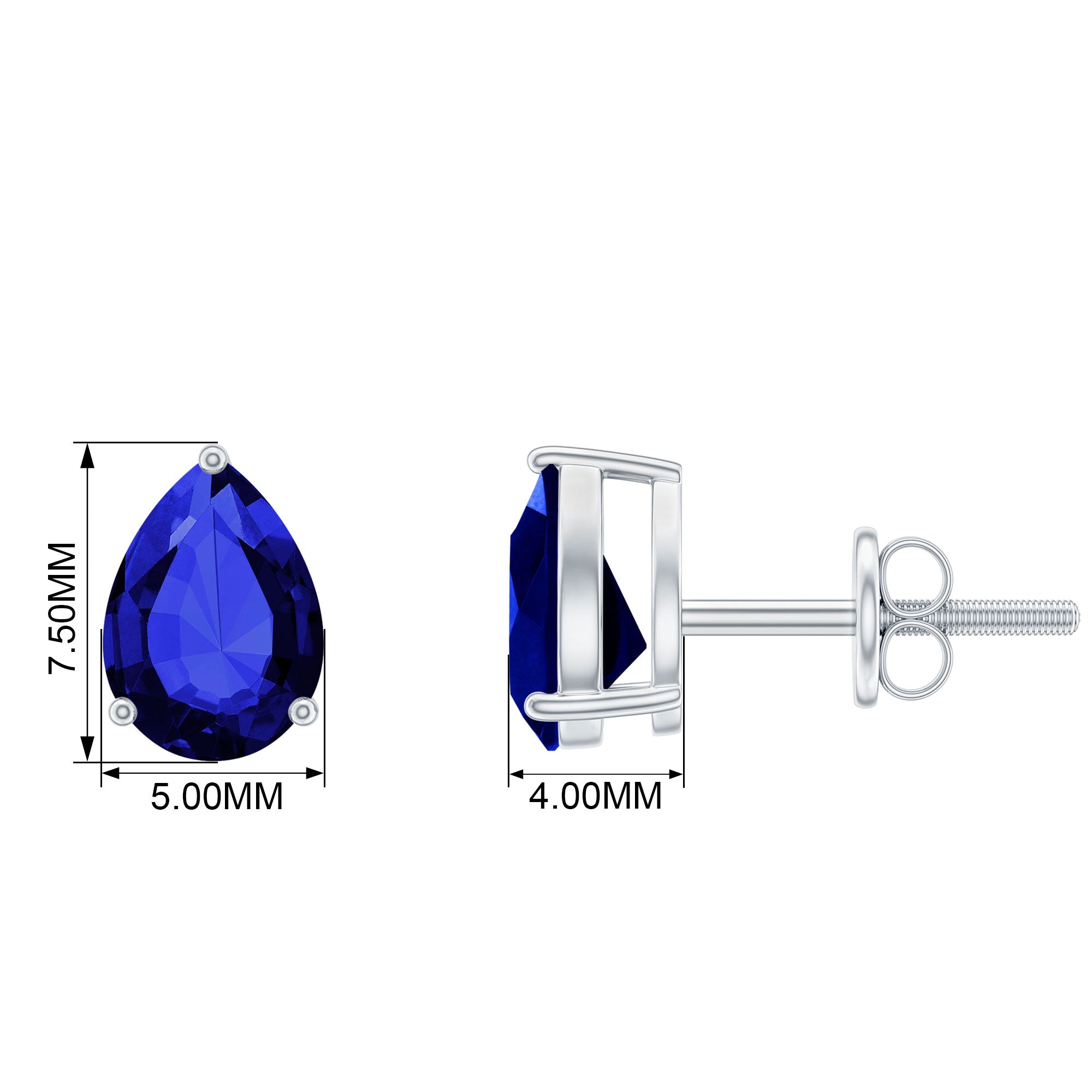 1.5 CT Pear Cut Created Blue Sapphire Solitaire Stud Earrings