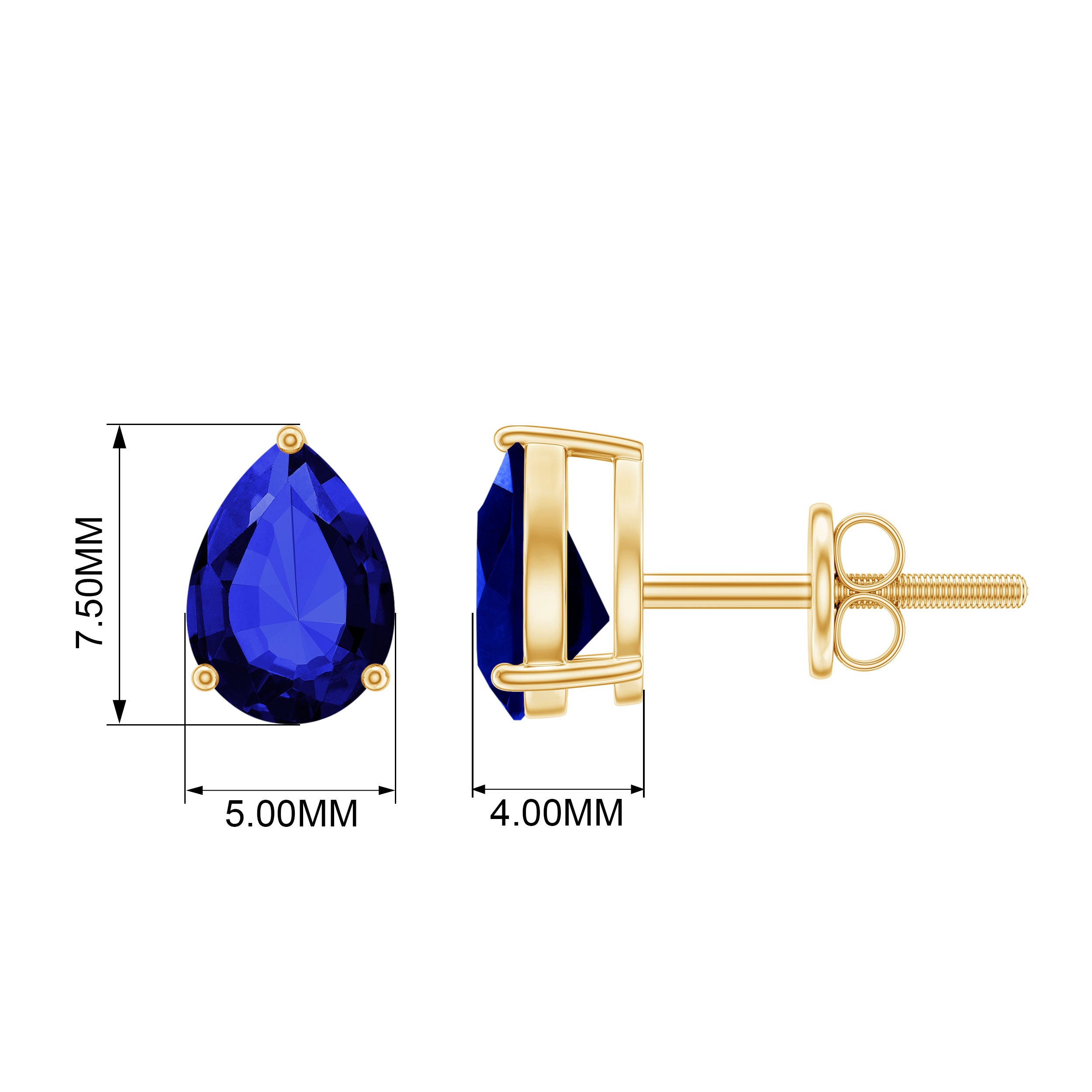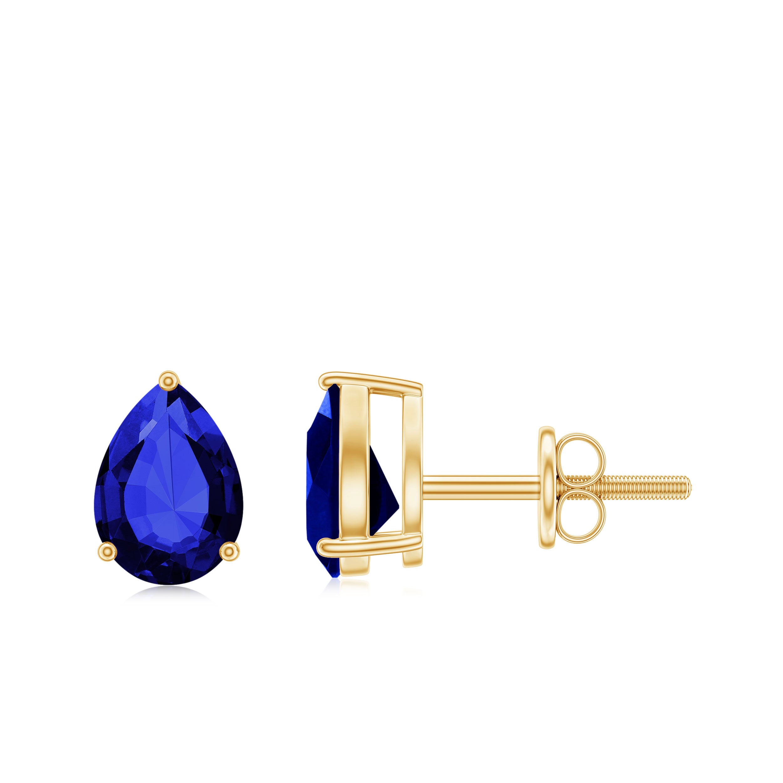 These Attractive and Eye-Catching Stud Earrings are embellished with Pear Shape created Blue Sapphire, held in 3 prong setting. These Classic Created Blue Sapphire Earrings are composed of Solid Gold. Its indeed a perfect and time-saving accessory for working women. These teardrop stud earrings are an amazing everyday staple.