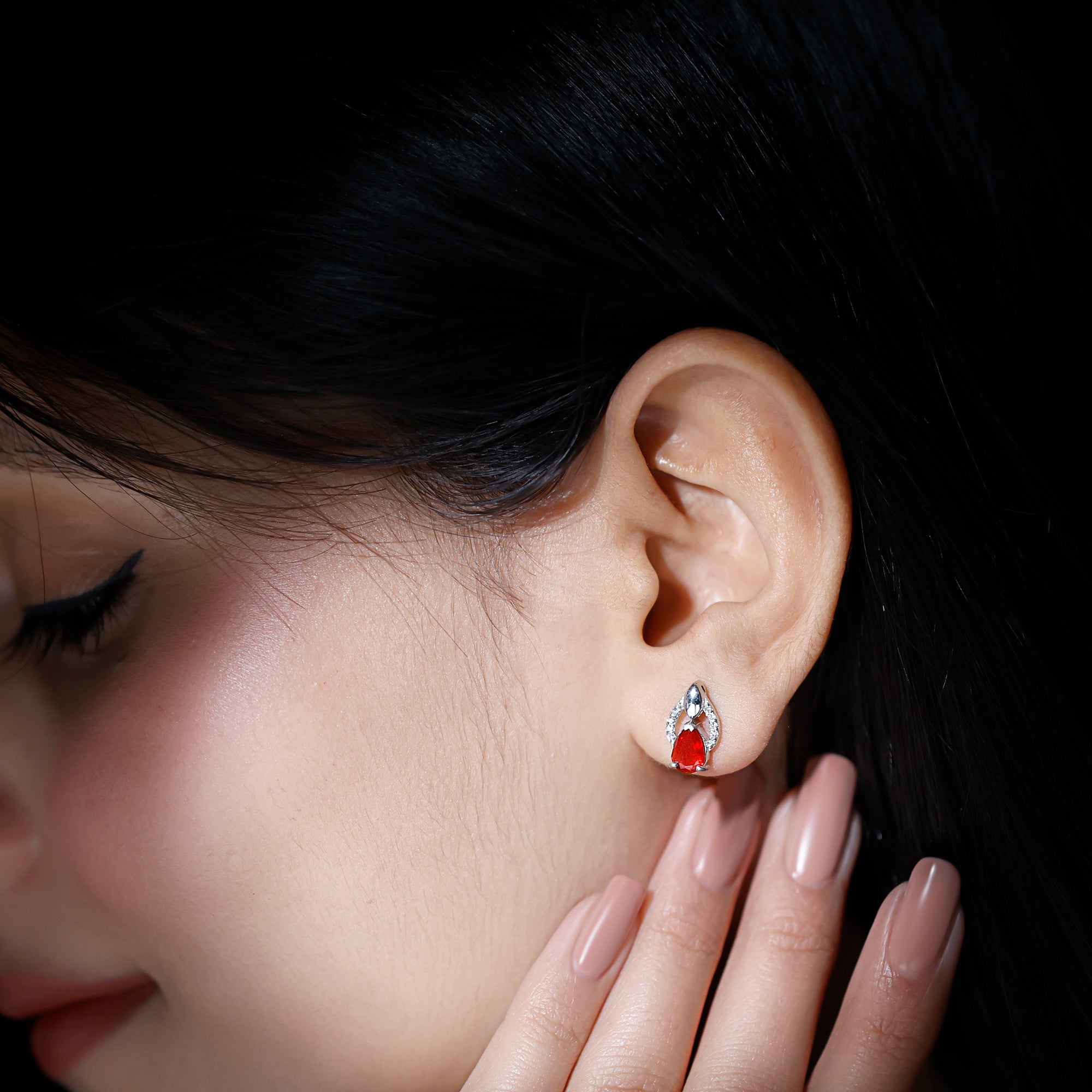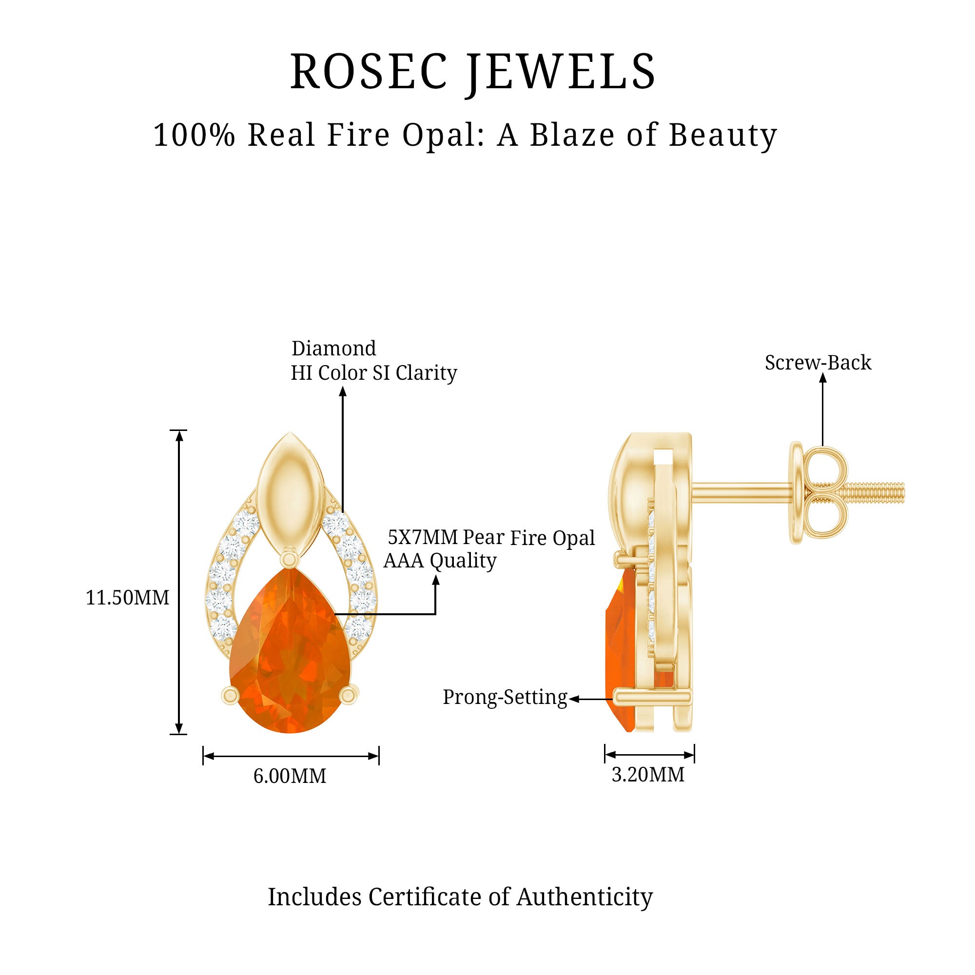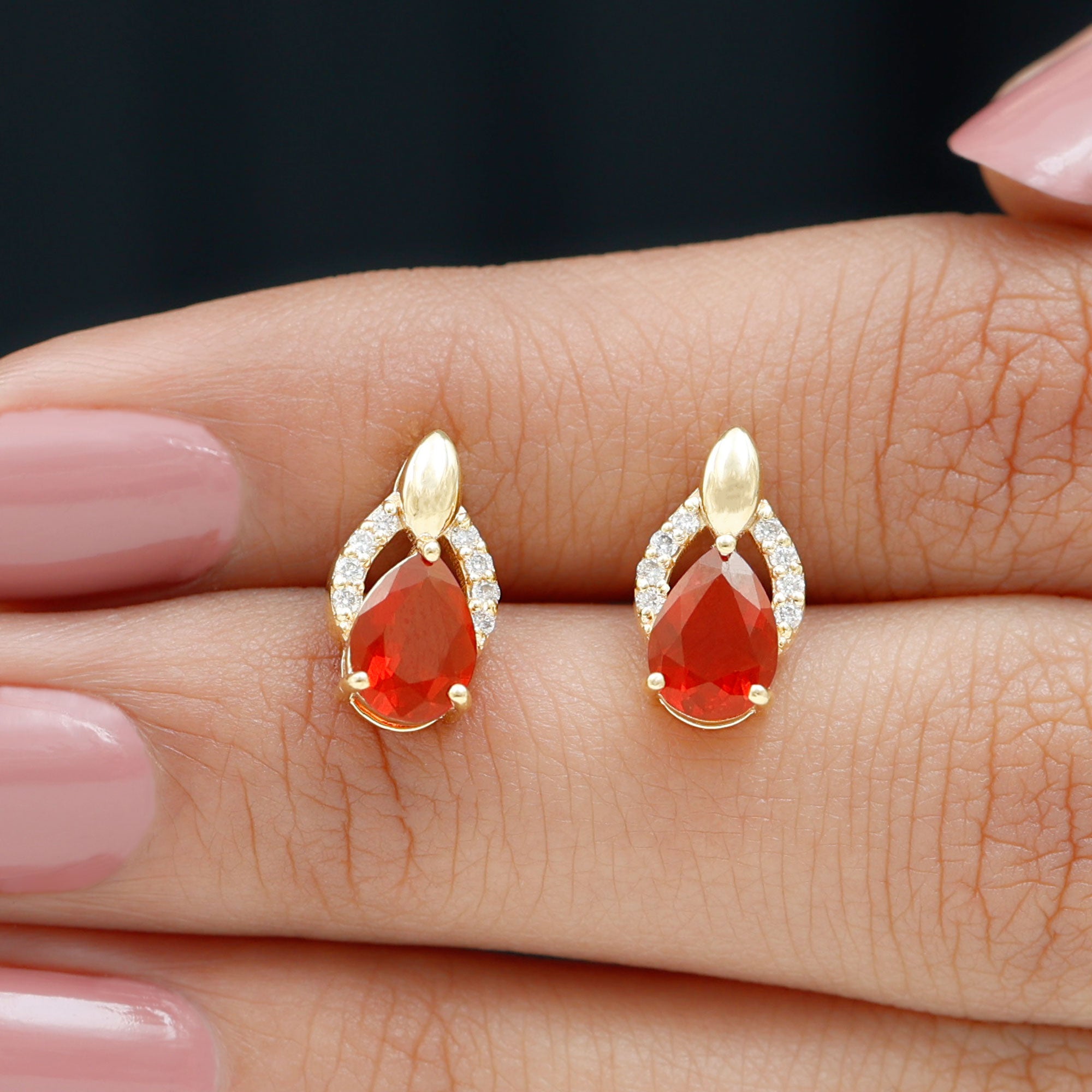 1.5 CT Pear Cut Fire Opal Bridal Stud Earrings with Diamond Accent