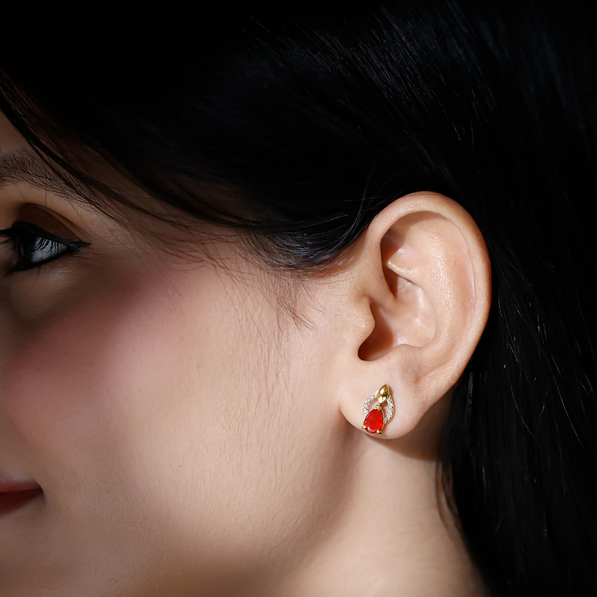 Jewelry has the power to be the one little thing that makes you feel unique. These Teardrop Earrings are embellished with Pear Cut Fire Opal and Round Shape Diamond Accent in Prong Setting. These Fire Opal Earrings are available in gold. Tell your story by wearing these Beautiful Designer Bridal Earrings.