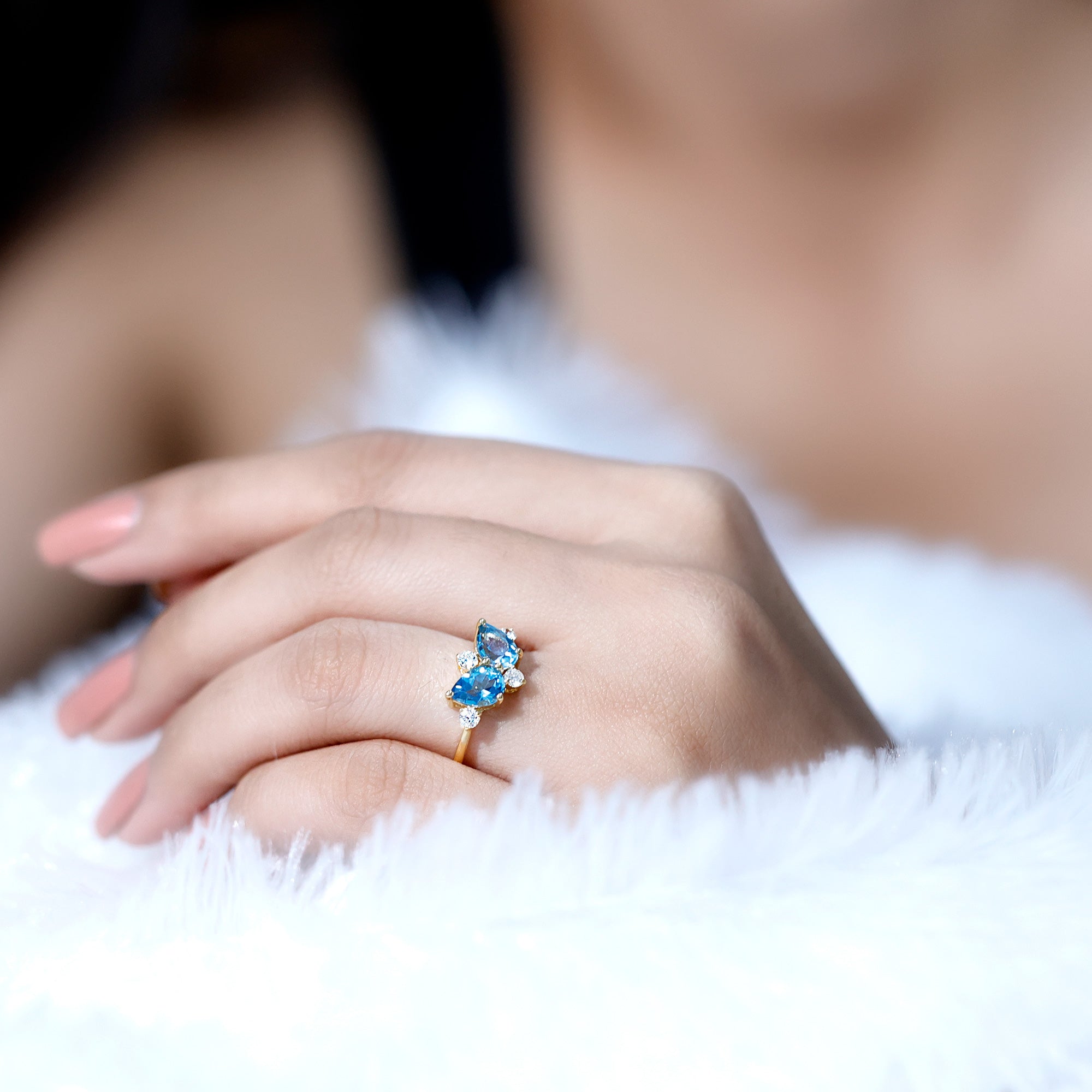 1.5 CT Pear Cut Swiss Blue Topaz Cluster Promise Ring with Diamond