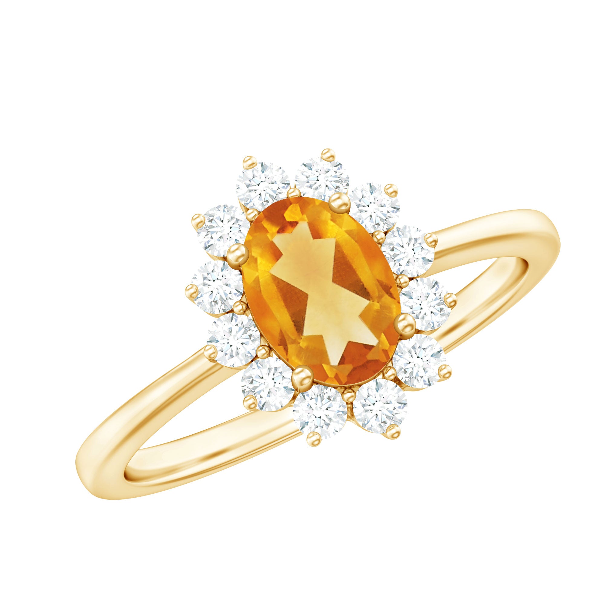 Make her feel like a princess on your special day with this Princess Diana Inspired Ring adorned with Oval Shape Citrine is set as a Solitaire with Diamond Halo. This Engagement Ring is crafted with Solid Gold for a luxurious appeal.