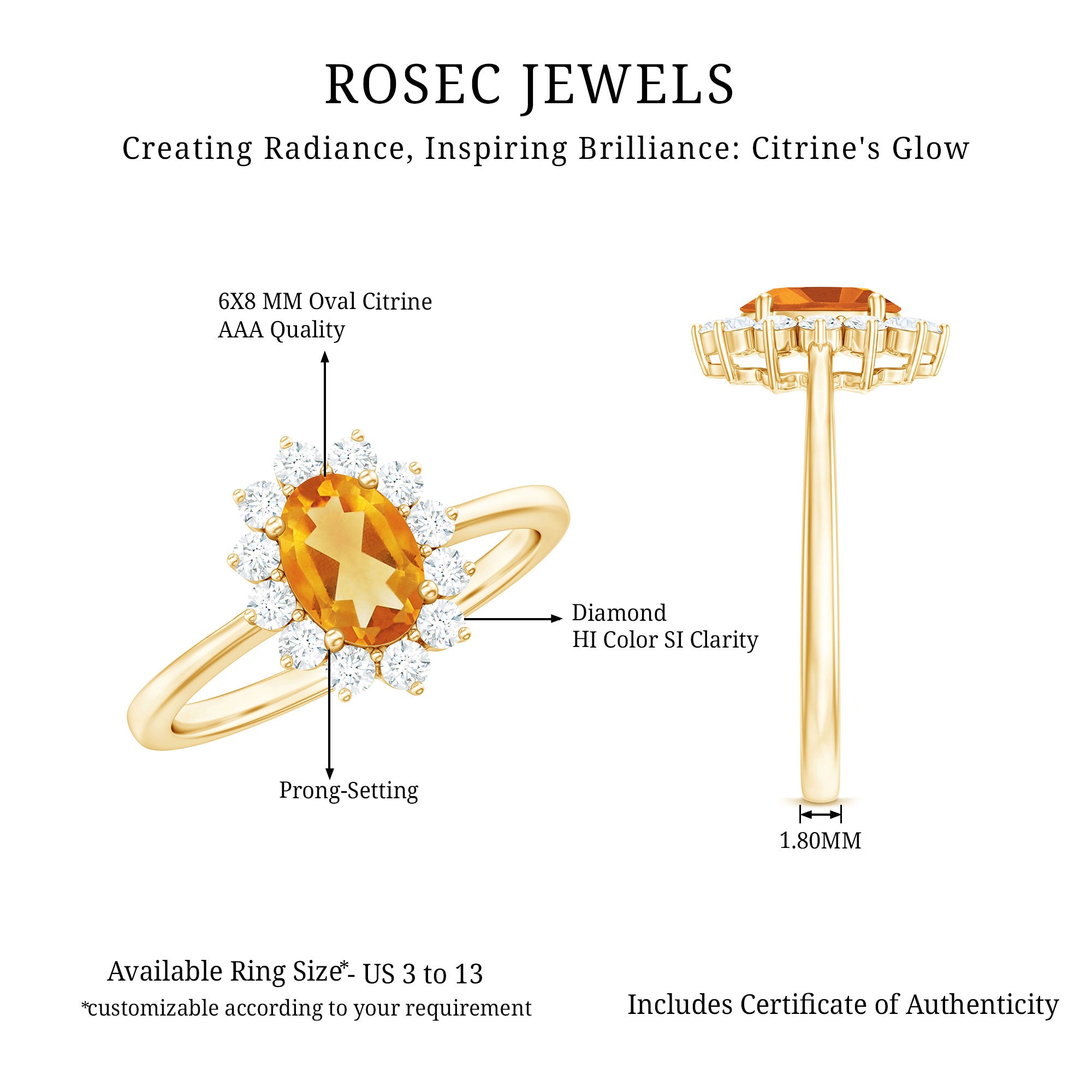 1.5 CT Princess Diana Inspired Oval Shape Citrine Engagement Ring with Diamond Halo