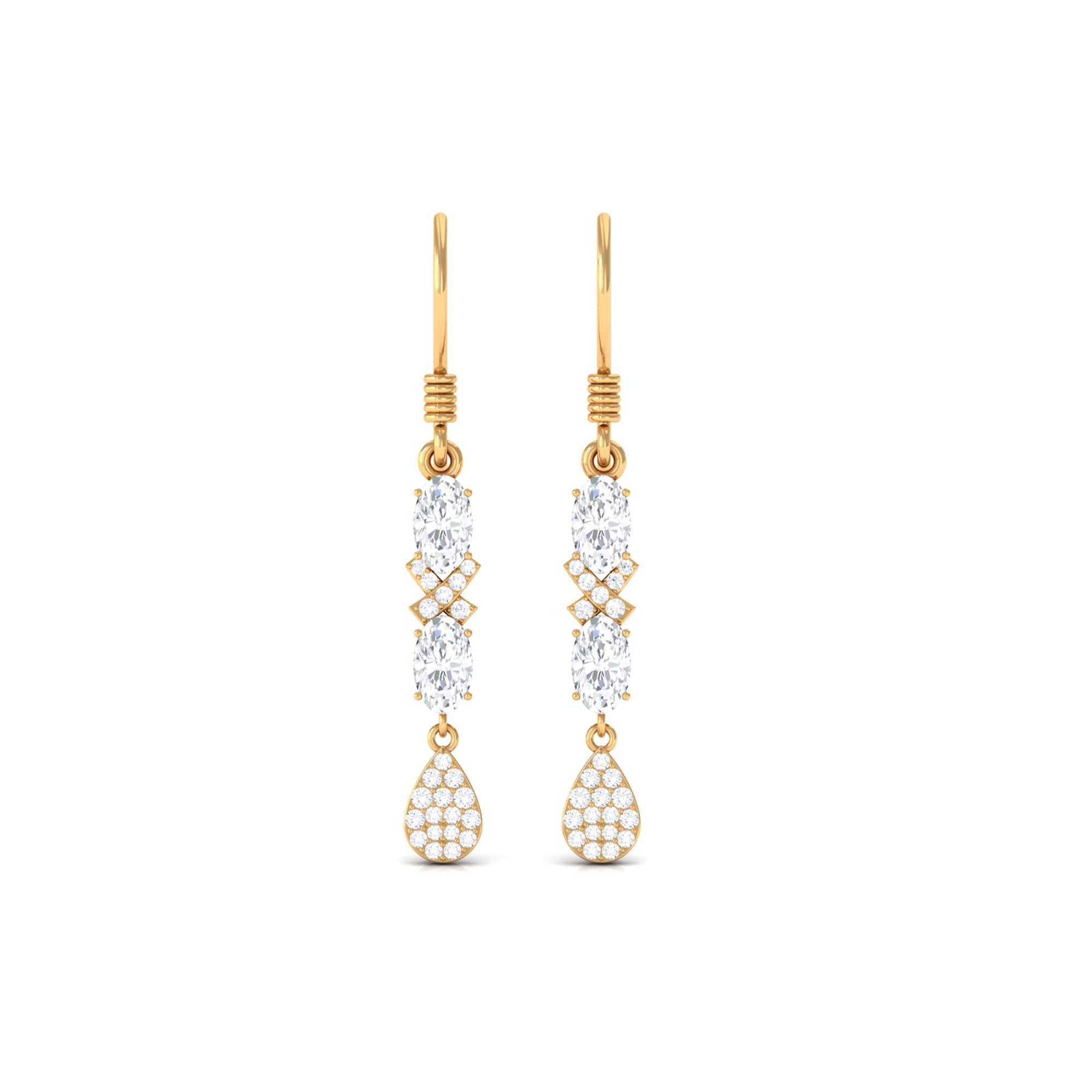 Make a lasting impression with your exquisite jewelry choice by wearing these beautiful dangle earrings. Featuring oval and round cut Moissanite in a dangle pattern, these solid gold designer earrings are sure to be a showstopper for any special occasion. The beautiful sparkle of the Moissanite is eye-catching and adds a touch of glamour to any outfit. The solid gold is both pure and durable, ensuring these Moissanite dangle earrings will be treasured for years to come. Whether worn for a night out or a special event, these dangler earrings are sure to make an impact with their timeless design.