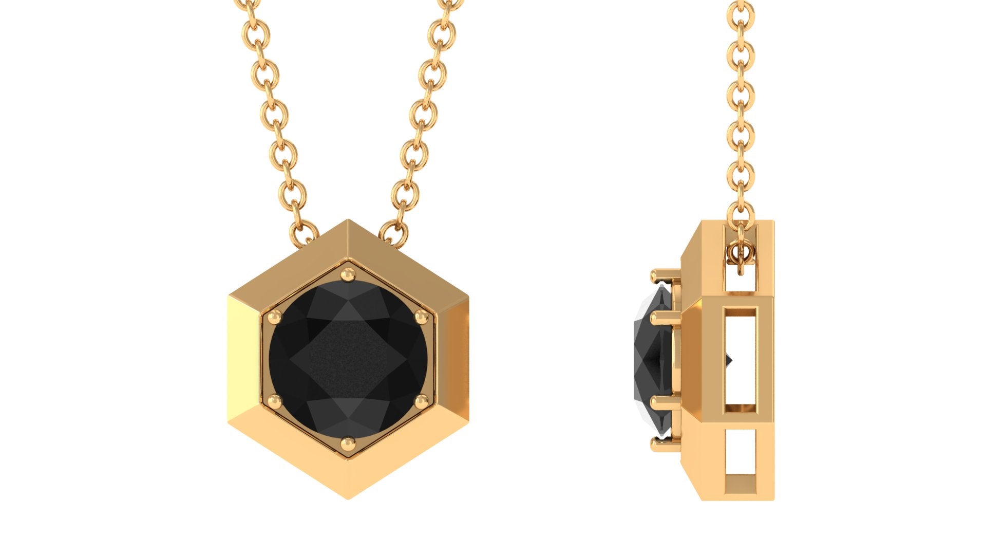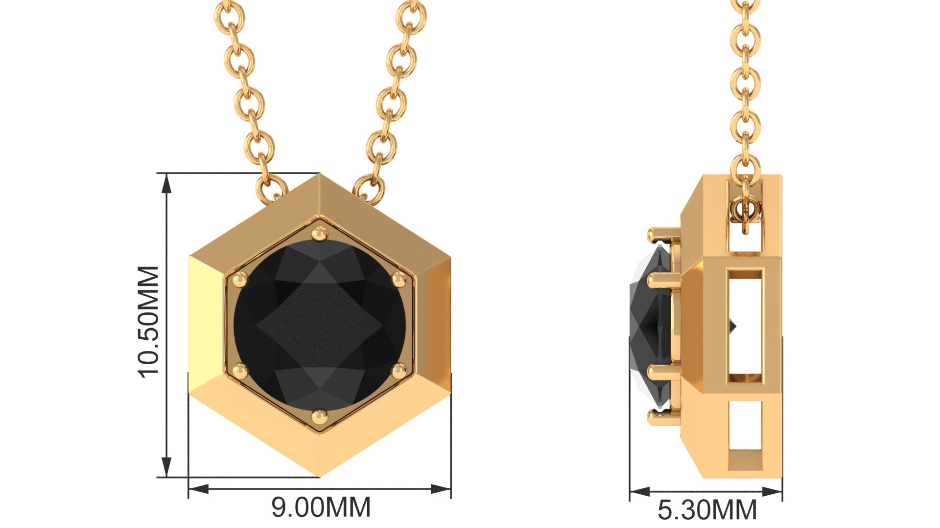 1.5 CT Round Black Spinel Gold Hexagon Pendant Necklace