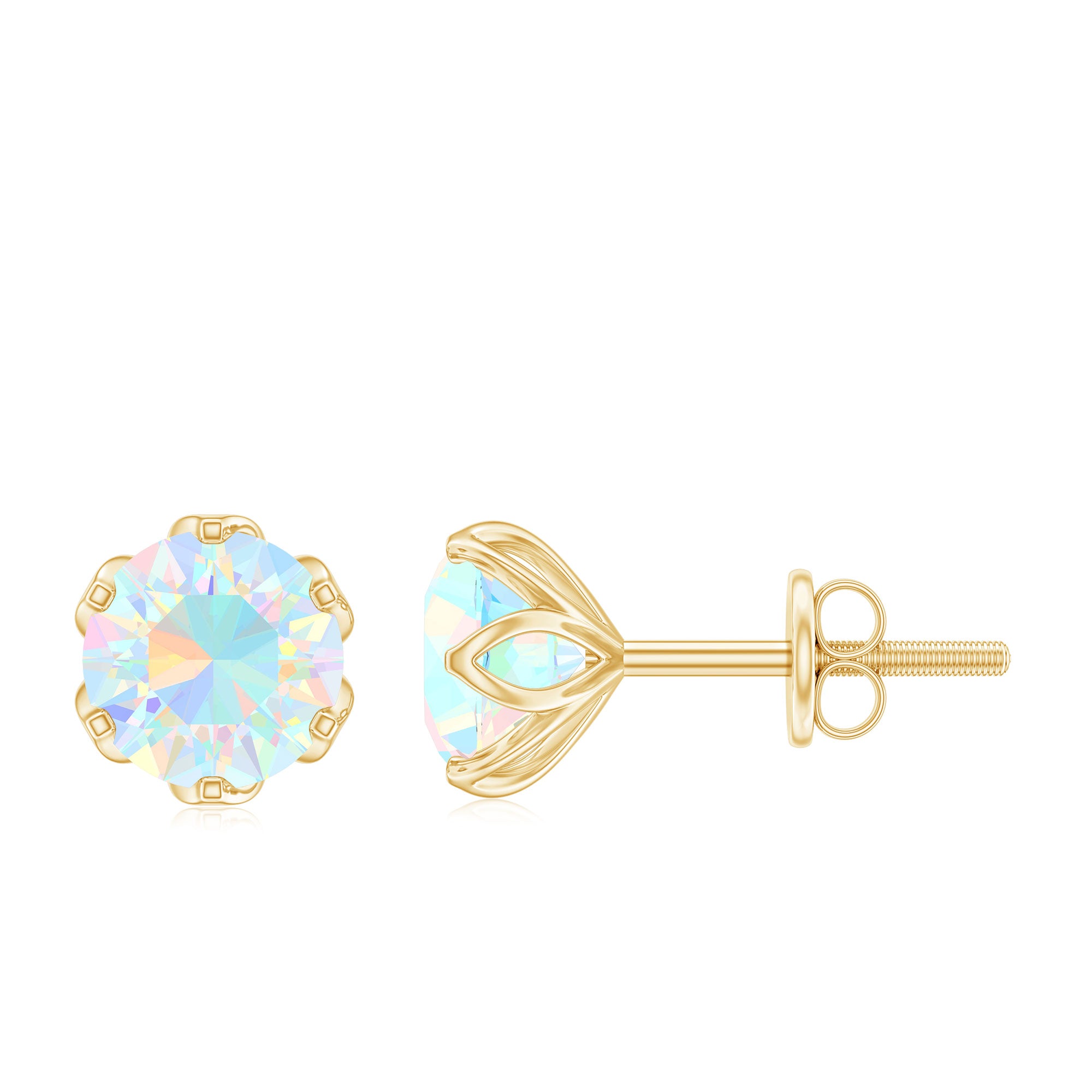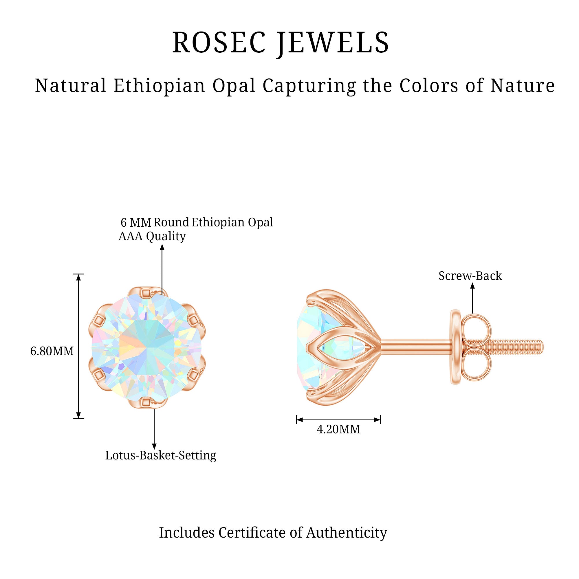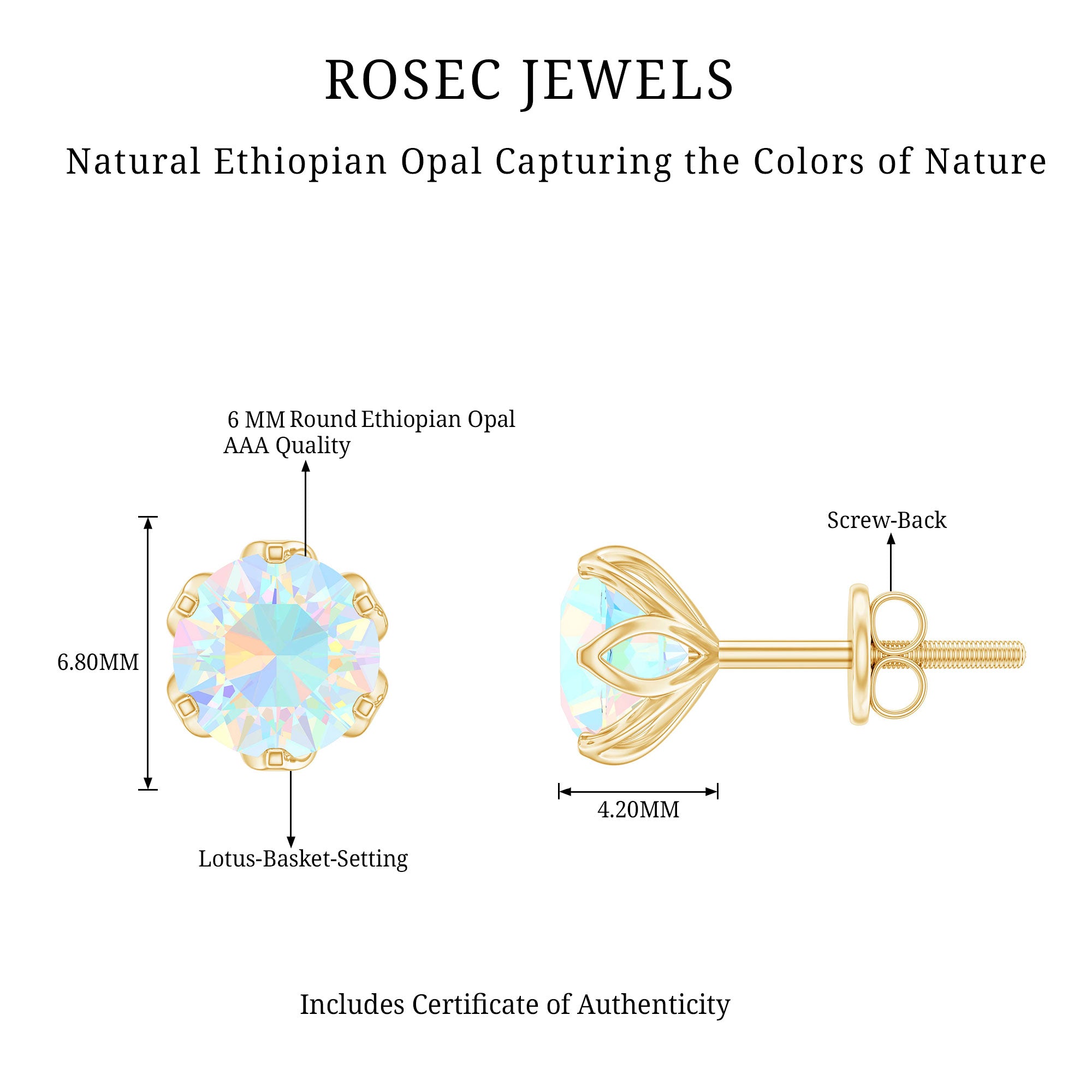 Grace yourself with this beautiful pair of Solitaire Stud Earrings embellished with Round Cut Ethiopian Opal Solitaire set in Lotus Basket Setting and appears as flower. Solid Gold composed Ethiopian Opal Earrings will steal the spotlight for you in the parties and celebrations.