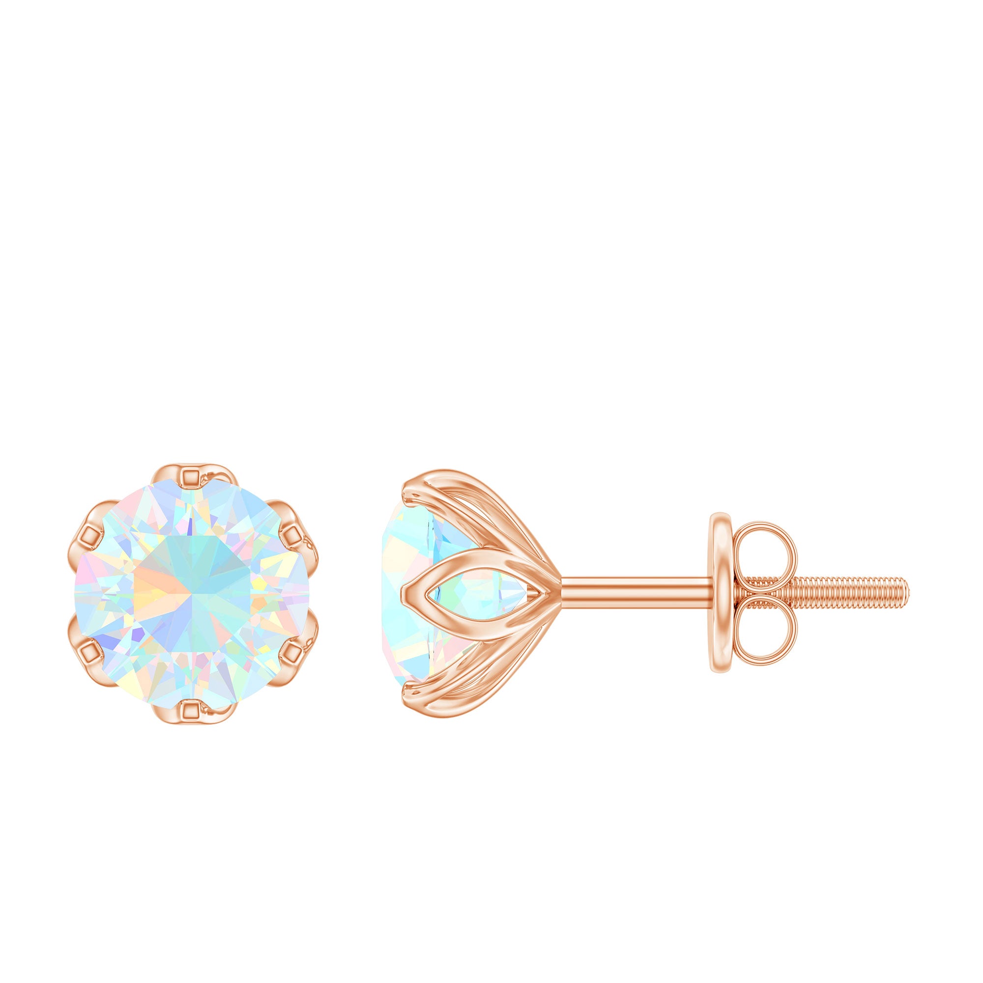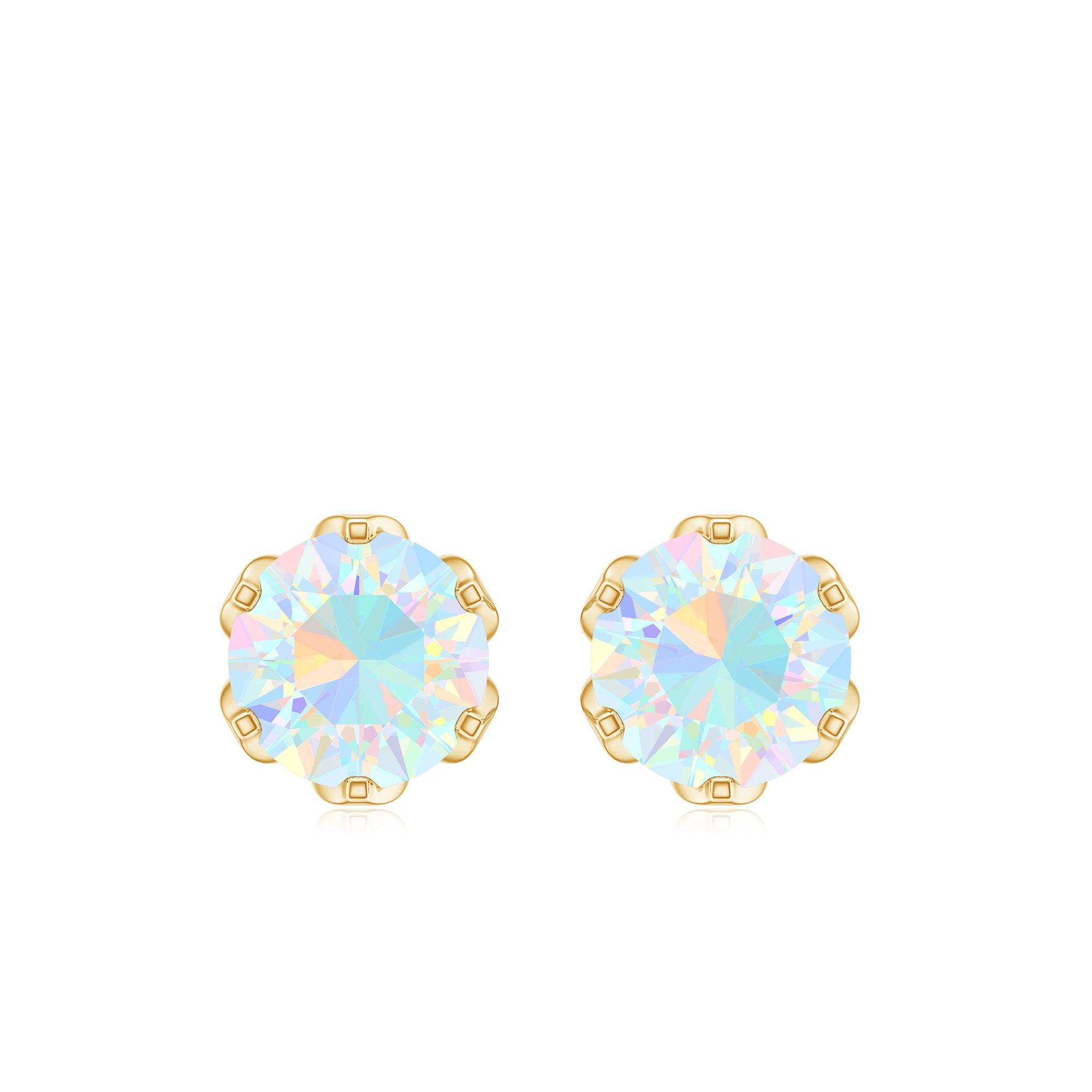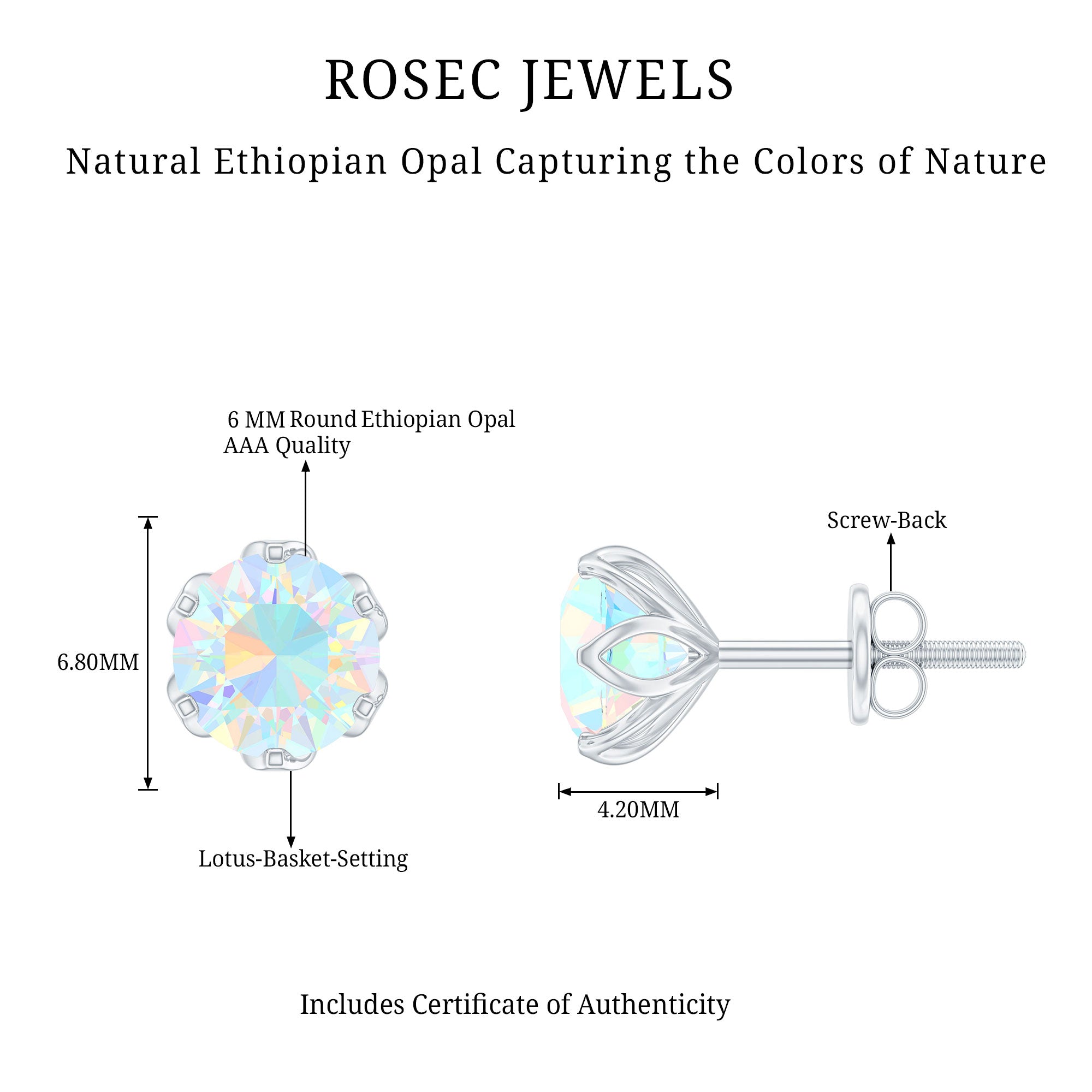 Grace yourself with this beautiful pair of Solitaire Stud Earrings embellished with Round Cut Ethiopian Opal Solitaire set in Lotus Basket Setting and appears as flower. Solid Gold composed Ethiopian Opal Earrings will steal the spotlight for you in the parties and celebrations.