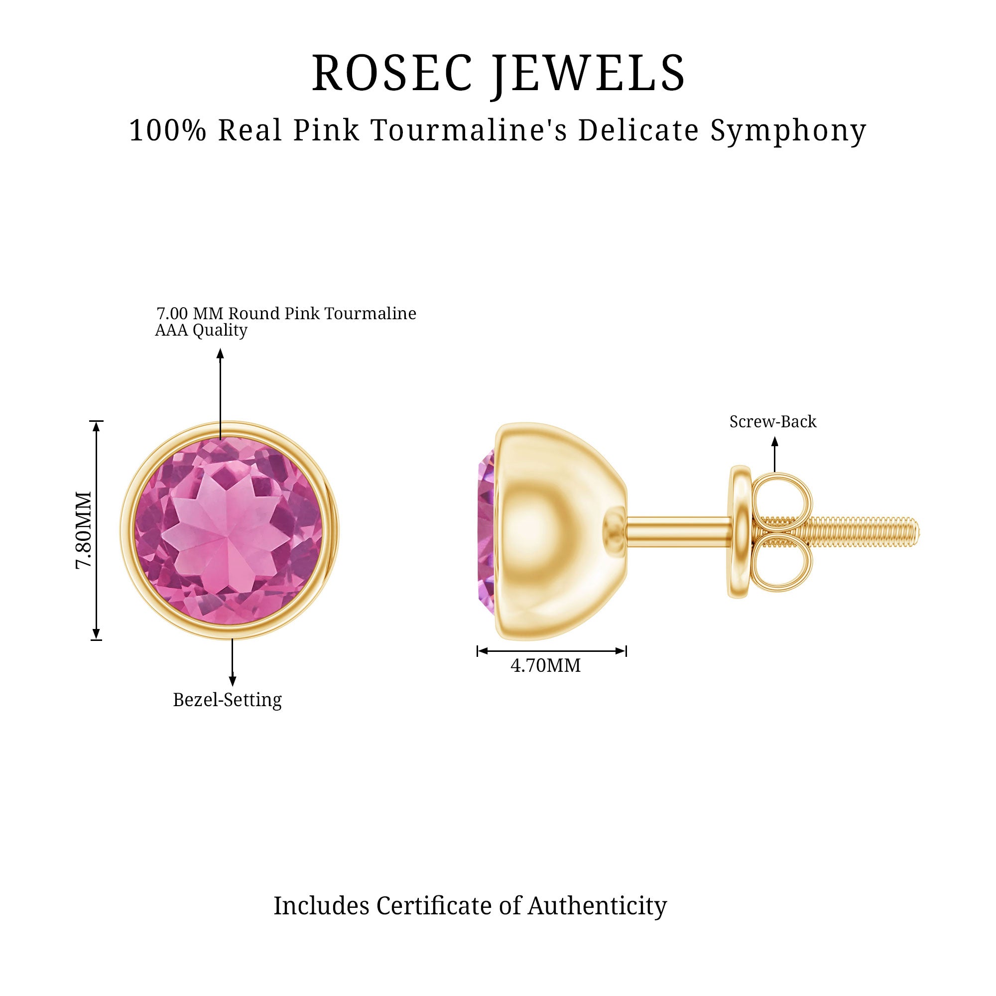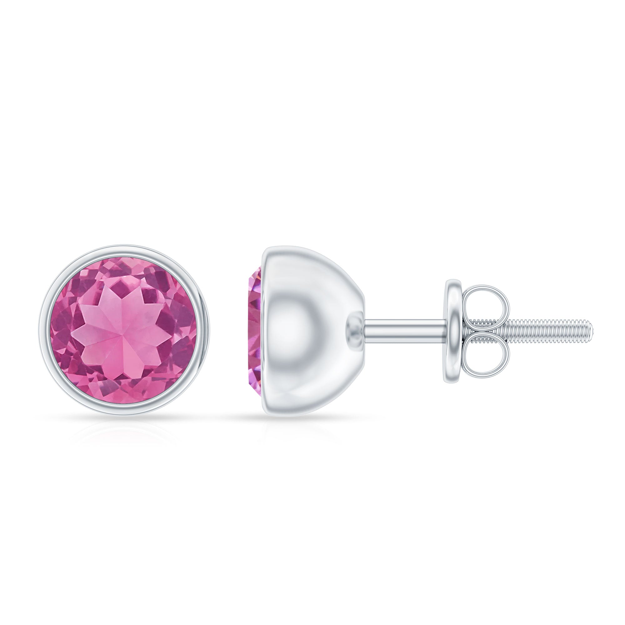 1.5 CT Round Pink Tourmaline Solitaire Stud Earrings in Bezel Setting