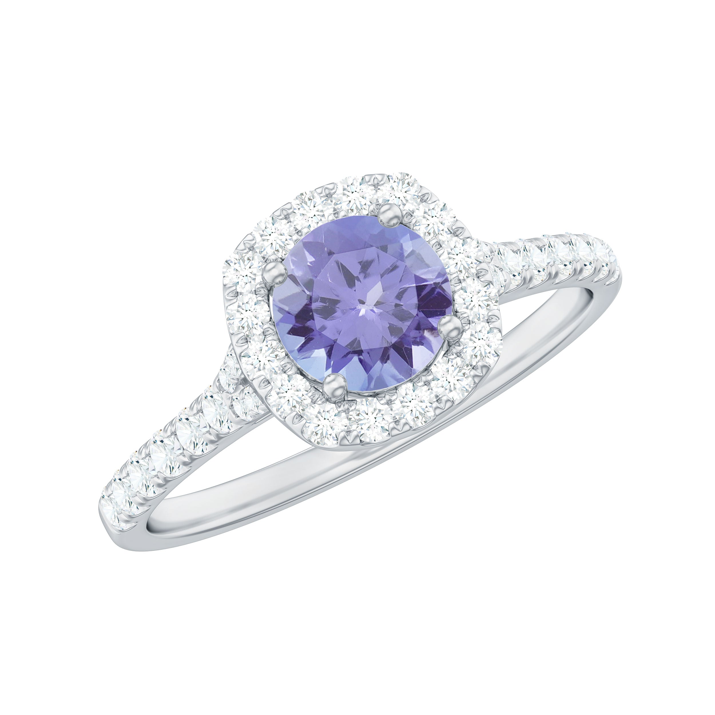1.5 CT Round Shape Tanzanite and Diamond Floating Halo Designer Ring