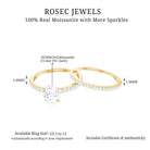 This Moissanite Wedding Ring Set is a stunning representation of love and commitment, crafted to dazzle in every moment. The engagement ring showcases a beautiful 5X7 MM oval moissanite, securely set in peg head setting with side stones. To complete the Oval Bridal Set, there is a matching half eternity band that features small moissanite stones lining the top for a subtle shine. When worn together, these rings create a gorgeous, harmonious look that exudes elegance and romance. Each moissanite in the Solitaire Wedding Set boasts D color and VS1 clarity, ensuring the stones are bright, clear, and full of brilliance. Every gemstone is certified and meticulously inspected for quality, so you can trust that your ring set will endure for years to come. This design beautifully combines comfort and style, making the Engagement Ring and Wedding Band Set perfect for everyday wear while still looking fabulous for special events. With its contemporary sparkle, this set will always remind her of the promises you cherish.