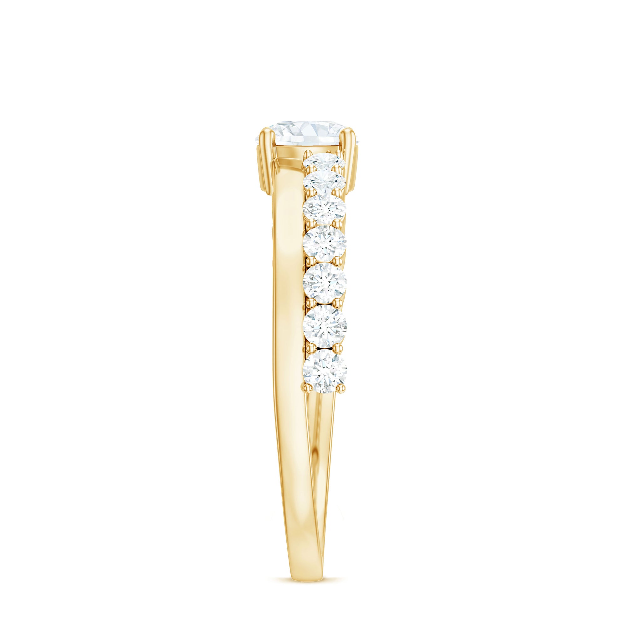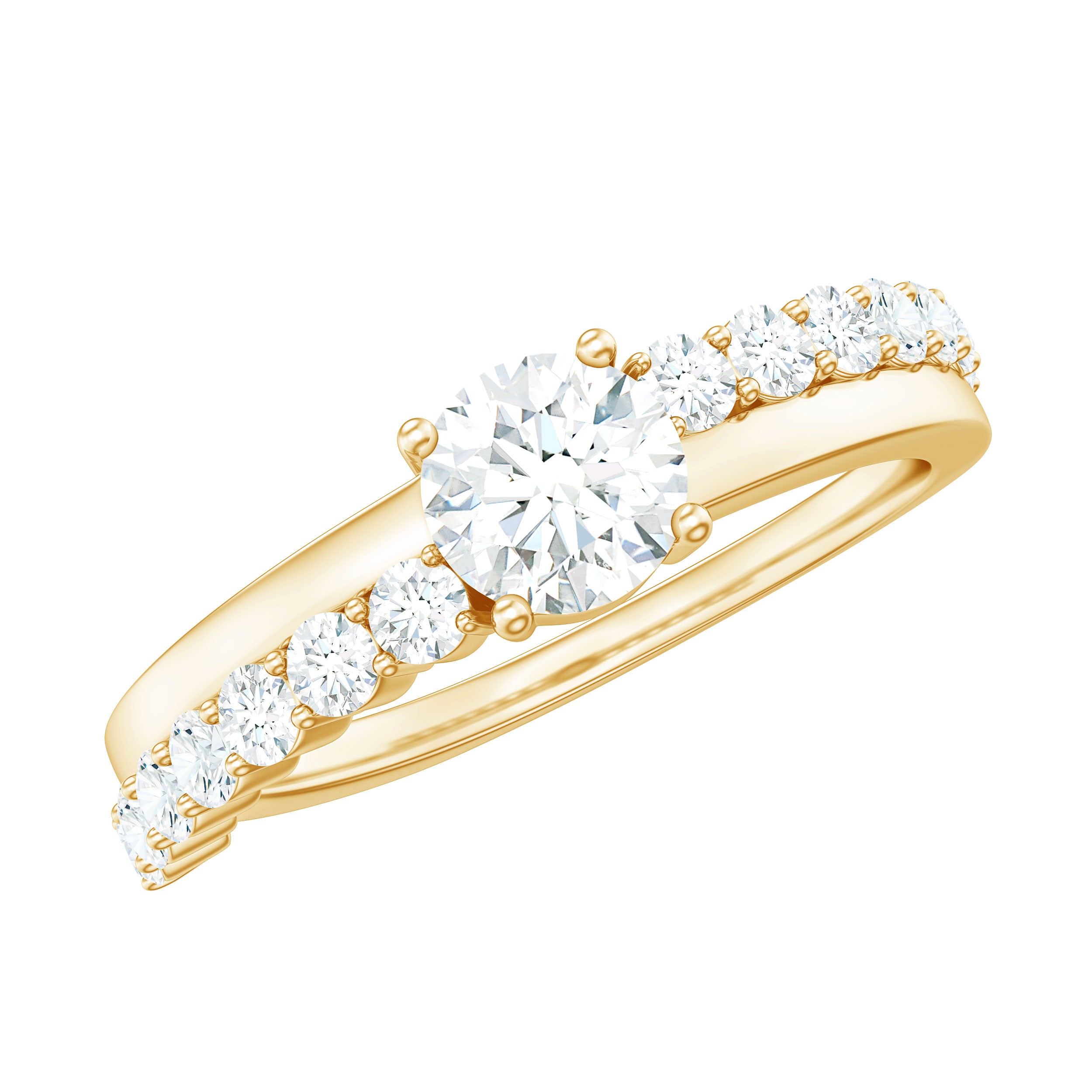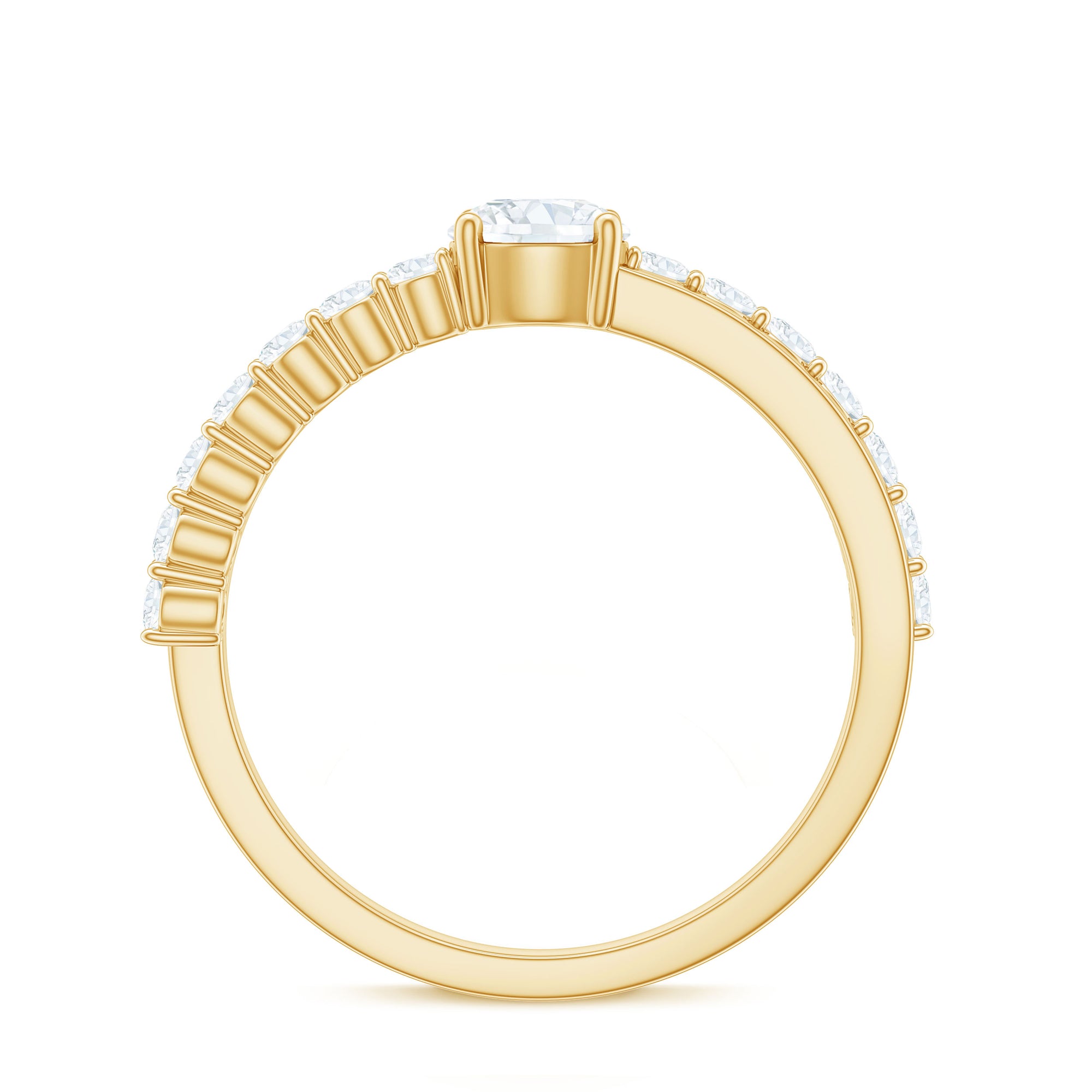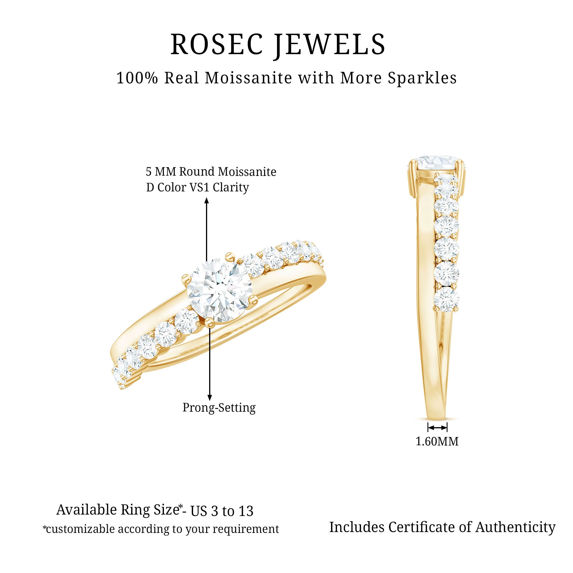 Our Moissanite Engagement Ring brings together bold style and deep meaning in one beautifully crafted piece. At its center is a 5 MM round moissanite, held securely in prong setting, allowing it to catch the light from every angle. What sets this Promise Engagement Ring apart is its wide, asymmetrical band. One half is covered in round cut moissanite stones, while the other half remains smooth and polished, offering a beautiful balance between shine and simplicity. The ring’s structure is both modern and timeless, making it a great choice for anyone who loves timeless beauty with a touch of elegance. Whether it is given as a promise ring, a pre-engagement ring, or simply to mark a meaningful moment, this piece speaks with quiet confidence. Comfortable for daily wear and easy to pair with other jewelry, it is as practical as it is beautiful. The Round Moissanite Ring arrives in a stylish presentation box, ready to be gifted or kept as a personal reminder of your love story. Thoughtfully designed and full of character, this Round Engagement Ring is a piece of your journey.