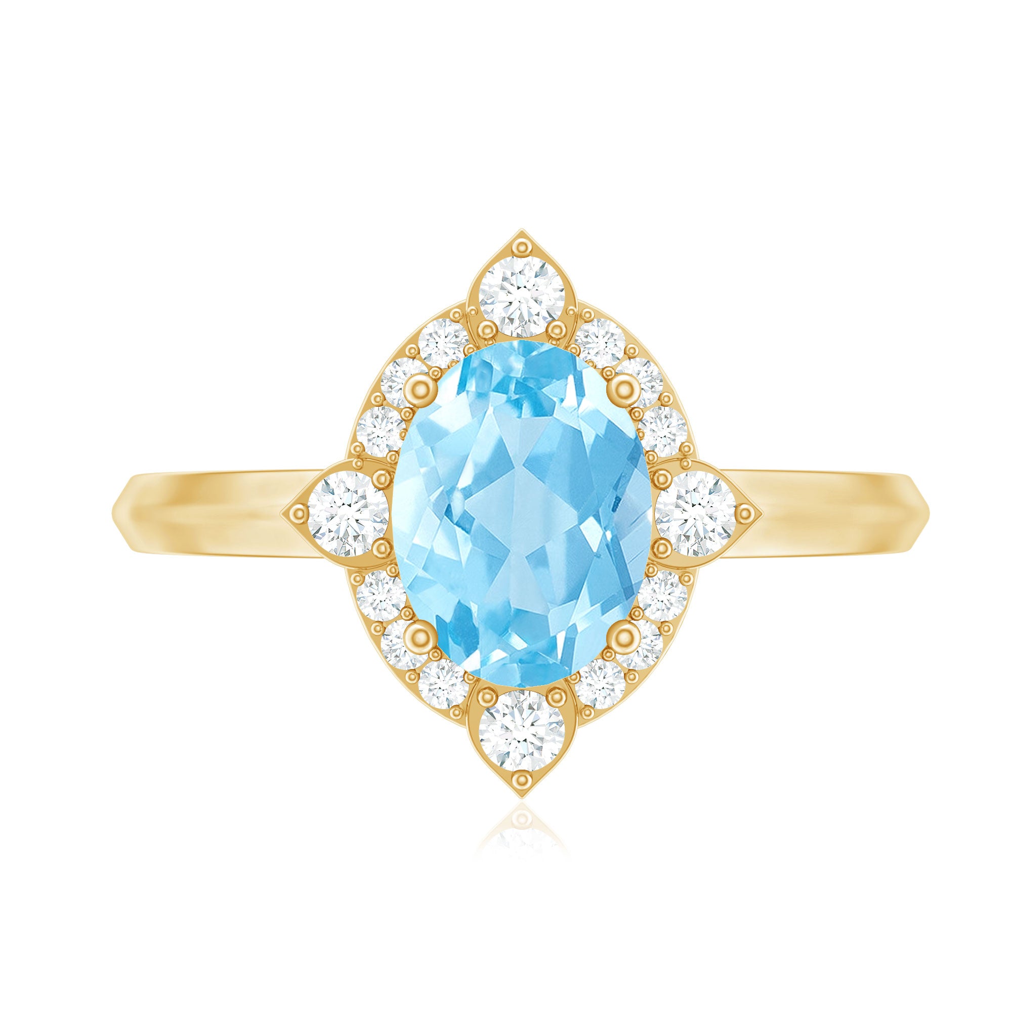 Profess your love with this Art Deco Engagement Ring is adorned with Oval Shape Aquamarine set as a solitaire in a prong setting with Round Shape Diamond Accent. This Gold Art Deco Ring is mounted in Solid Gold.
