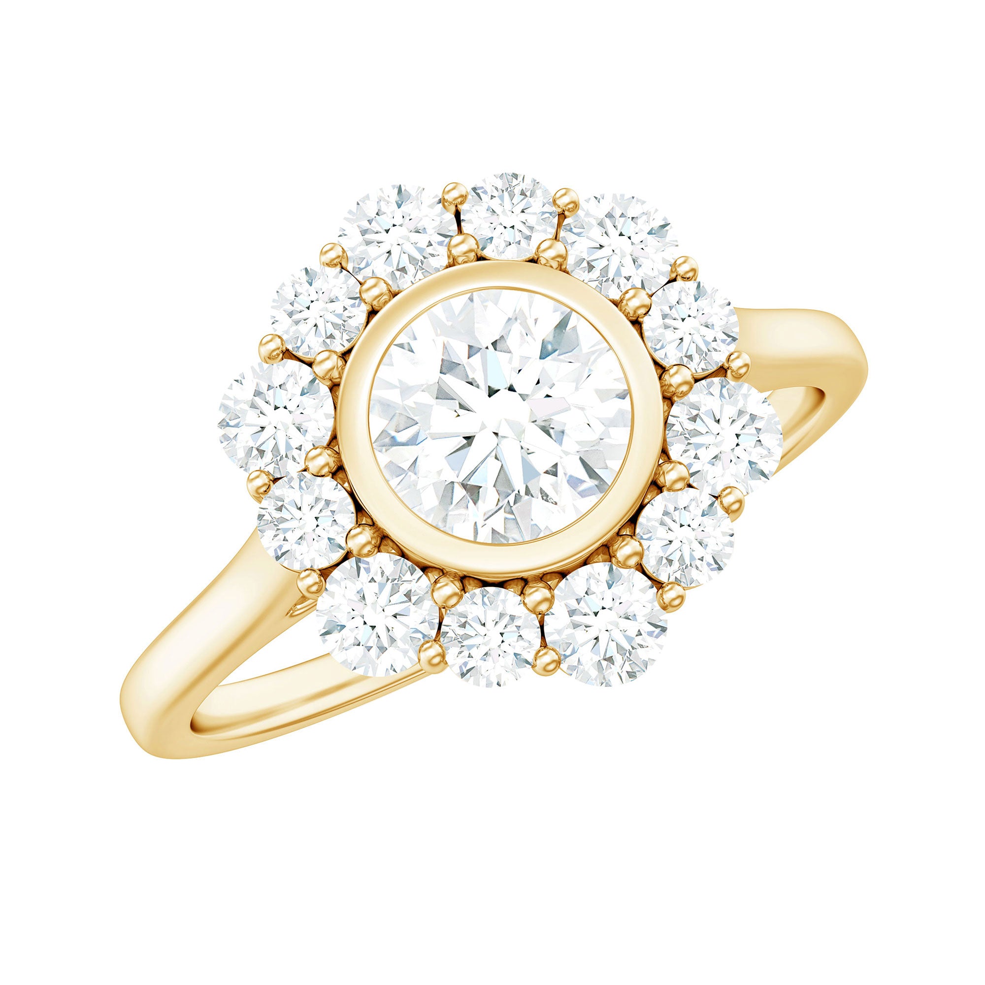 1.50 CT Bezel Set Zircon Statement Halo Engagement Ring