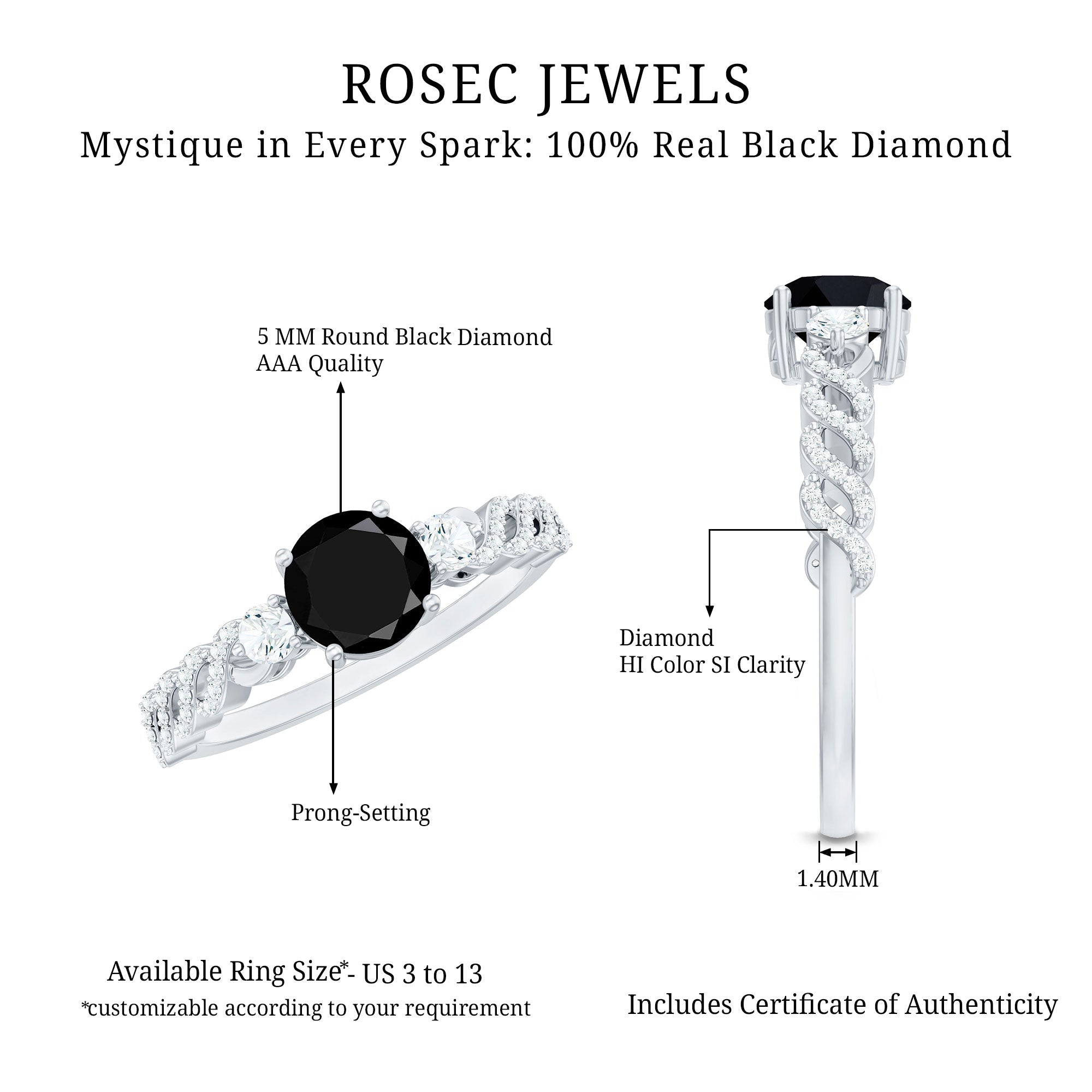 1.50 CT Black Diamond Solitaire Designer Ring with Diamond