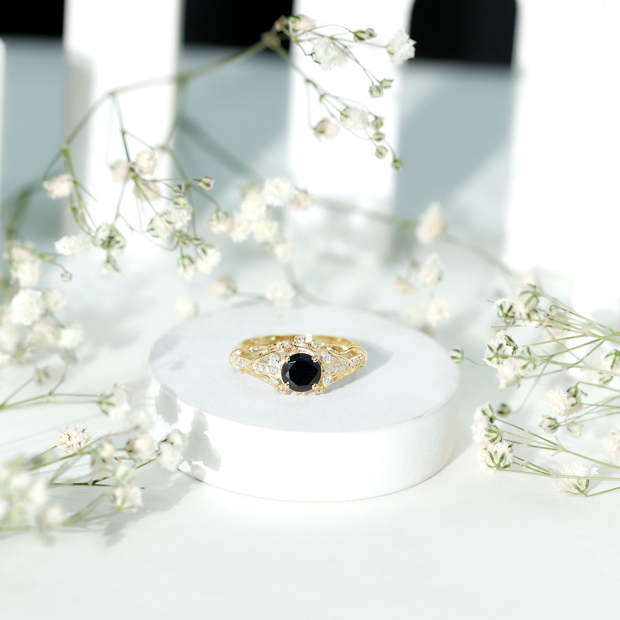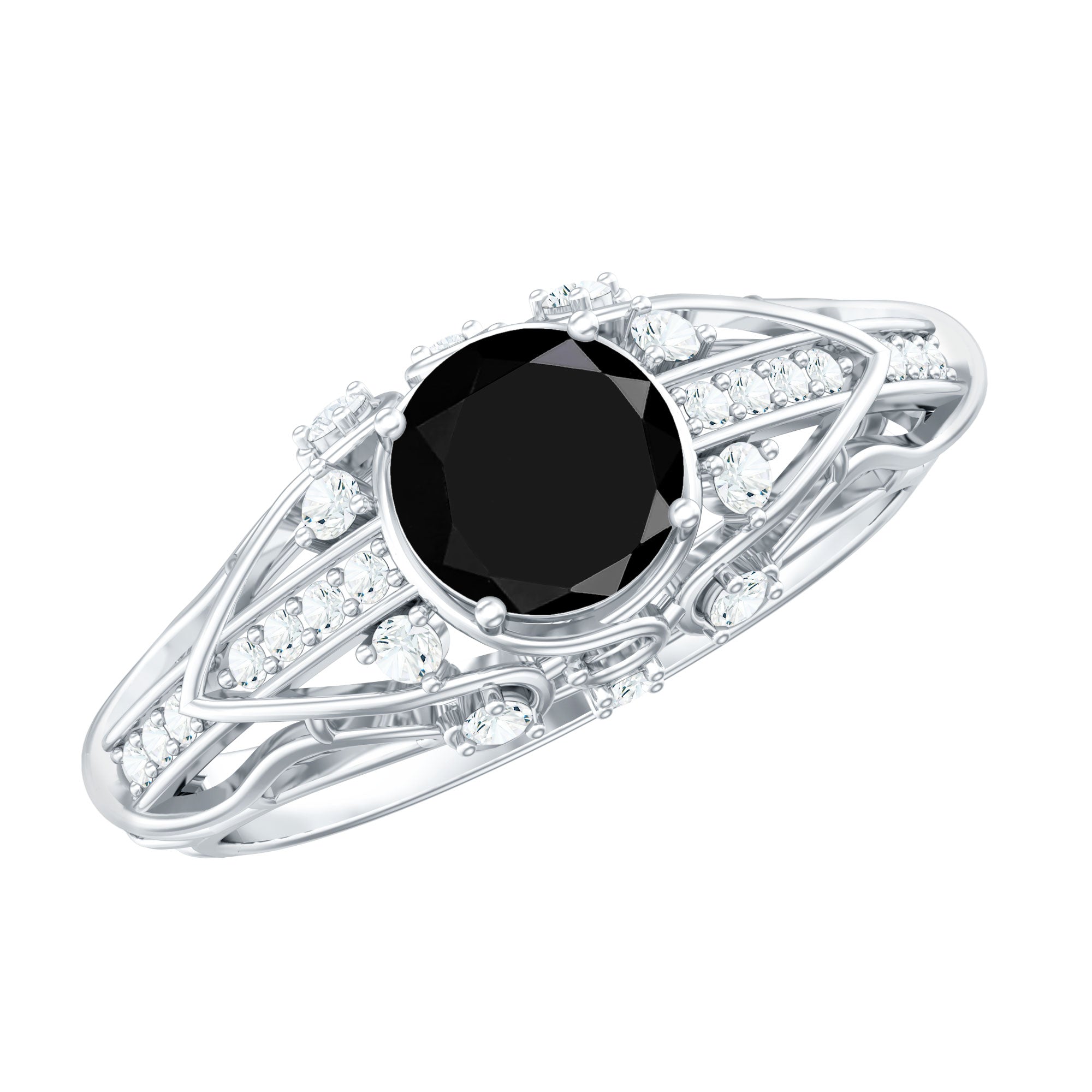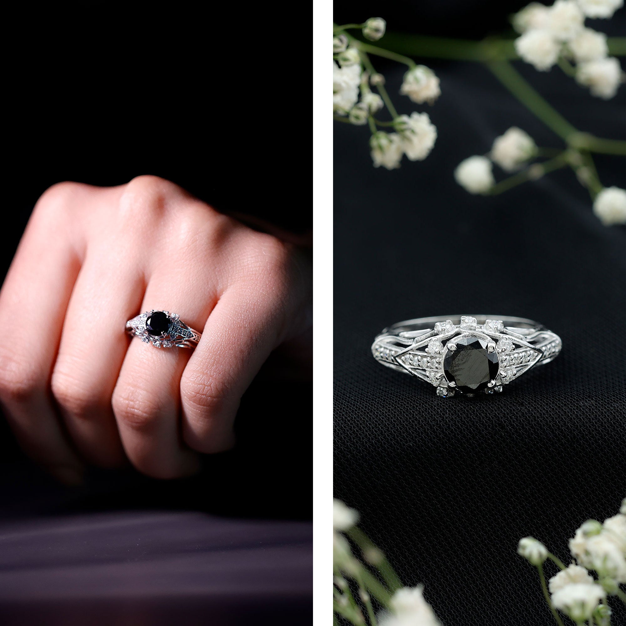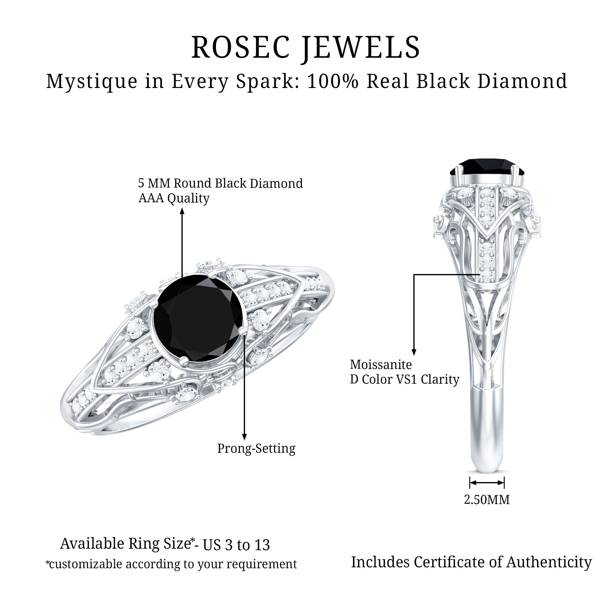 1.50 CT Black Diamond Solitaire Vintage Inspired Ring with Moissanite