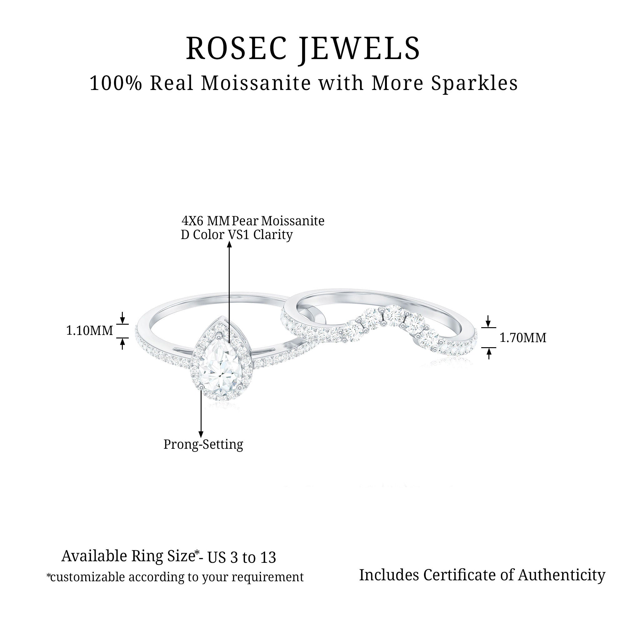 1.50 CT Certified Moissanite Designer Teardrop Ring Set