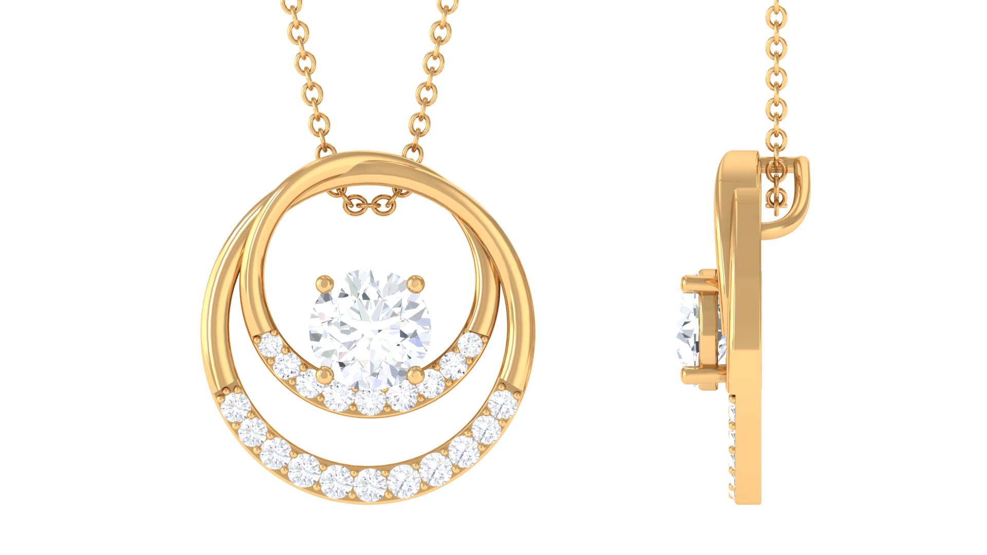 This stunning Open Pendant Necklace features Round Shape Moissanite in Prong Setting and is a perfect addition to any jewelry collection. The brilliance and sparkle of the moissanite stone are sure to catch the eye of anyone who sees it. The perfect gift for someone special or as a treat for yourself, this pendant is a must-have for anyone who loves elegant and modern jewelry.