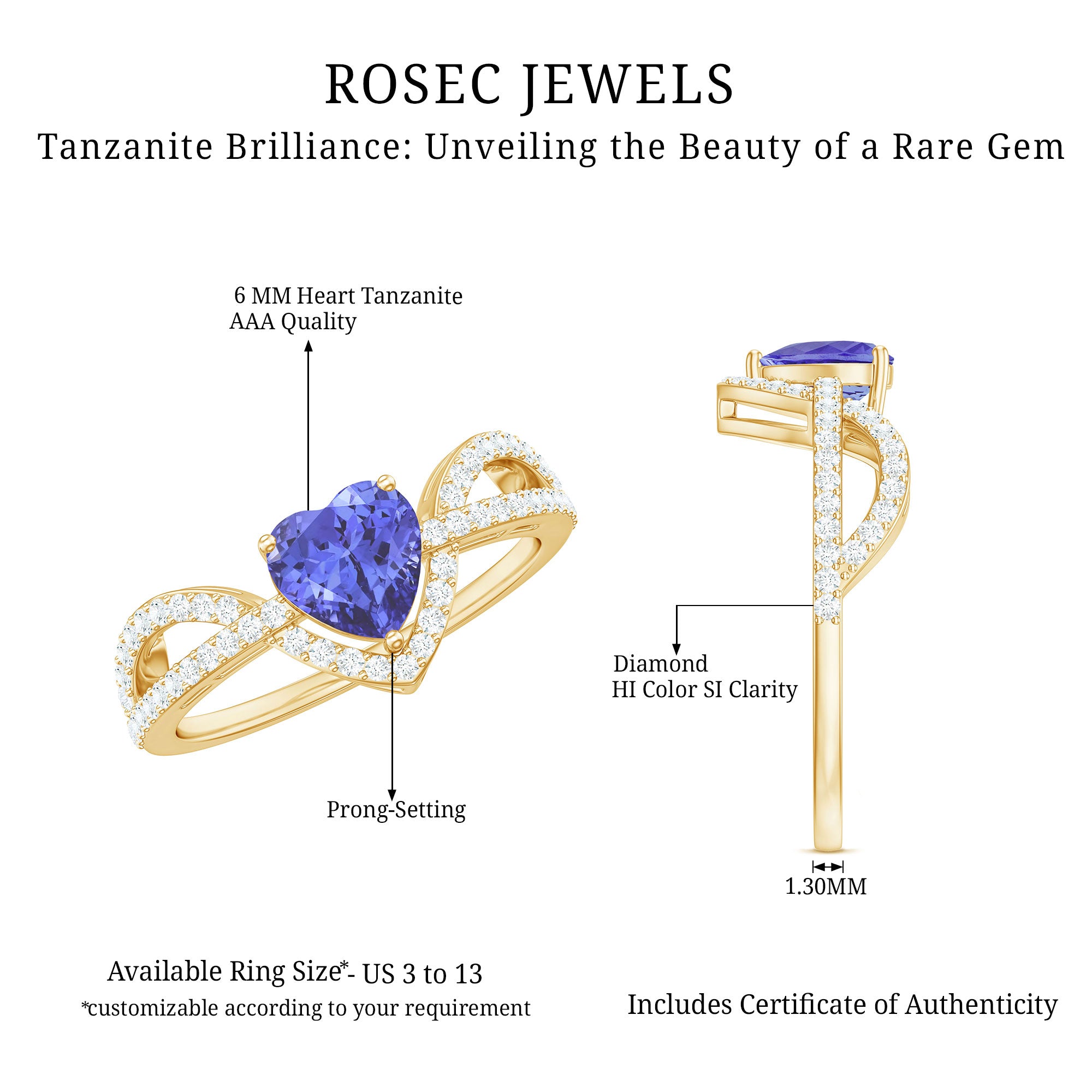 1.50 CT Designer Heart Solitaire Tanzanite and Diamond Ring
