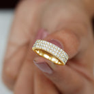 Celebrate your love story with this timeless and elegant Diamond Wedding Band that would serve to be a perfect as your commitment. Having a masterful blend of classic sophistication and contemporary design. This band features a stunning array of meticulously set Diamond that radiate brilliance and charm. Embrace the allure of enduring love with this band ring that embodies elegance and sophistication. The Diamond Wide Wedding Band Ring is more than just a symbol of commitment and is a testament to a lifetime of cherished moments. This 3 Row Diamond Eternity Ring enhancing the sparkle from every angle makes it a perfect for wedding band, anniversary ring, or a statement piece.