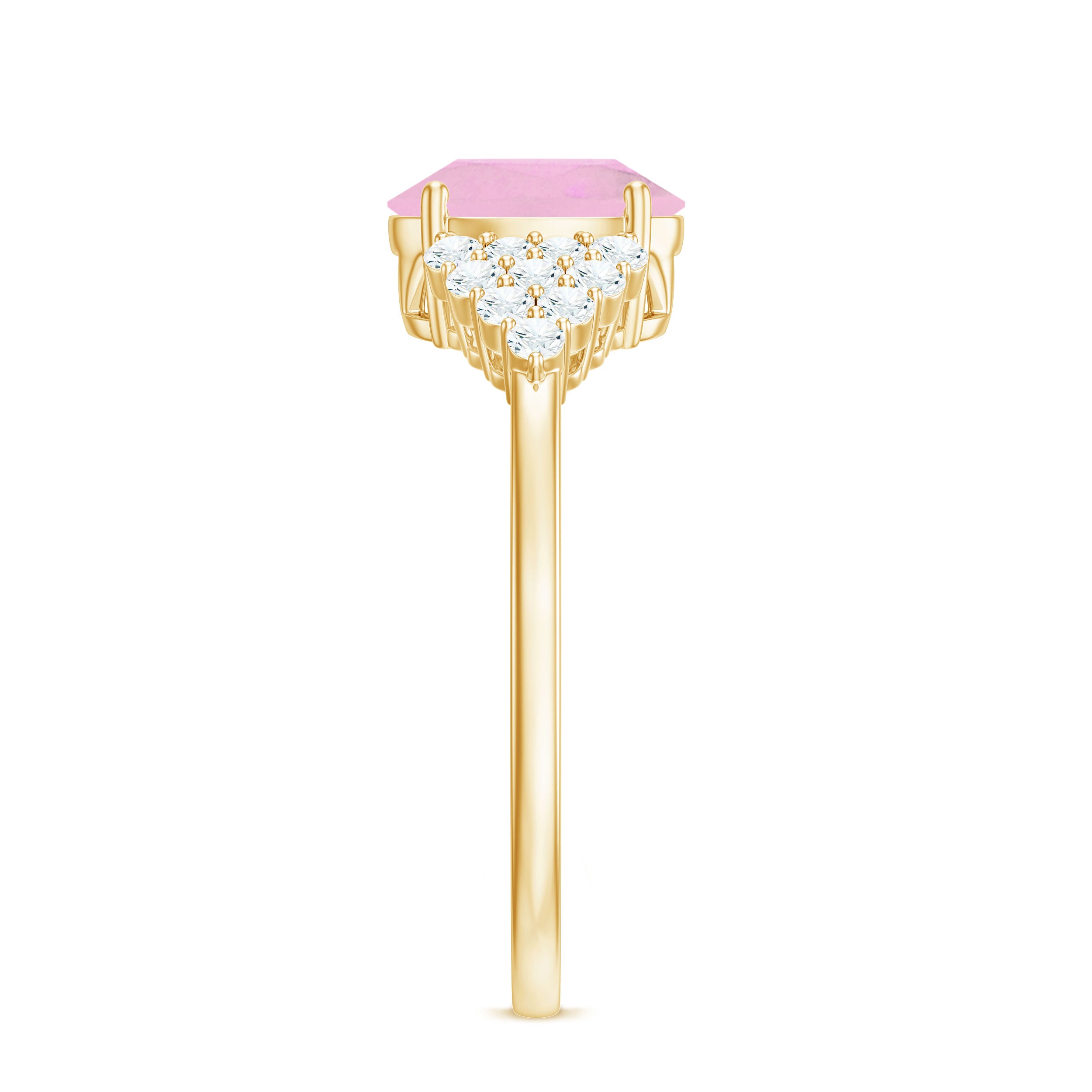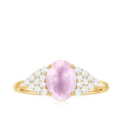 Elevate your look by wearing this elegant Solitaire Ring embellished with Oval Cut Rose Quartz in Prong Setting with Diamond Accent. This Rose Quartz Solitaire Ring is crafted with Gold for a luxurious look. This Rose Quartz Ring will bring intense shine and allure to your look.