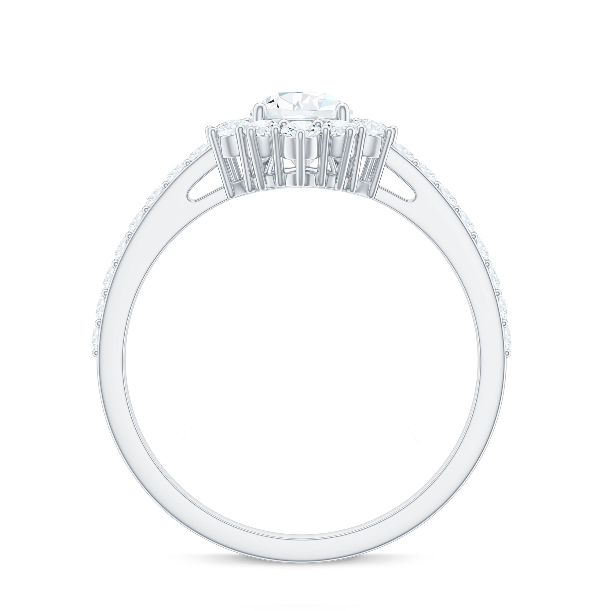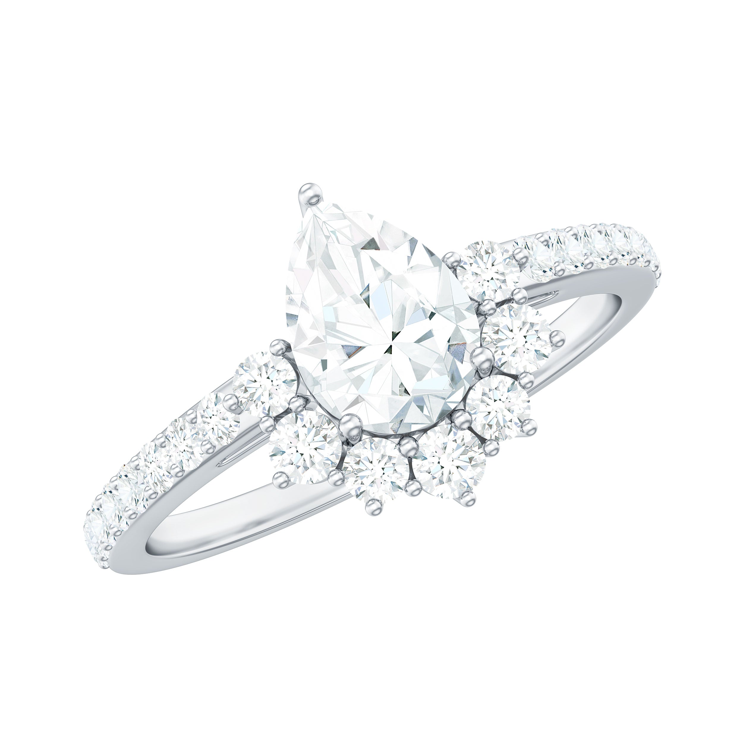 Moissanite Teardrop Engagement Ring with Half Halo