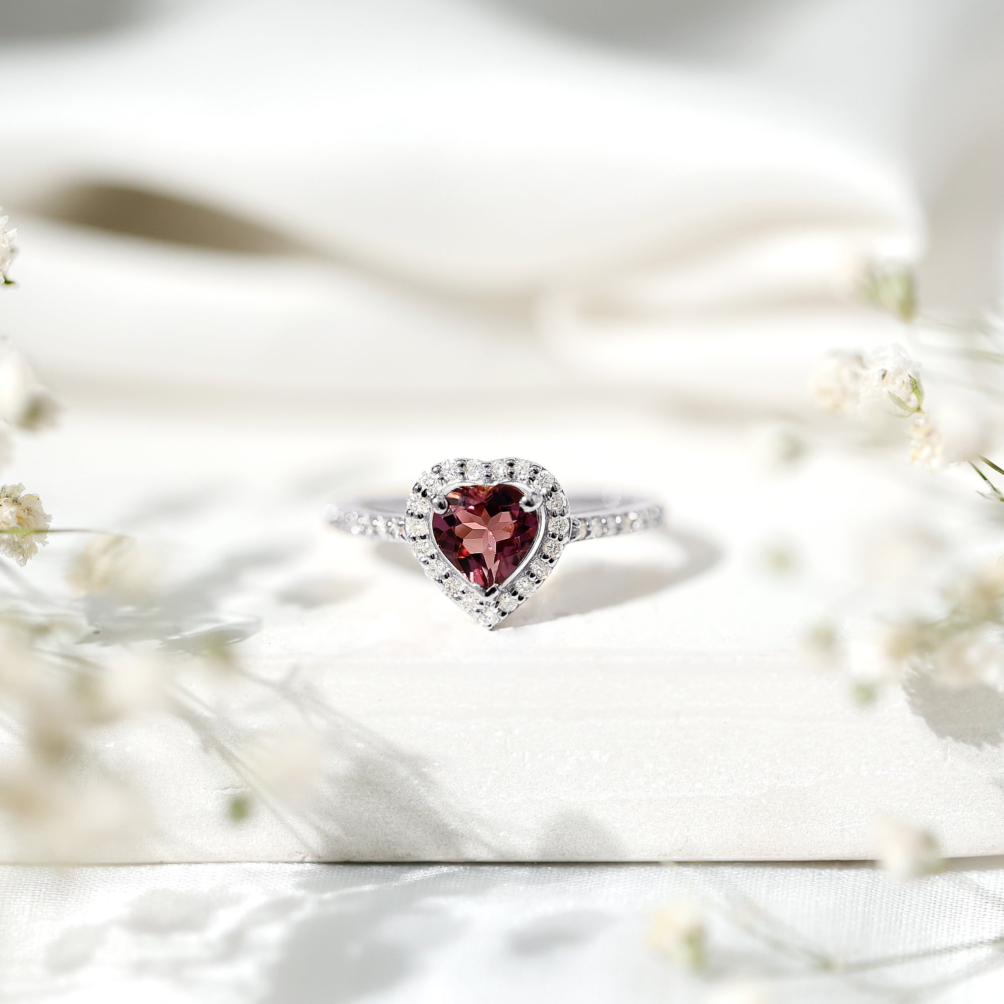1.50 CT Heart Shape Pink Tourmaline Engagement Ring with Diamond Accent