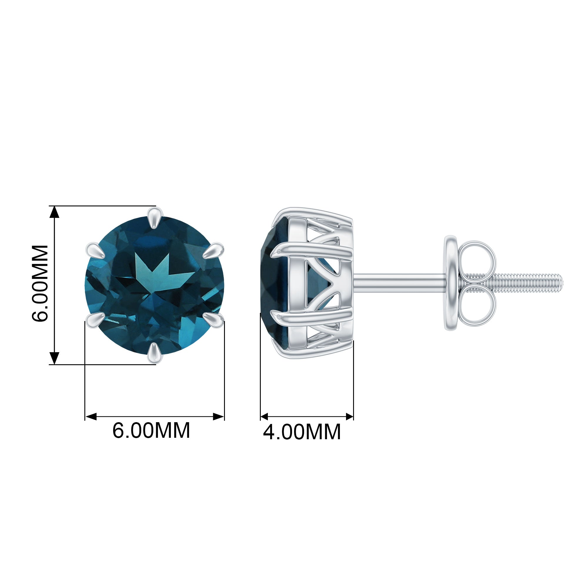 1.50 CT London Blue Topaz Solitaire Stud Earrings