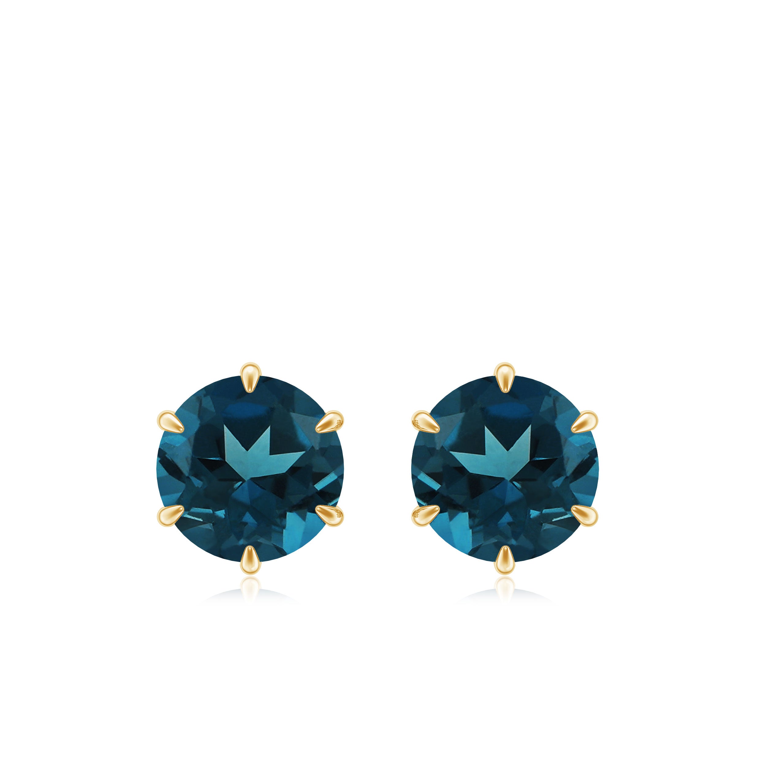 These elegant Solitaire Stud Earrings are adorned with Round Cut London Blue Topaz over 14K Gold to make for a lovely gift for your partner.