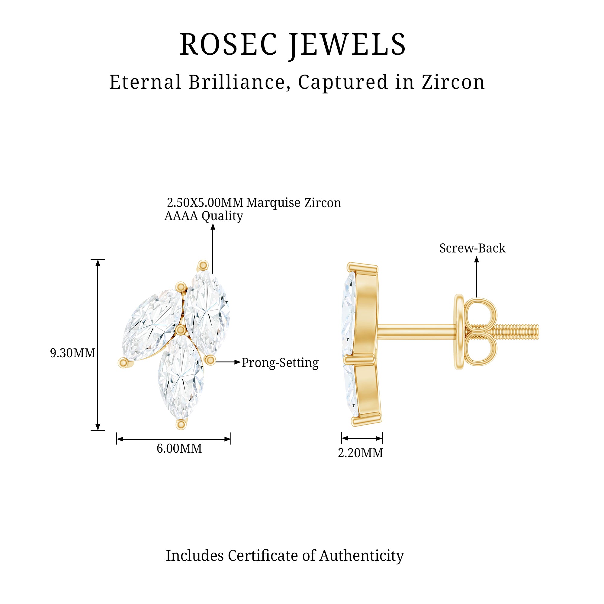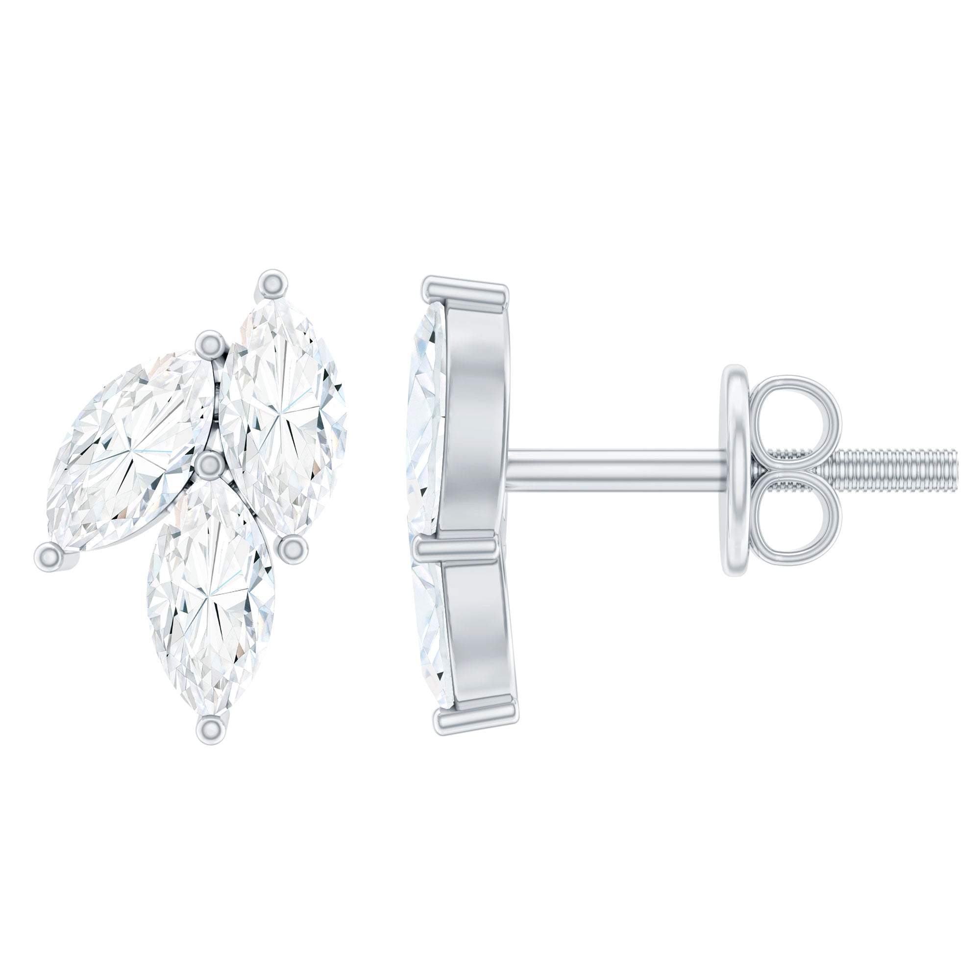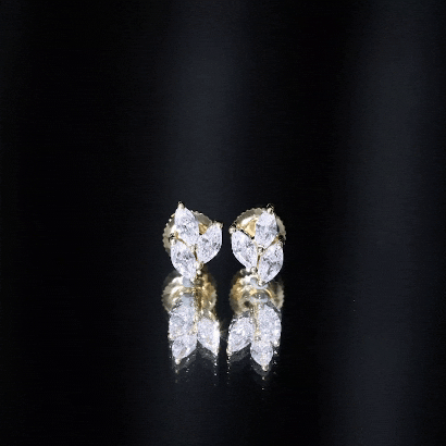 1.50 CT Marquise Cut Zircon Leaf Cluster Gold Stud Earrings