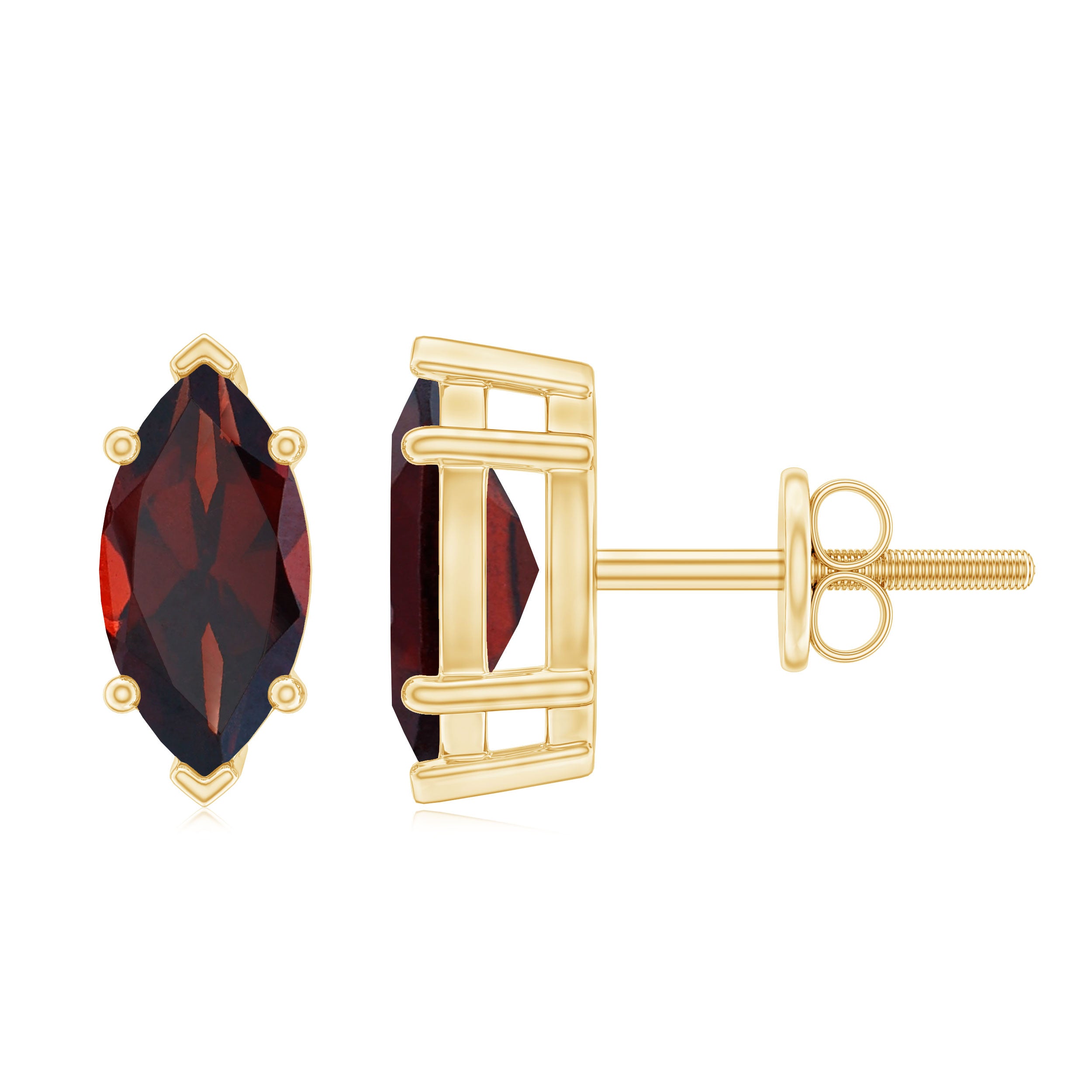 These Solitaire Stud Earrings featuring with Solitaire Marquise Cut Garnet in prong setting, crafted in Solid Gold.