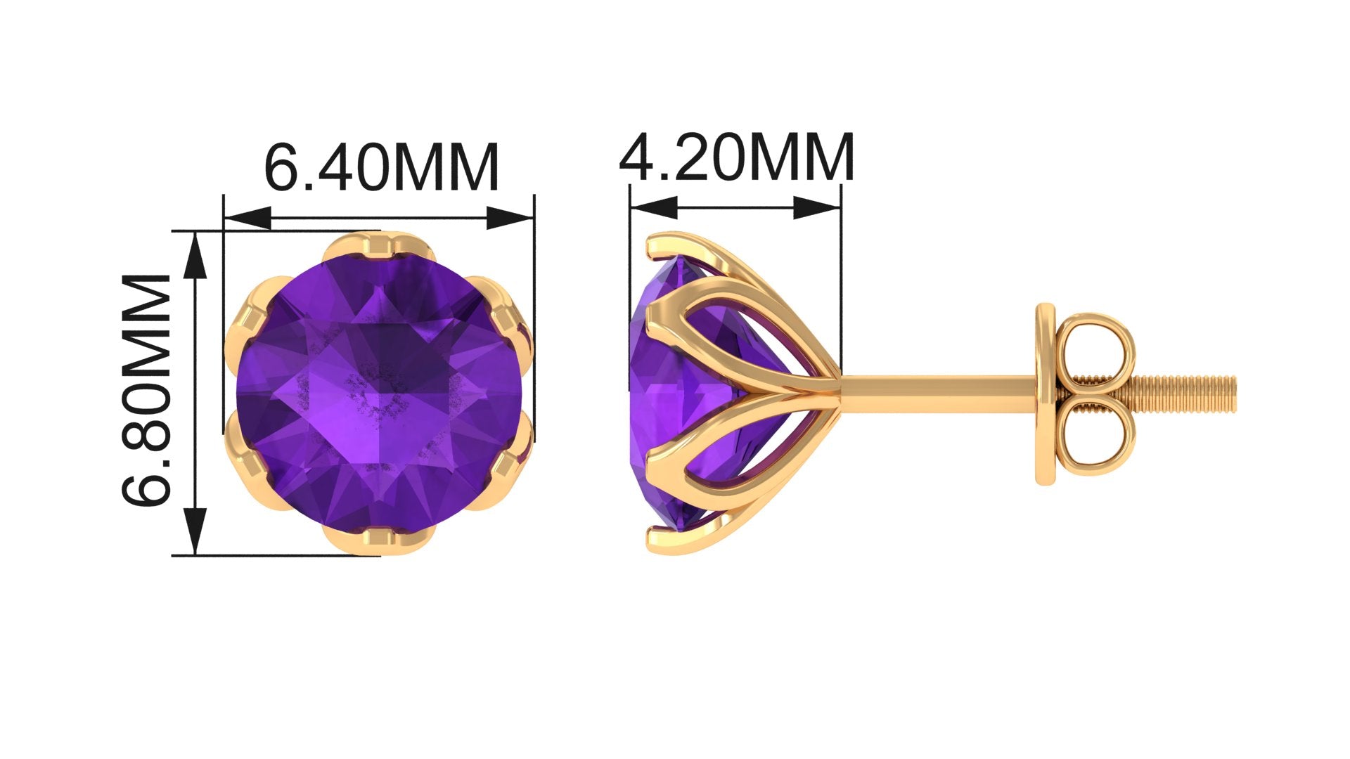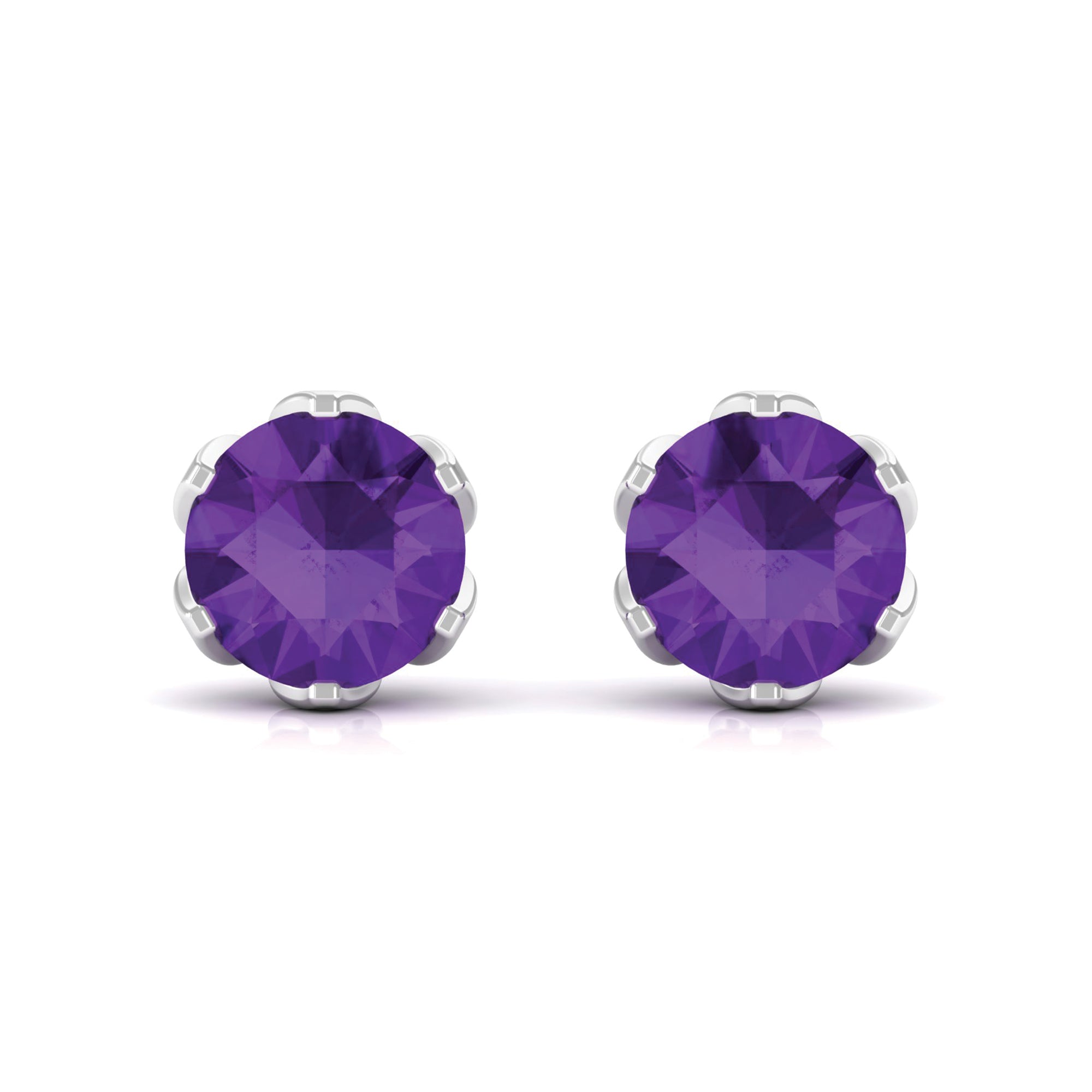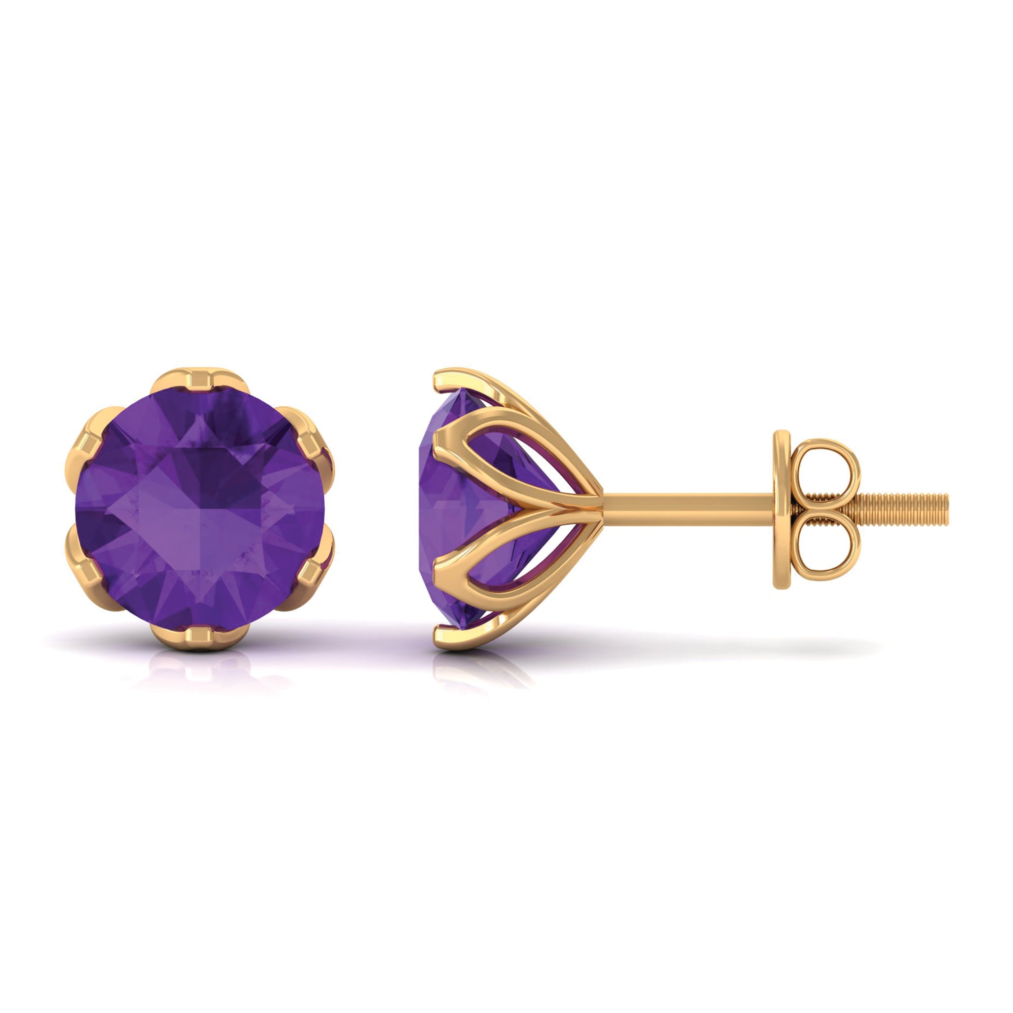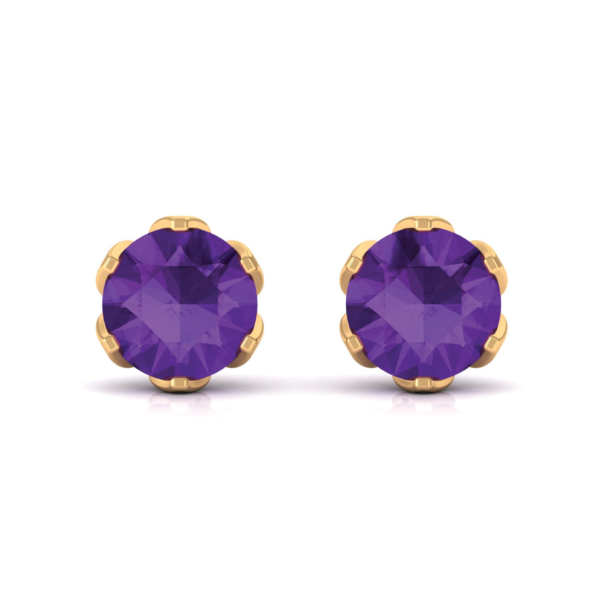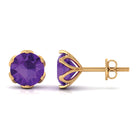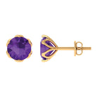 Treat yourself with these Gorgeous Stud Earrings is embellished with Round Shape Amethyst set in a Martini Setting. These Solitaire Stud Earrings are crafted in Solid Gold.